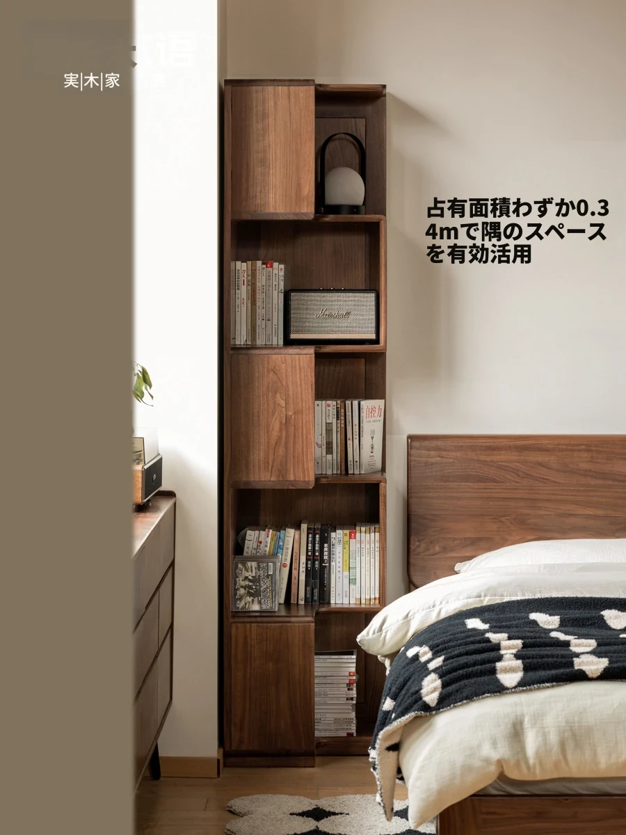 源氏木語 全実木製 書棚 リビングコーナー収納キャビネット ブラックウォールナット色 おしゃれなコーナーキャビネット 書斎用 フロア収納ラック - スタイリッシュで機能的なデザインで、あなたの空間を美しく演出します!