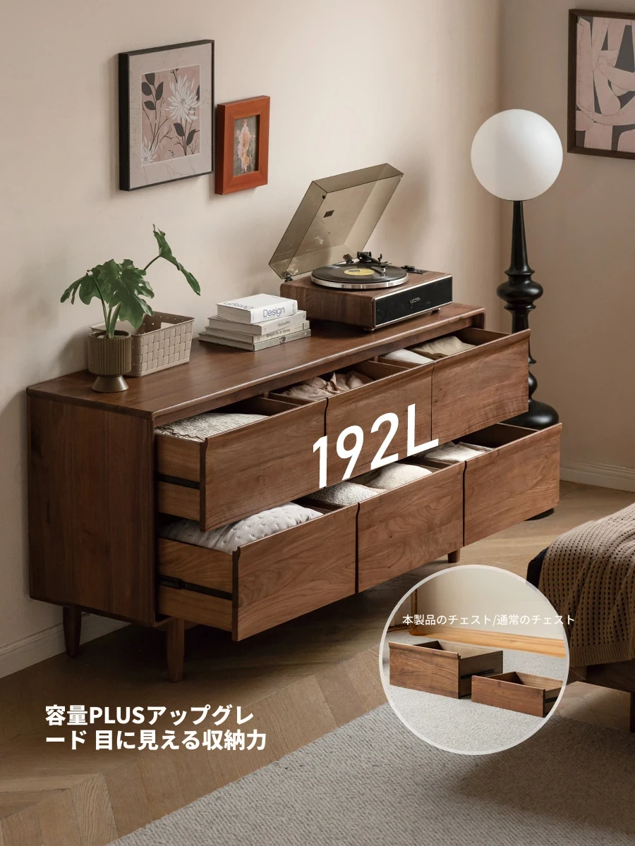 源氏木语の無垢材テレビキャビネット - モダンでシンプルなデザイン、収納力抜群のブラックウォールナット製リビングルーム用テレビボード!おしゃれで機能的なインテリアを演出します。