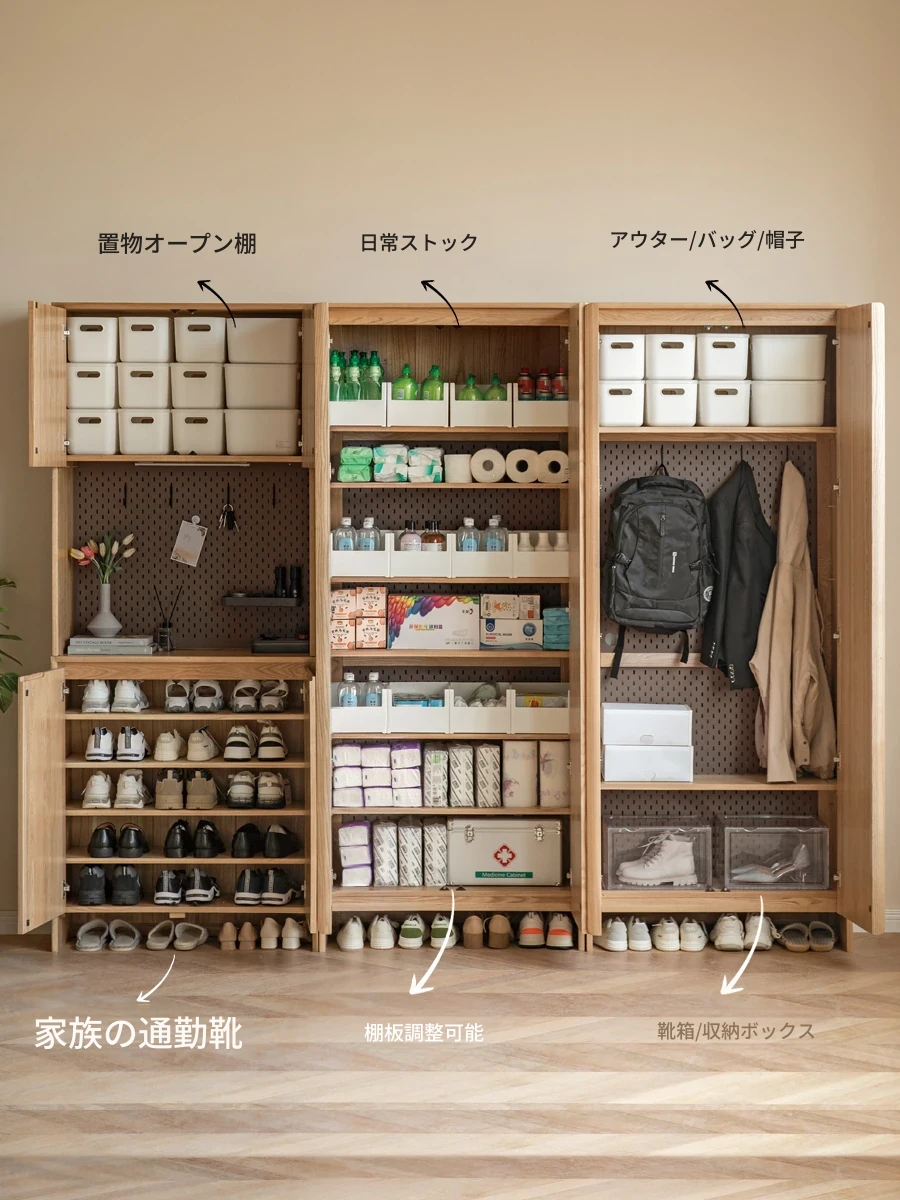 源氏木语モダンデザインの実木シューズキャビネット - リビングや玄関に最適な収納力抜群のコンビネーションキャビネット!シンプルでスタイリッシュ、家のインテリアにぴったり。