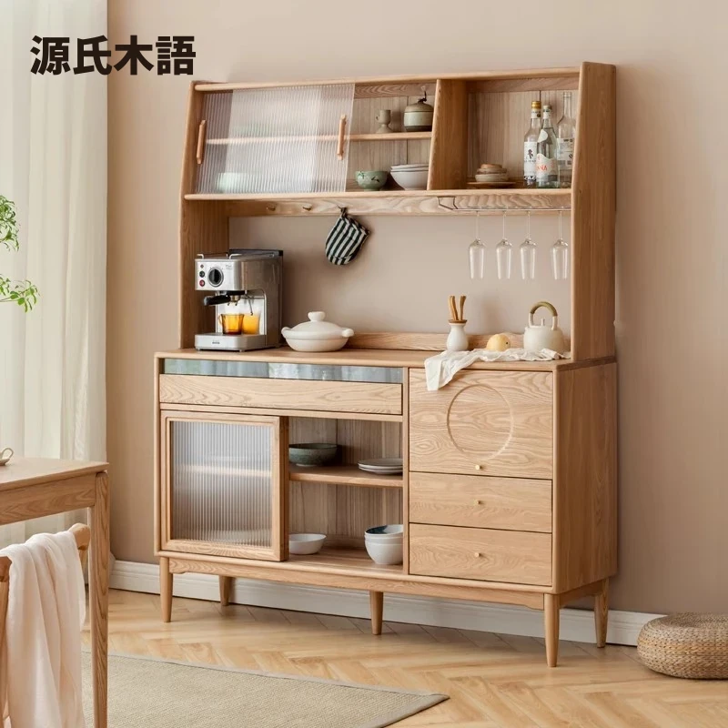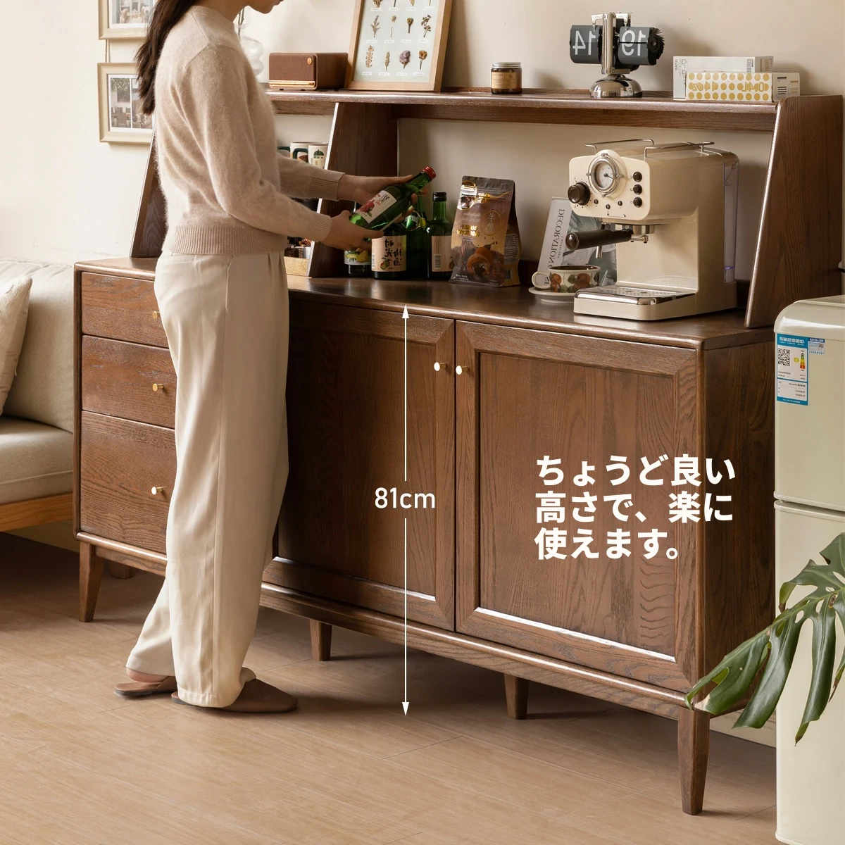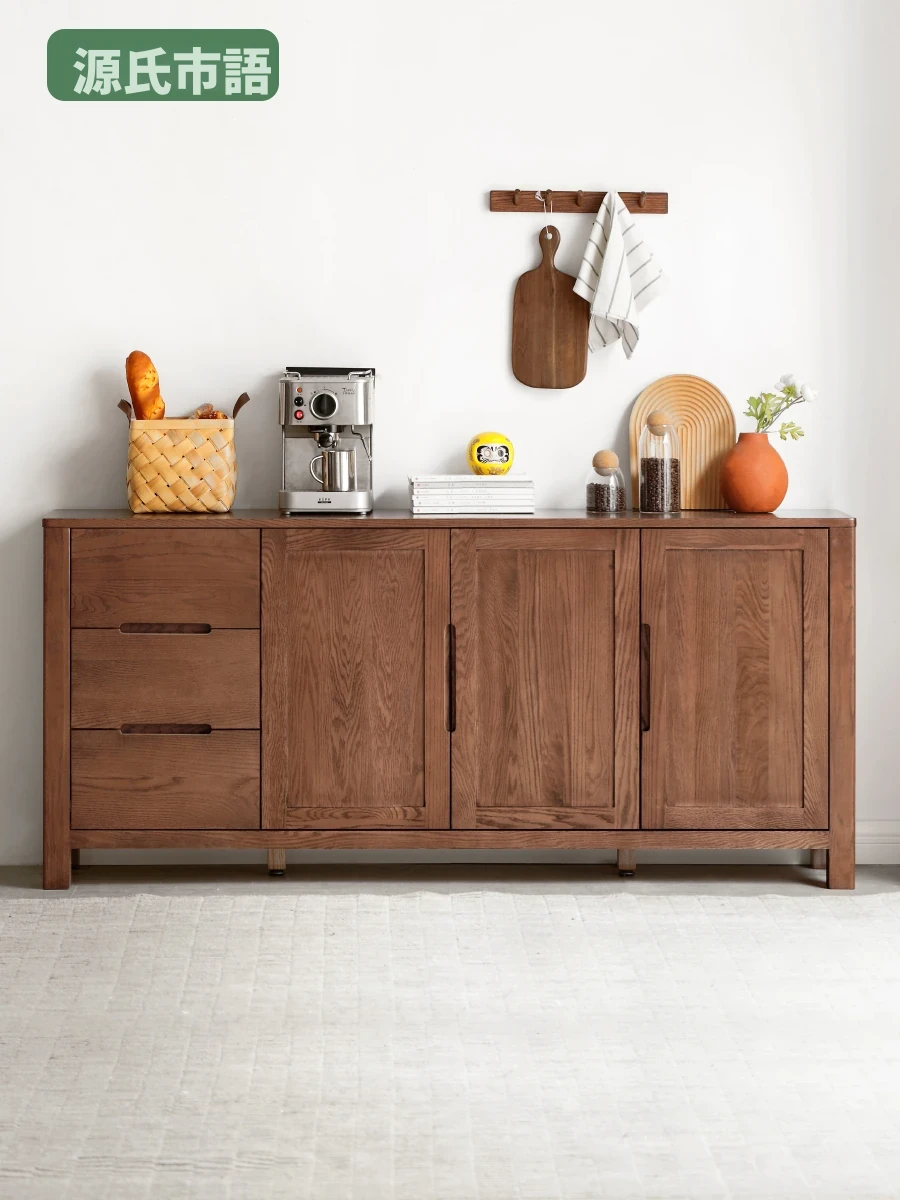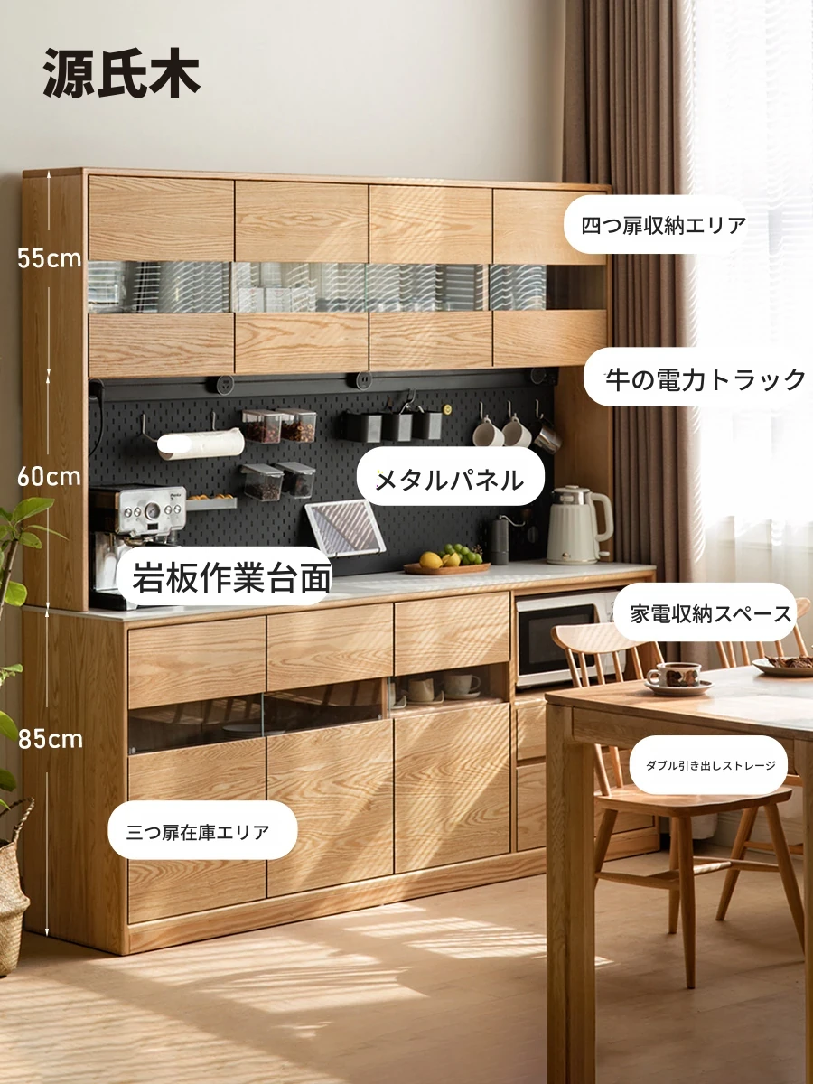 源氏木语の無垢材ダイニングサイドボード - モダンなオーク材の収納キャビネット、シンプルでスタイlishな家庭用、棚付きの収納力抜群の一品!
