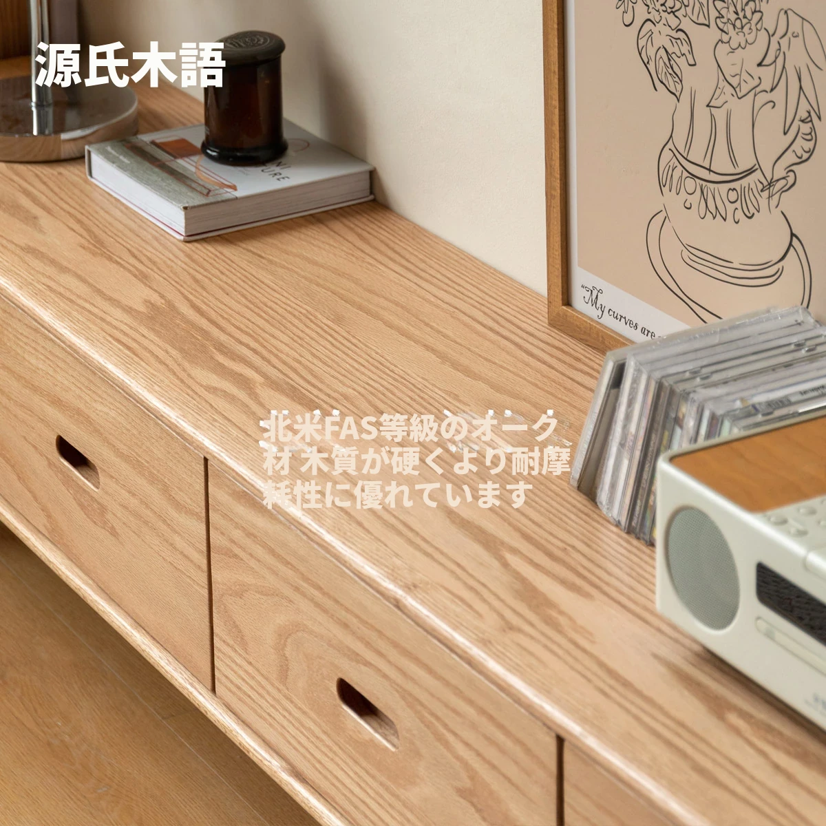 源氏木語 シンプルモダンな無垢材テレビボード - 日本産オーク材のリビング収納キャビネット、小型住宅に最適!多機能デザインでお部屋をスタイリッシュに演出。
