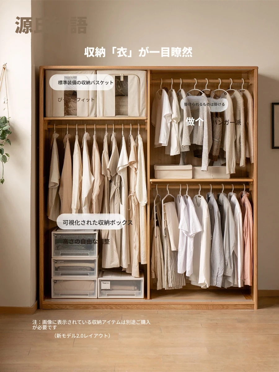 源氏木语 全実木クローゼット 自然な木の質感 家庭用 小型収納に最適 二枚扉・三枚扉・四枚扉の選べるタイプ スタイリッシュで機能的な収納ソリューション!