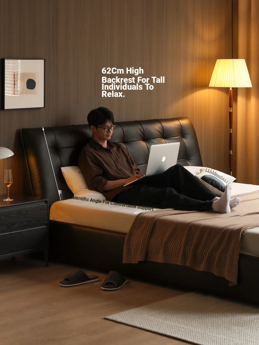 Genji Mu Yu Premium Genuine Leather Bed - Modern Minimalist Floor Bed for Master Bedroom, Upholstered with Top-Grade Cowhide, Perfect for Home Comfort and Elegant Style.