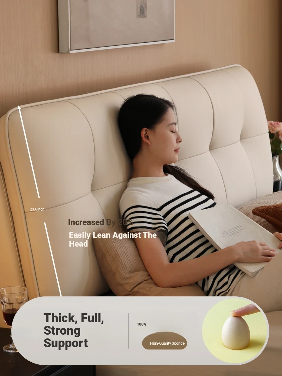 Genji Mu Yu Cream Fabric Bed - Modern Soft Back Bed for Minimalist Homes, Perfect for Master Bedrooms. Stylish and Comfortable Double Bed with Soft Support.