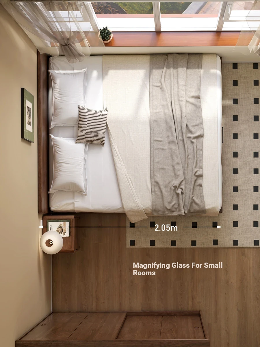 Genji Mu Yu Solid Wood Bed - Mid-Century Bauhaus Soft Bed for Bedroom Furniture, Retro Edge-Free Floating Design, Minimalist King Size Bed
