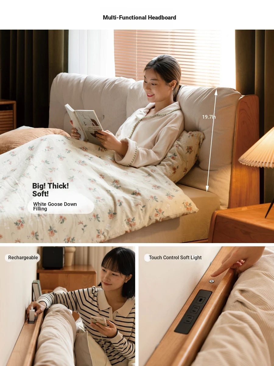 Genji Mu Yu Solid Wood Nordic Modern Minimalist Adjustable Bed with Storage - Double Size Soft Headboard & Box Spring - Bedroom Clearance Sale