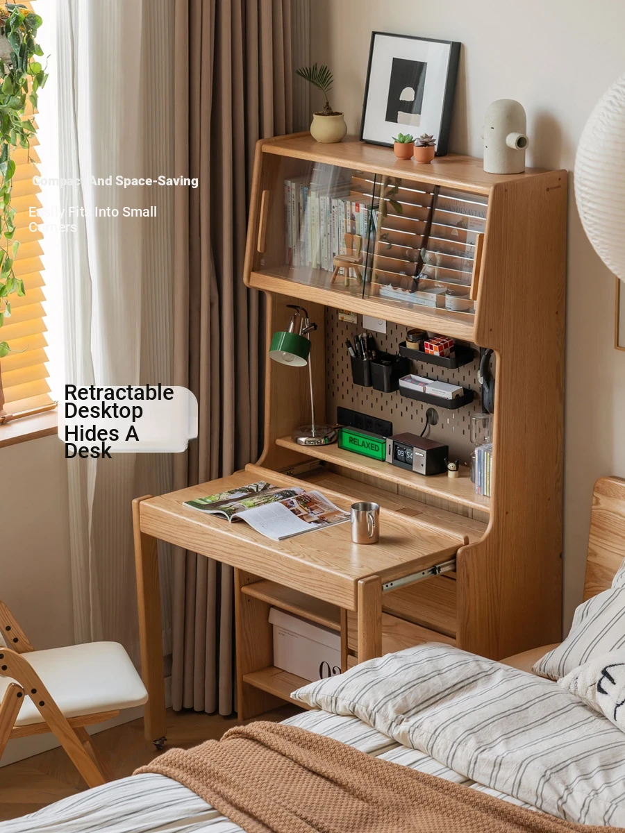 "Genji Wooden Bookshelf - Modern Minimalist Expandable Writing Desk & Storage Cabinet, Perfect for Home Offices, Made of Oak"
