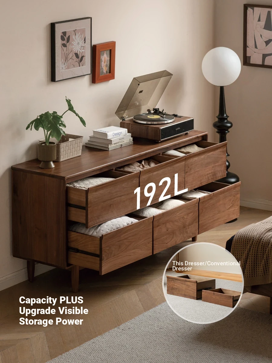 Genji Mu Yu Solid Wood Dresser - Elegant Walnut Free-standing Storage Cabinet for Bedroom - Versatile Bedside Unit & Stylish Floor Cabinet for Home Organization