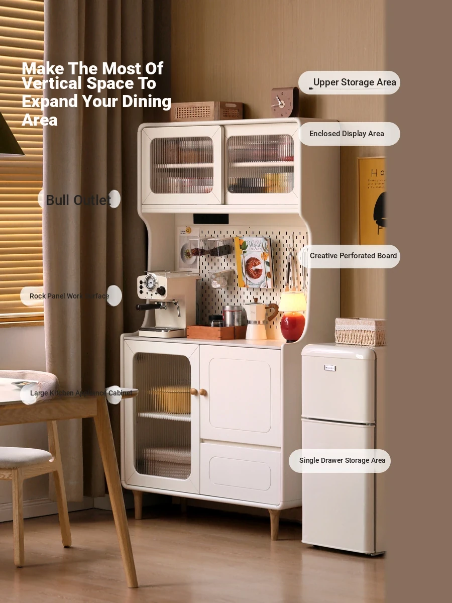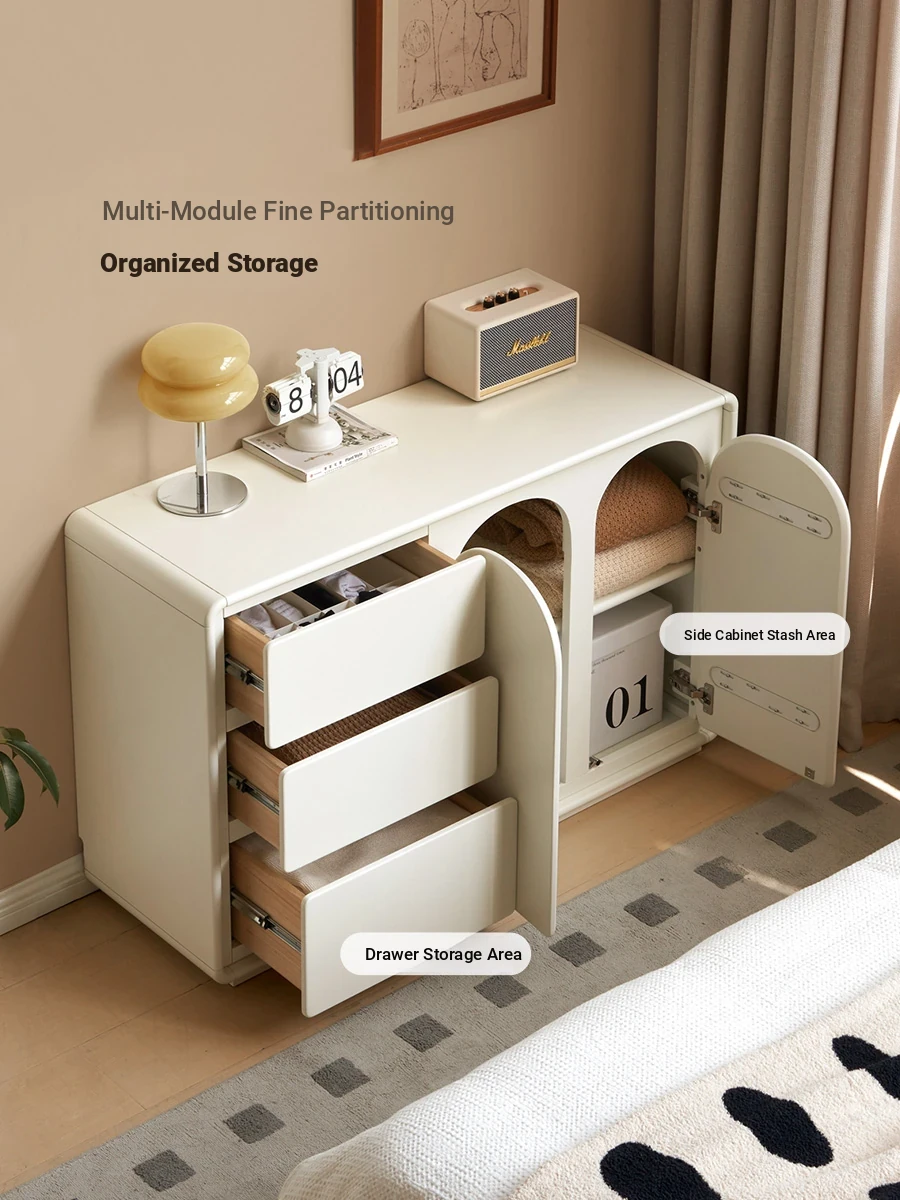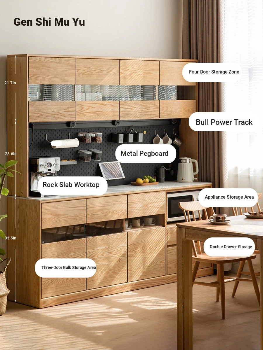Genji Solid Wood Rock Plate Sideboard - Creamy Elegance Storage Cabinet for Dining Room and Kitchen - Minimalist Design with Practical Shelves for Stylish Organizing