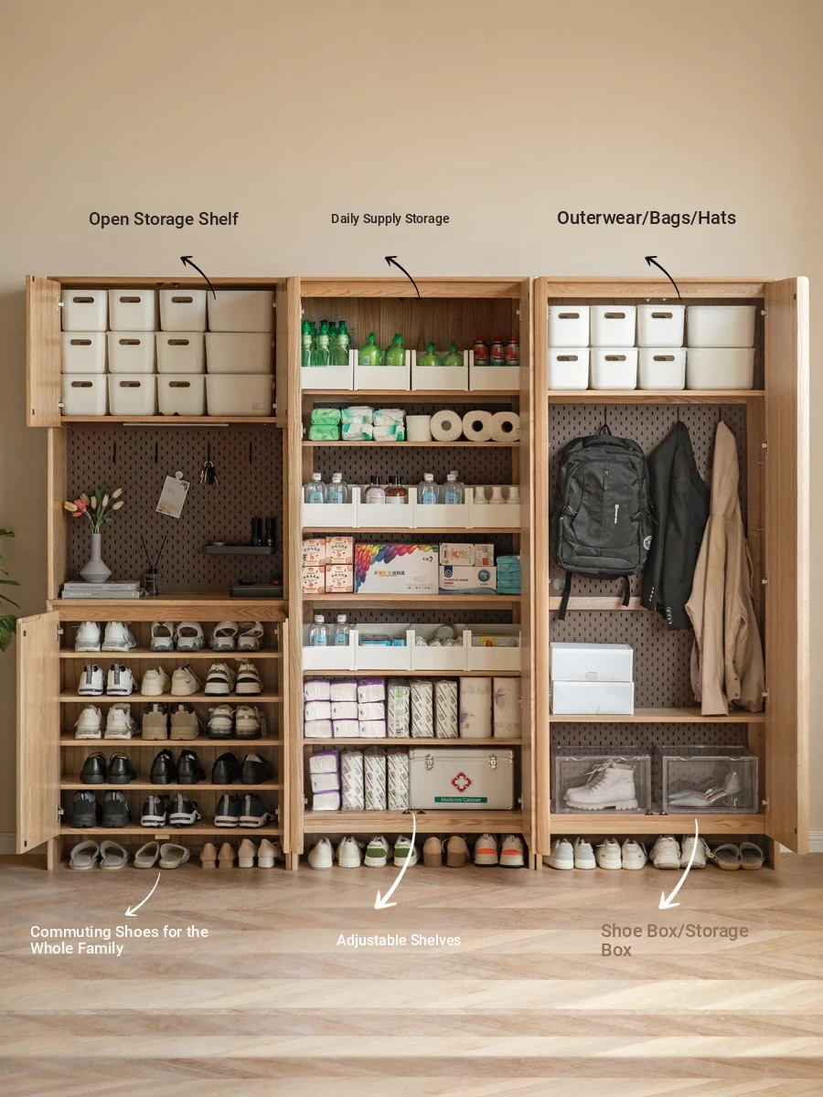 Genji Wood Solid Wood Shoe Cabinet - Modern Minimalist Entryway Storage Organizer for Living Room and Hallway - Versatile Home Combination Cabinet for Stylish Organization