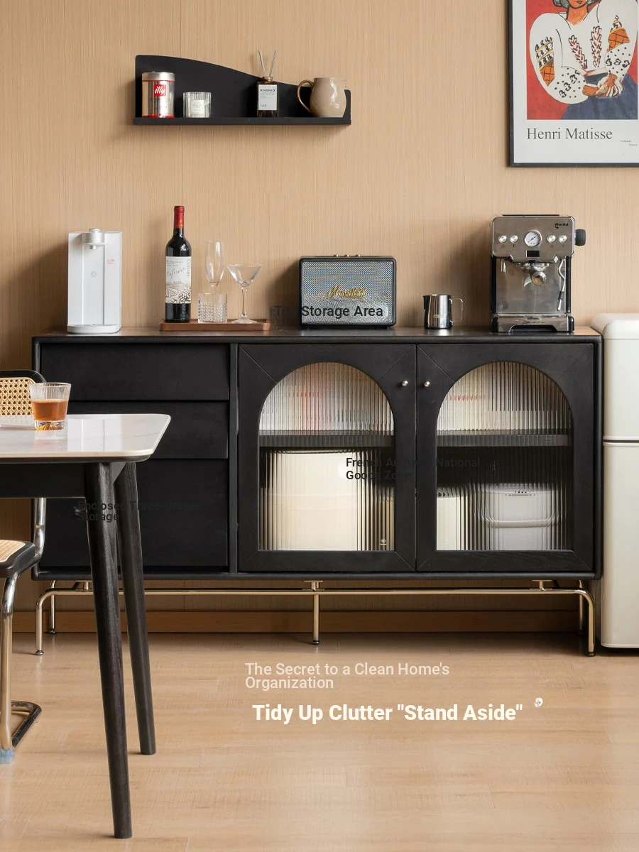 Genji Mu Yu Solid Wood Dining Sideboard - Vintage French Style Black Oak Tea Cabinet for Home Storage and Organization in Your Dining Room