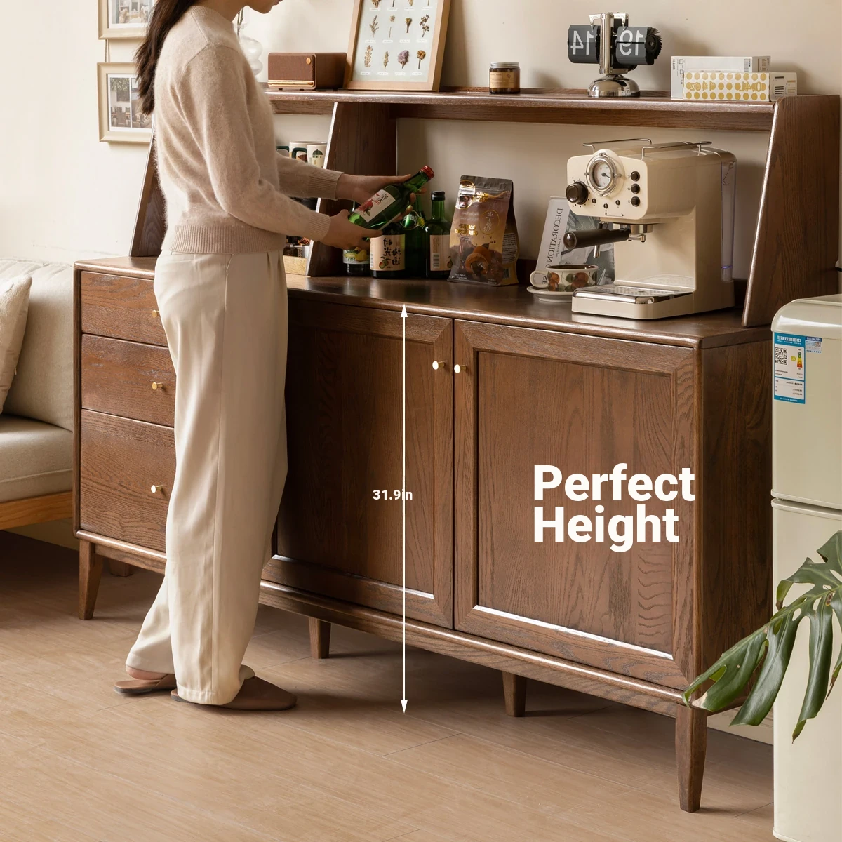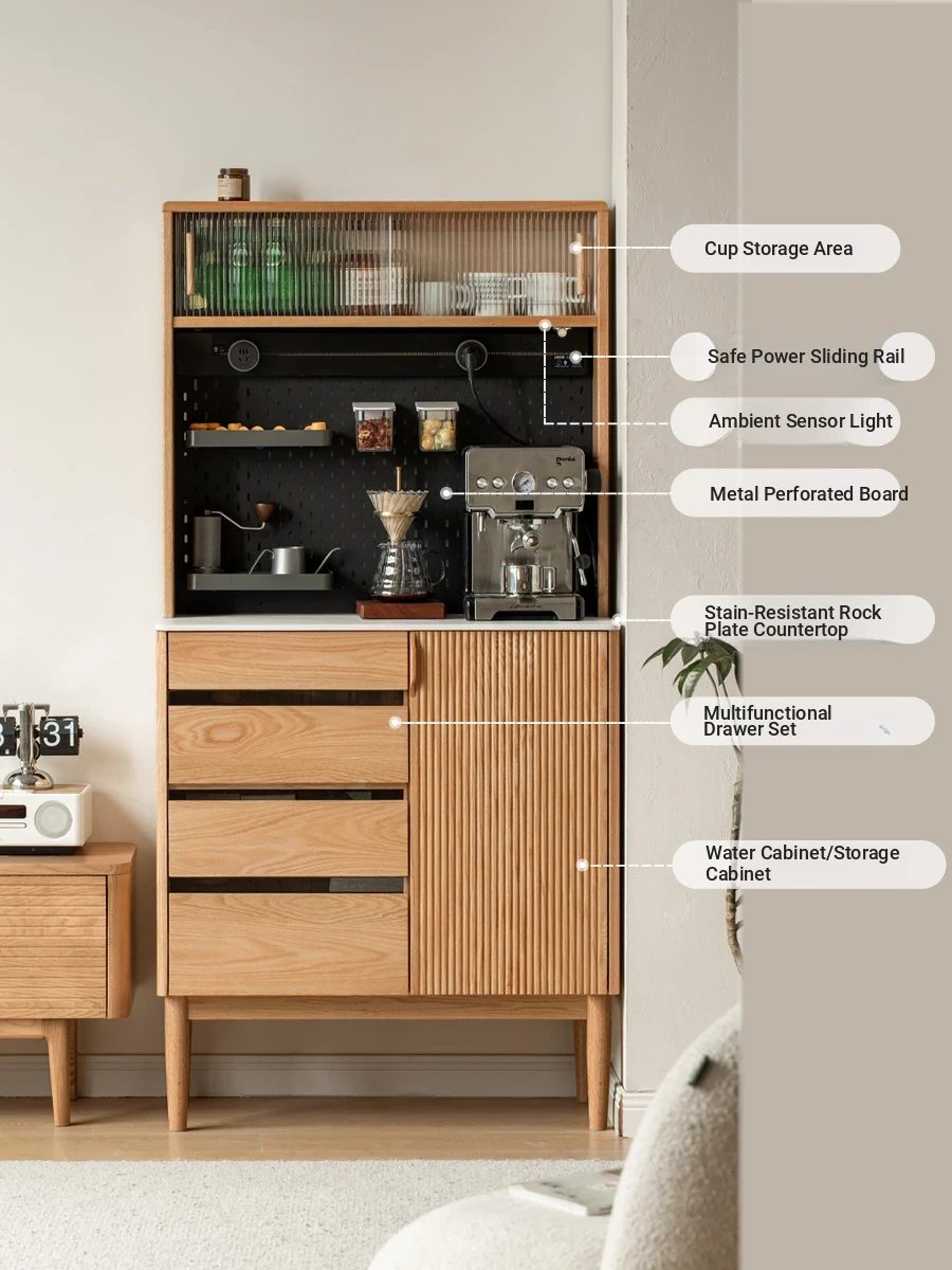 Genji Wood Modern Solid Wood Tea and Water Cabinet with Integrated High Storage Sideboard - Multifunctional Cabinet for Small Spaces, Stylish and Practical Storage Solution