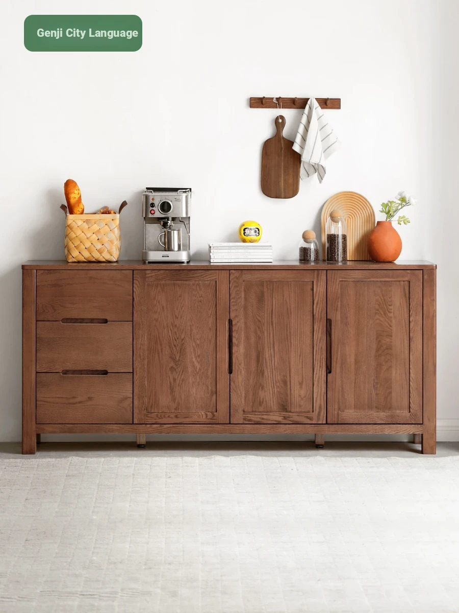 Genji Wood Solid Wood Sideboard Cabinet - Modern Minimalist Kitchen Storage Unit, Space-Saving Wall-Mounted Design for Versatile Use and Efficient Organization. Perfect for Your Dining Room or Kitchen!