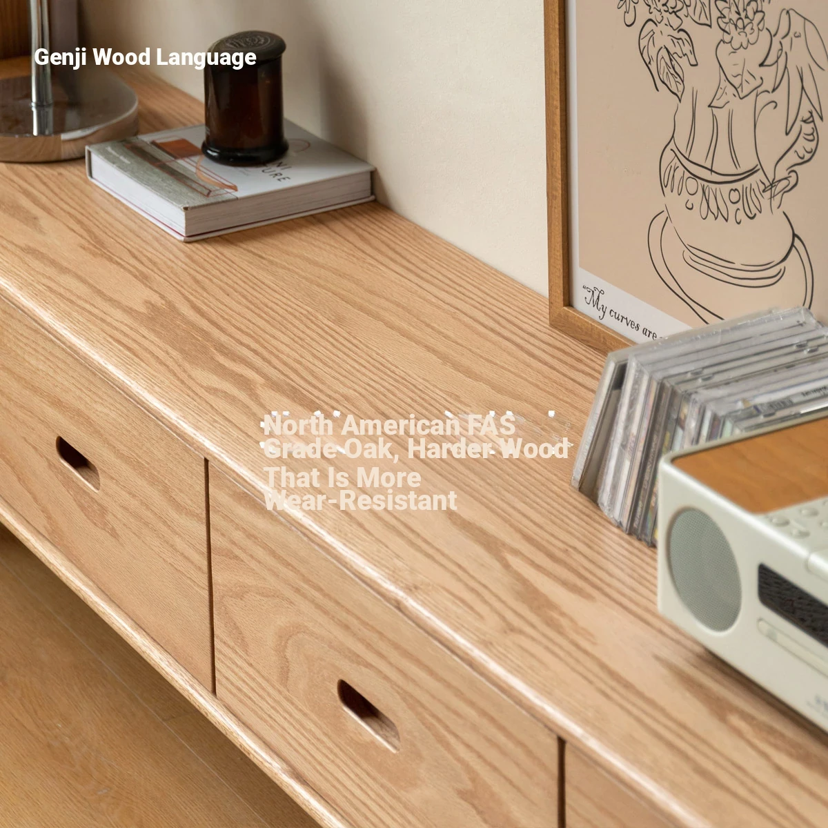 Genji Mu Yu Solid Wood TV Stand - Modern Minimalist Oak Storage Cabinet for Small Living Rooms, Perfect for Home Organization and Style.
