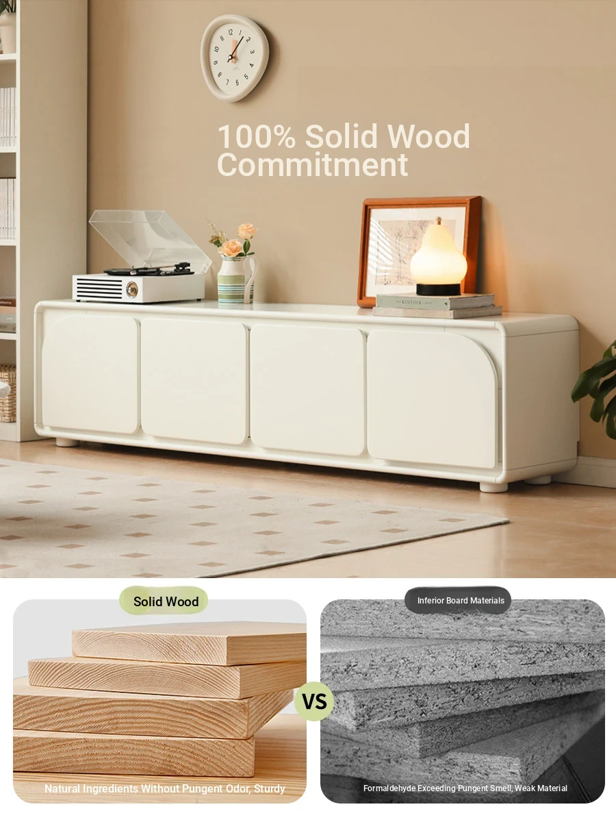 Genji Mu Yu Solid Wood TV Cabinet – Cream-Style Floor Cabinet for Living Room, Perfect for Small Spaces, White Storage Unit for Home Use