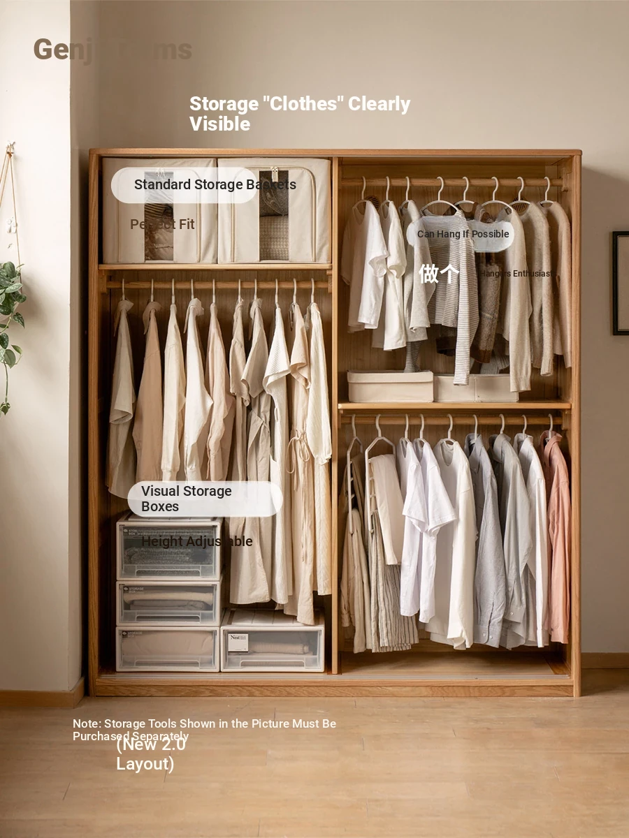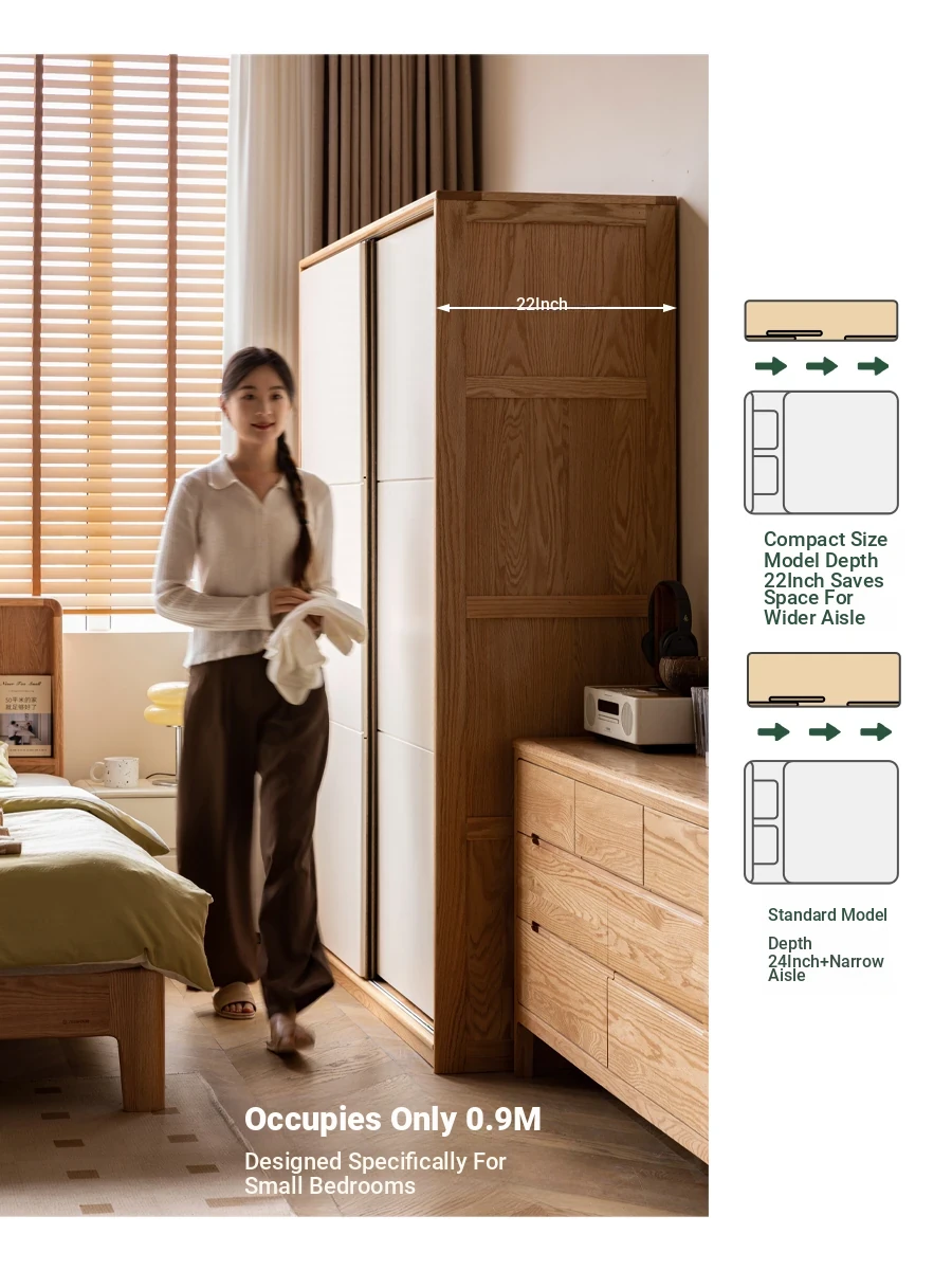 Genji Mu Yu Solid Wood Wardrobe - Scandinavian Oak Sliding Door Closet for Bedroom Storage, Stylish and Functional Home Organization Solution