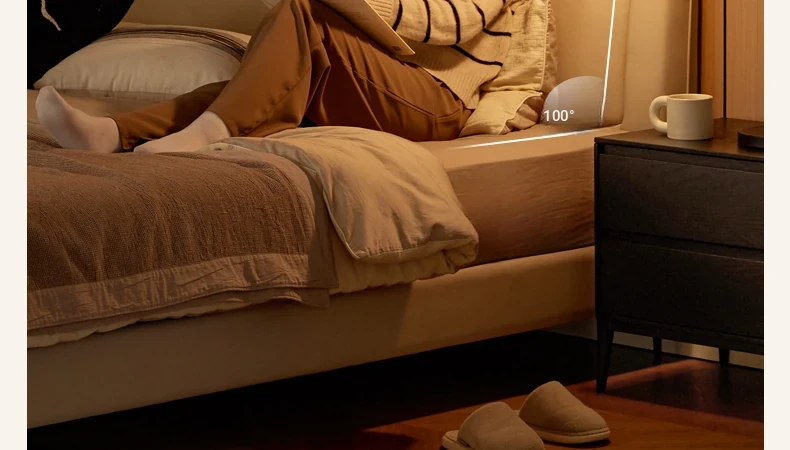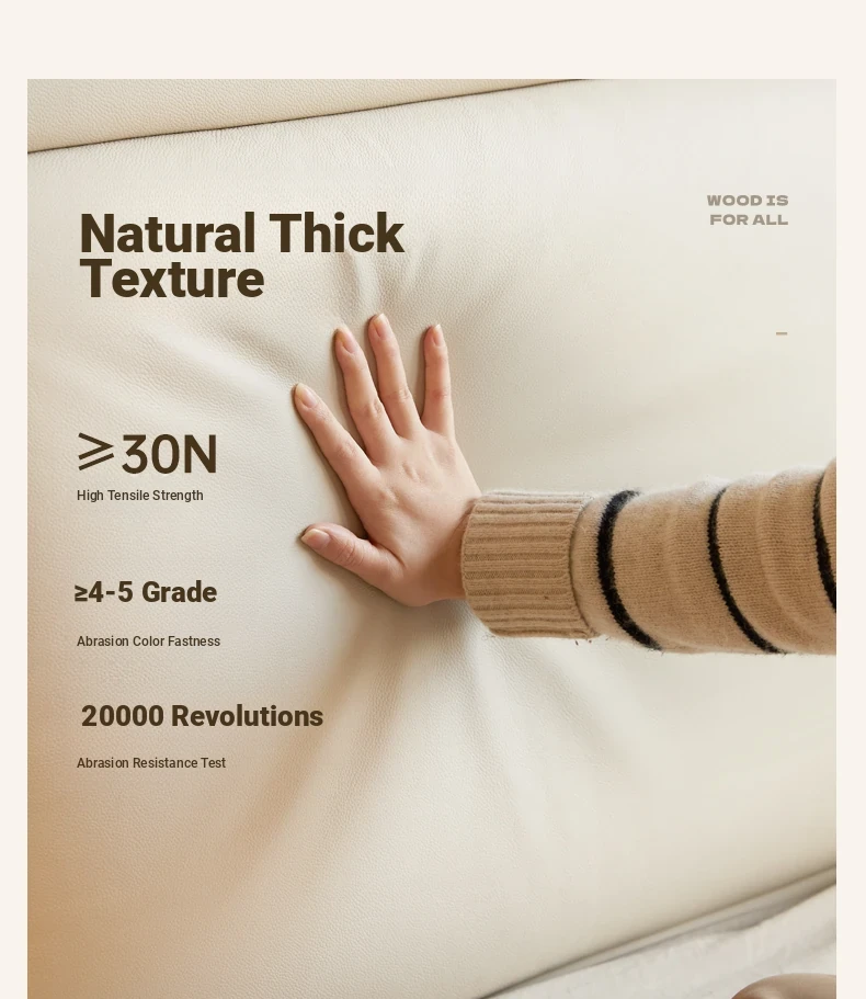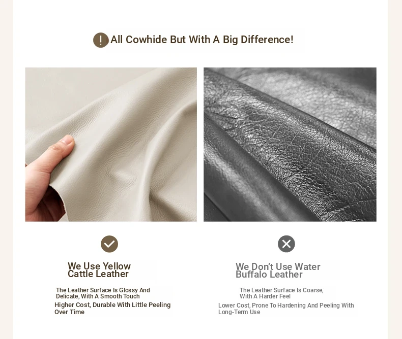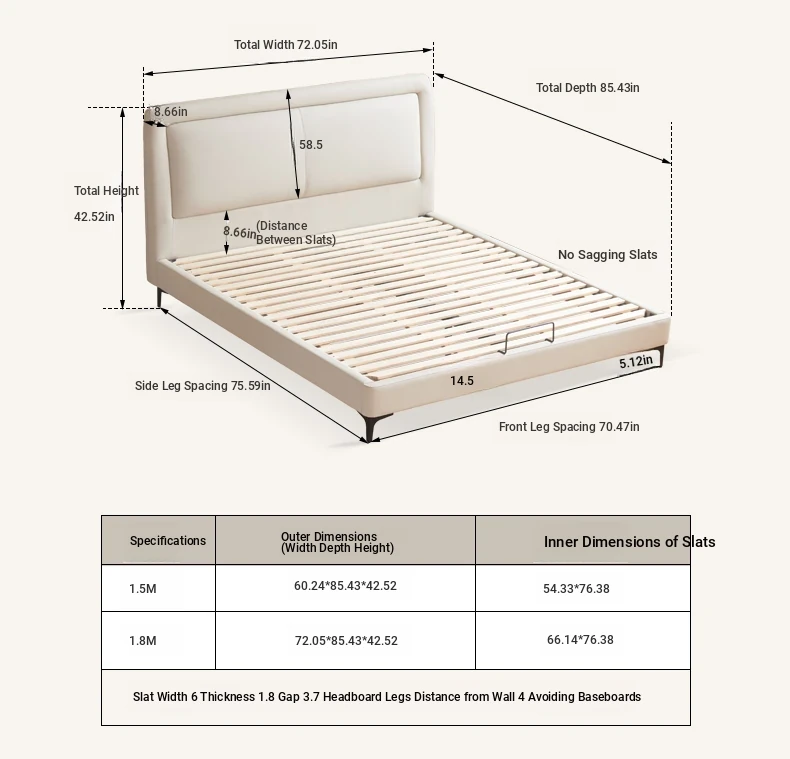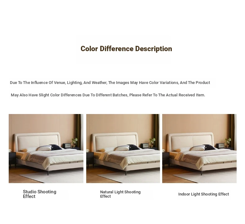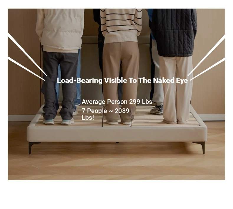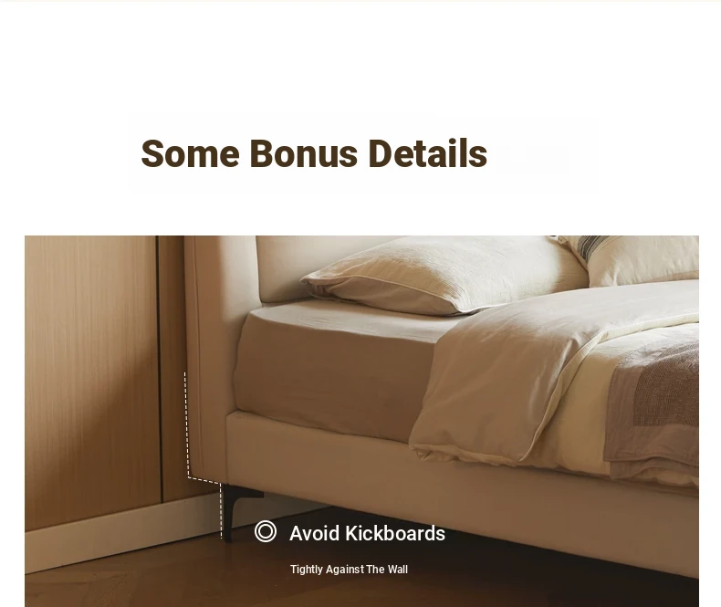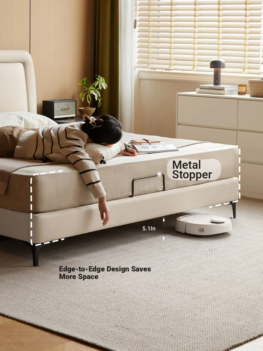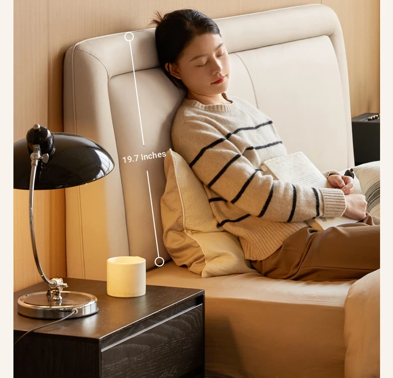 Genji Mu Yu Genuine Leather Modern Minimalist Queen Bed – Cream Upholstered Bed with White Border, Cowhide Double Bed for Stylish Bedrooms