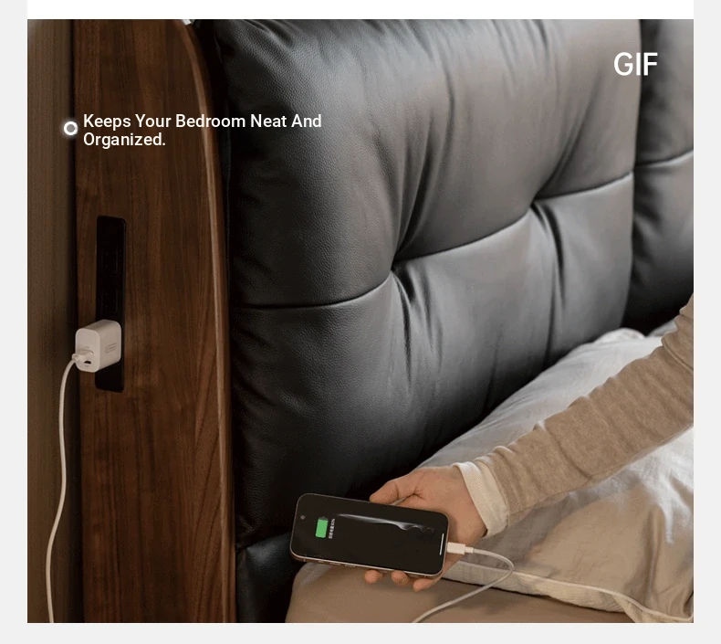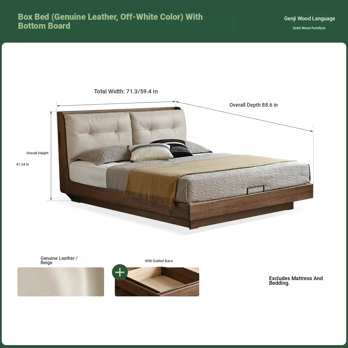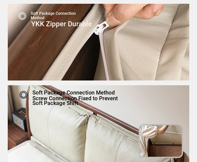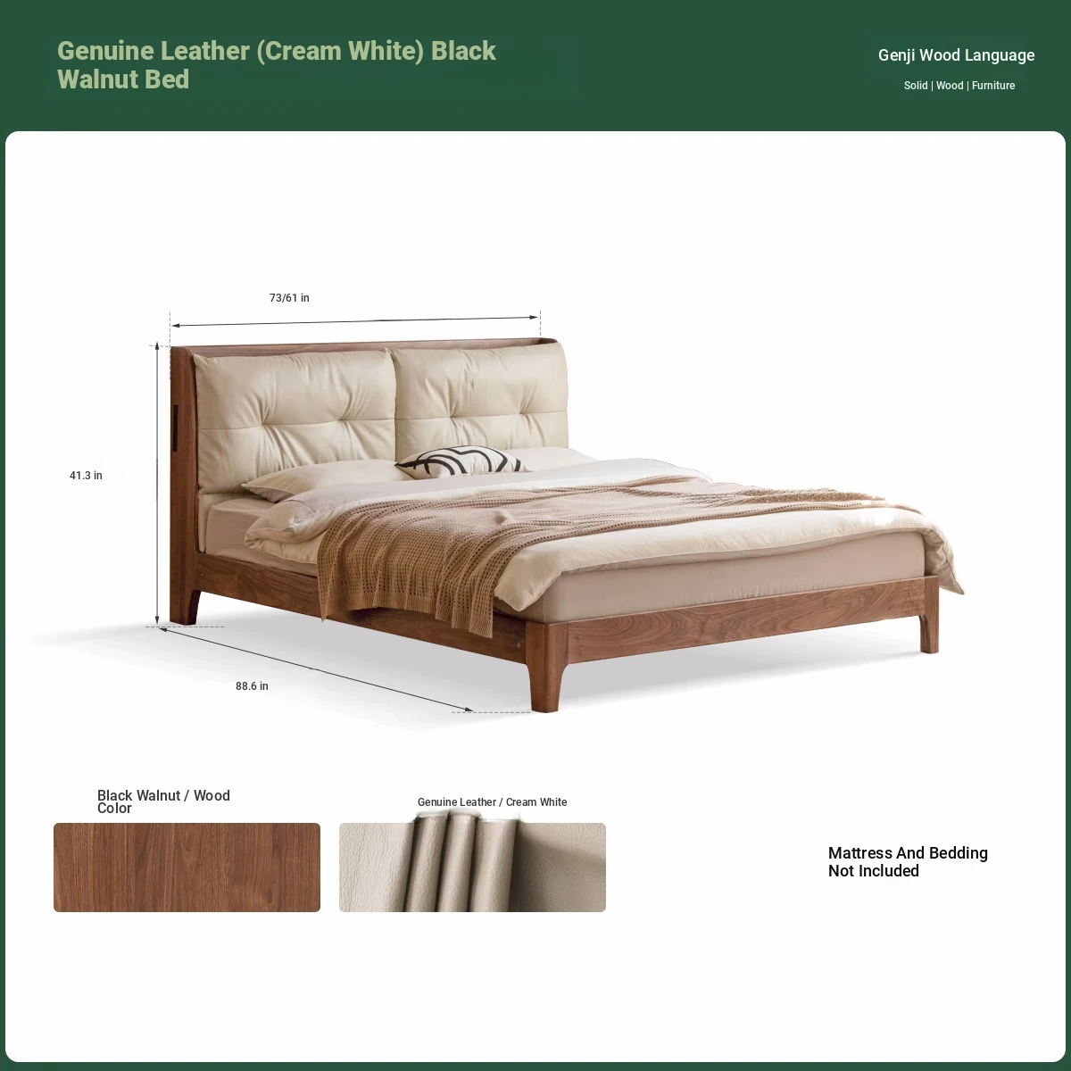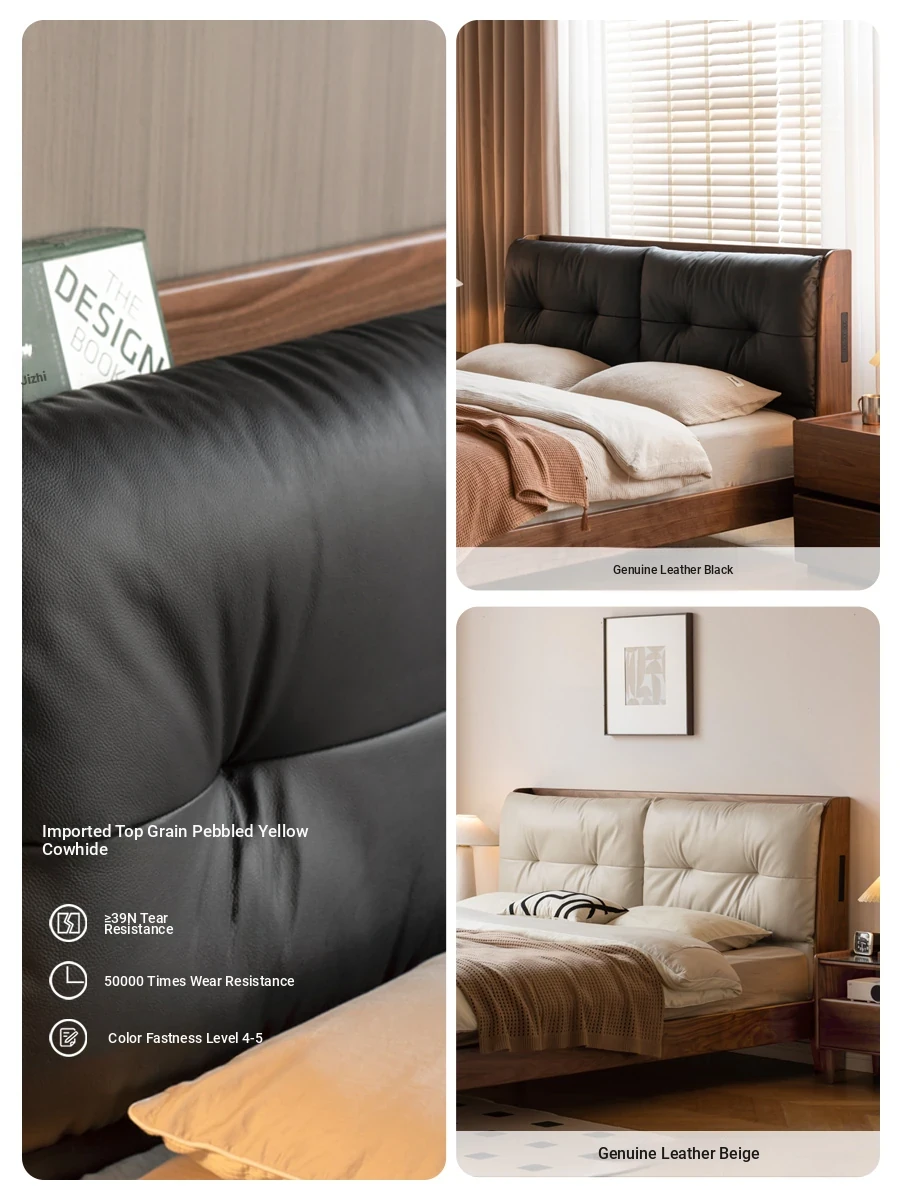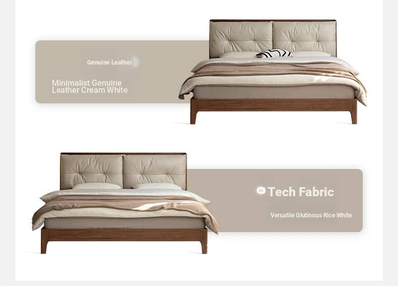 (1) genuine leather (rice White) black walnut bed K00B154