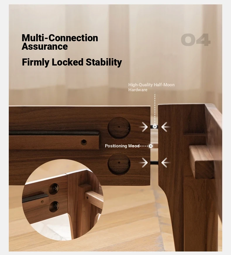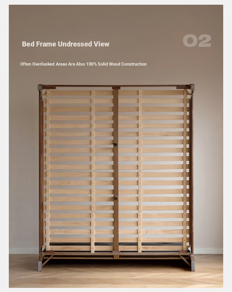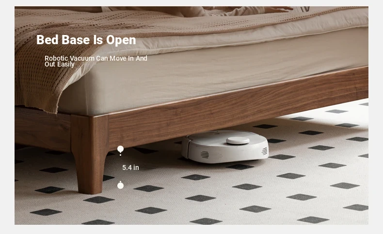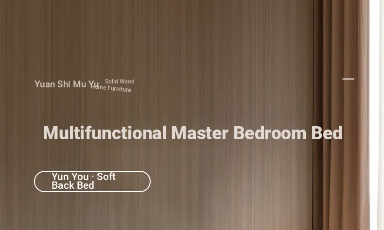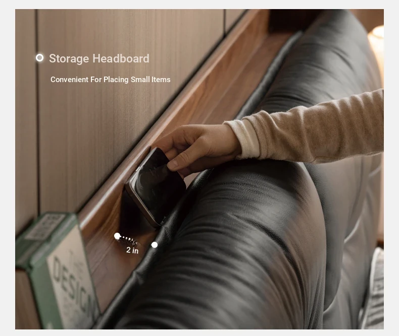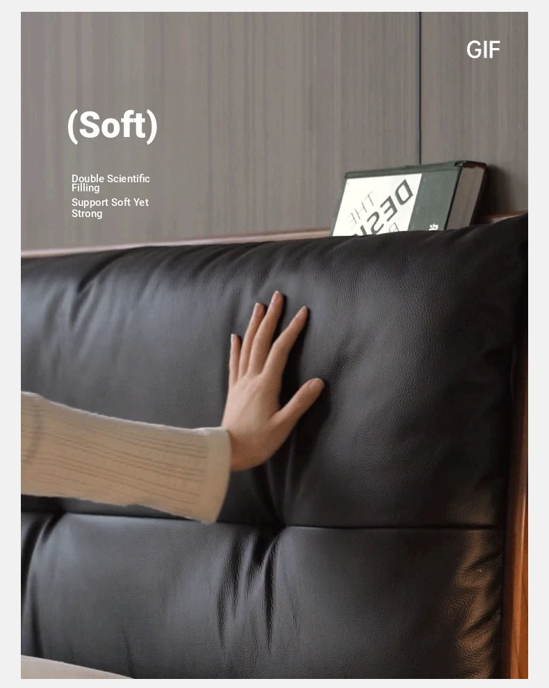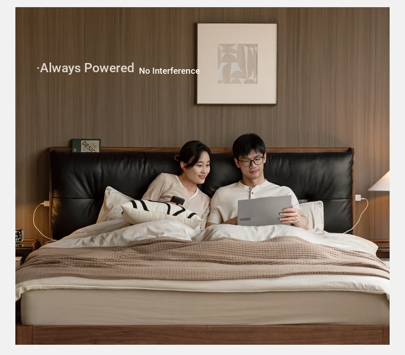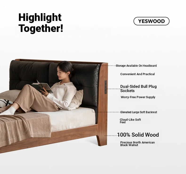 Genji Mu Yu Solid Wood Bed with Leather Upholstered Headboard – Minimalist Black Walnut Double Bed for Bedroom, Luxurious Yet Affordable Home King Size Bed