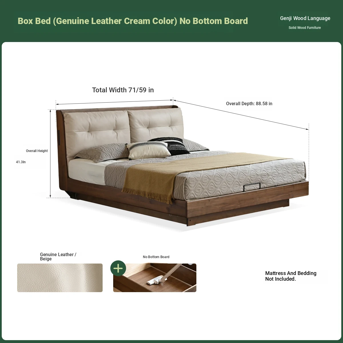 (Nanyang Golden sandalwood walnut color) box bed (genuine leather rice White) (with bottom plate)