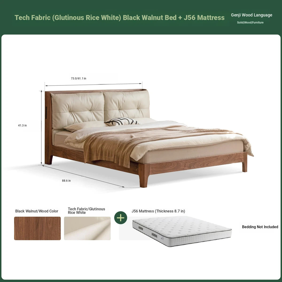 (Nanyang Golden sandalwood walnut color) technology cloth (glutinous rice White) black walnut bed + mattress (8.66in thick J56 hard H2)