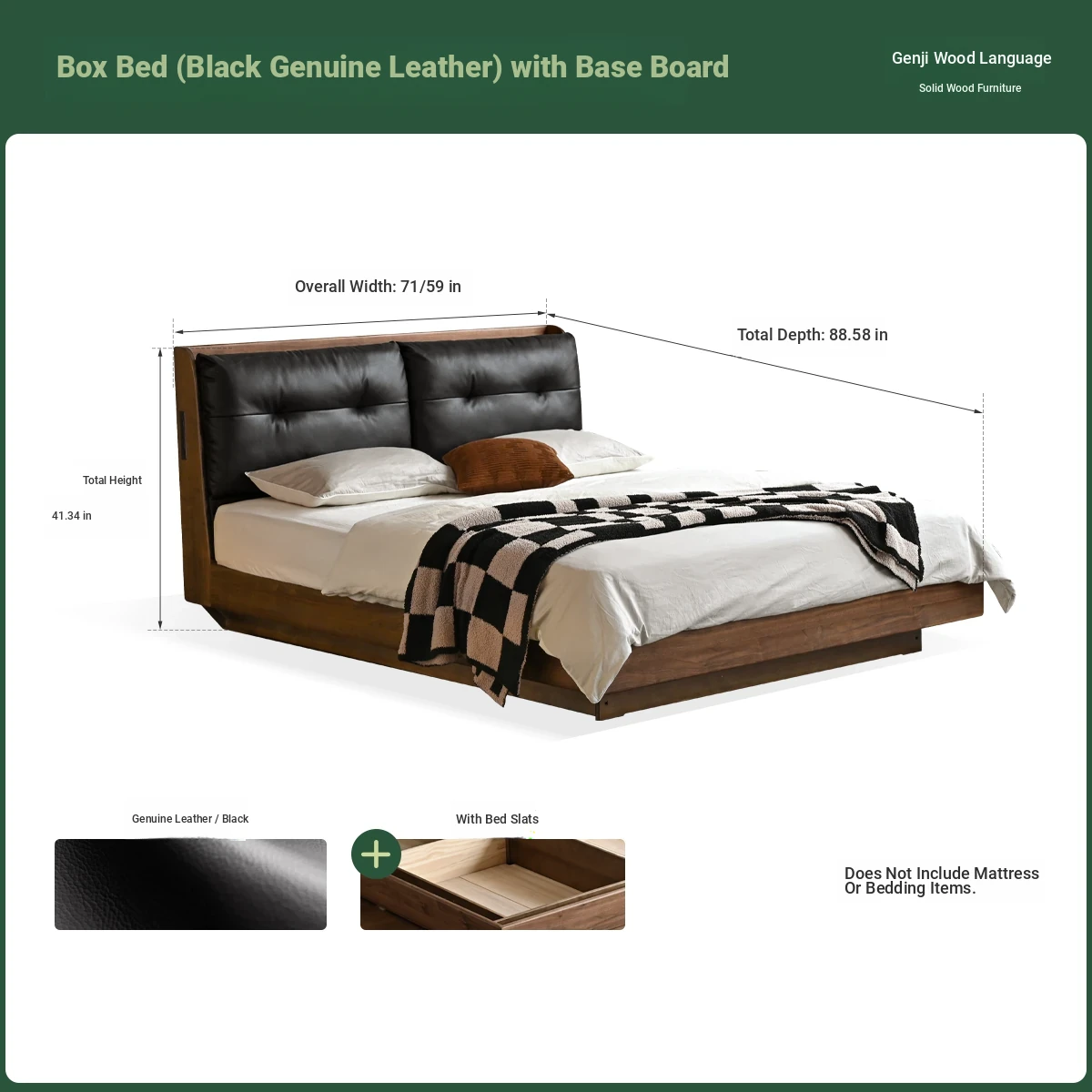 (Nanyang Golden sandalwood walnut color) box bed (leather black) (with bottom plate)