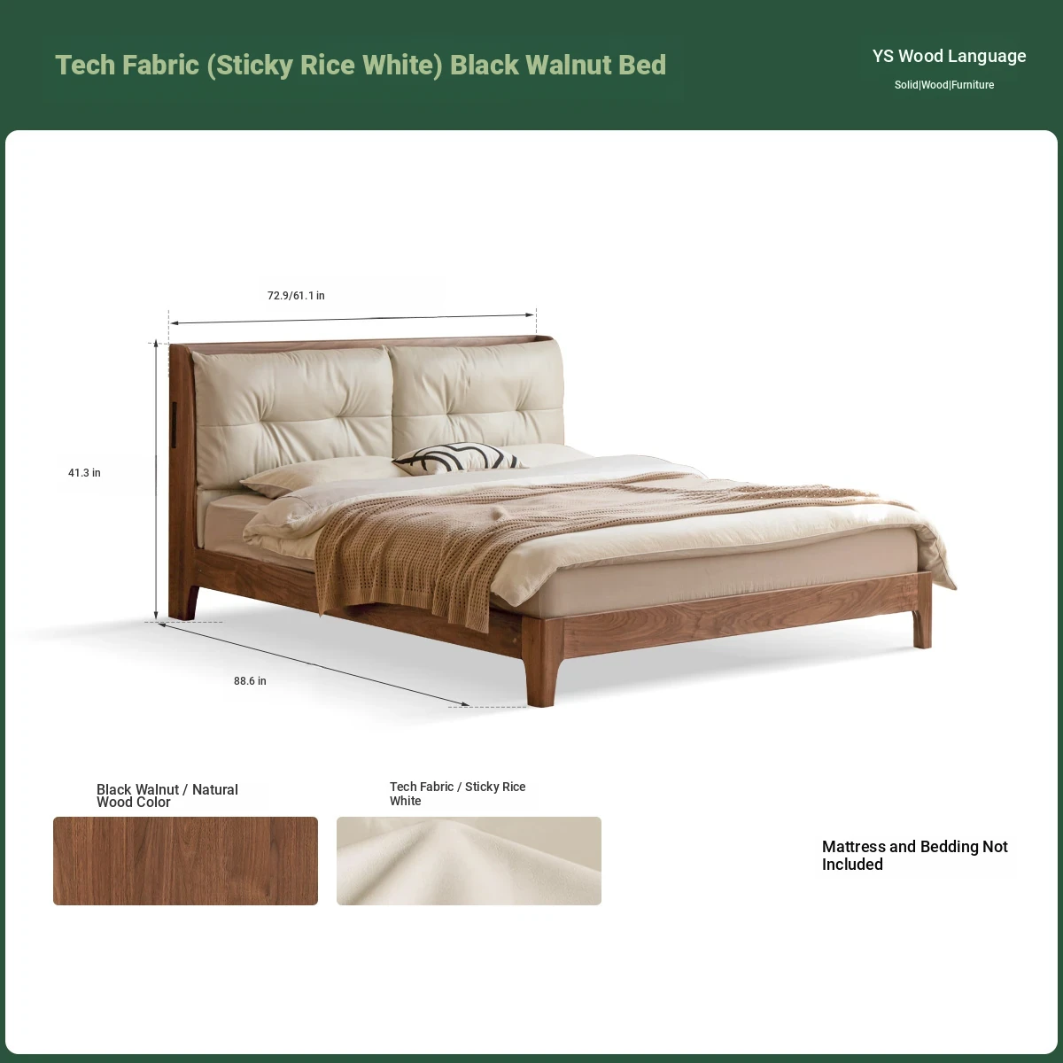 (Nanyang Golden sandalwood walnut color) technology cloth (glutinous rice White) black walnut wood bed