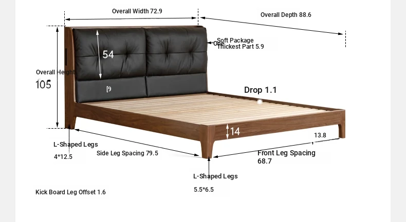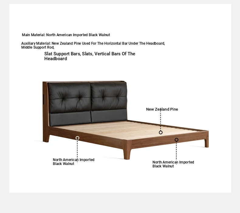 (Nanyang Golden sandalwood walnut color) leather (black) black walnut bed