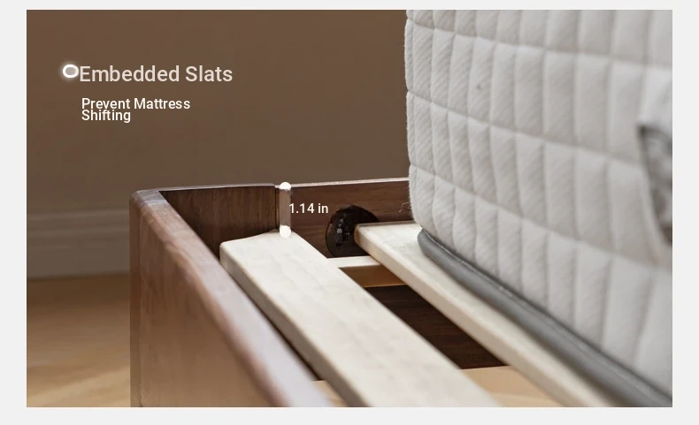 (Nanyang Golden sandalwood walnut color) leather (rice White) black walnut bed + mattress (8.66in thick J56 hard H2)+15.75 in bedside table (00A38)