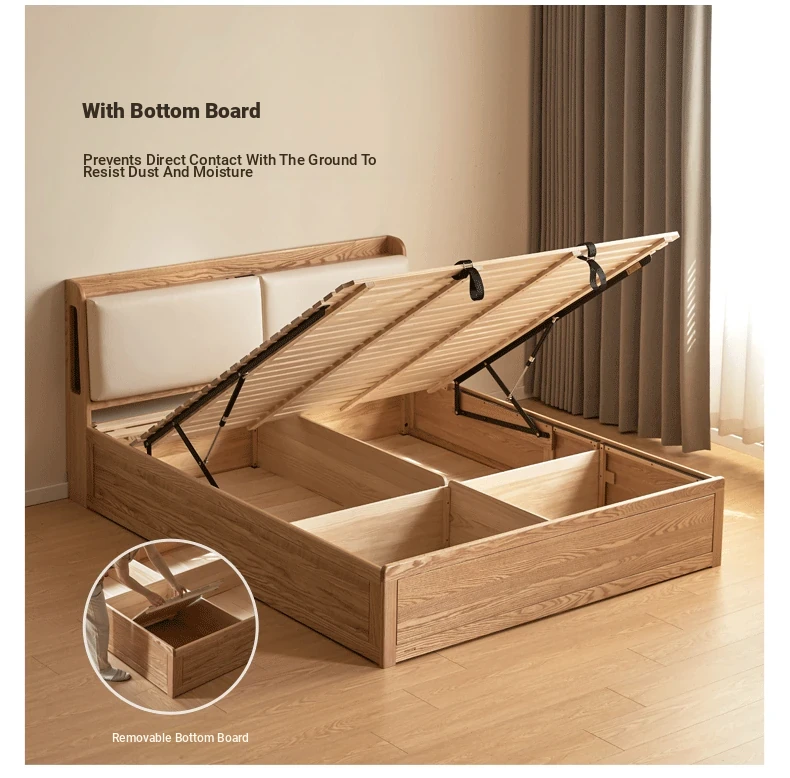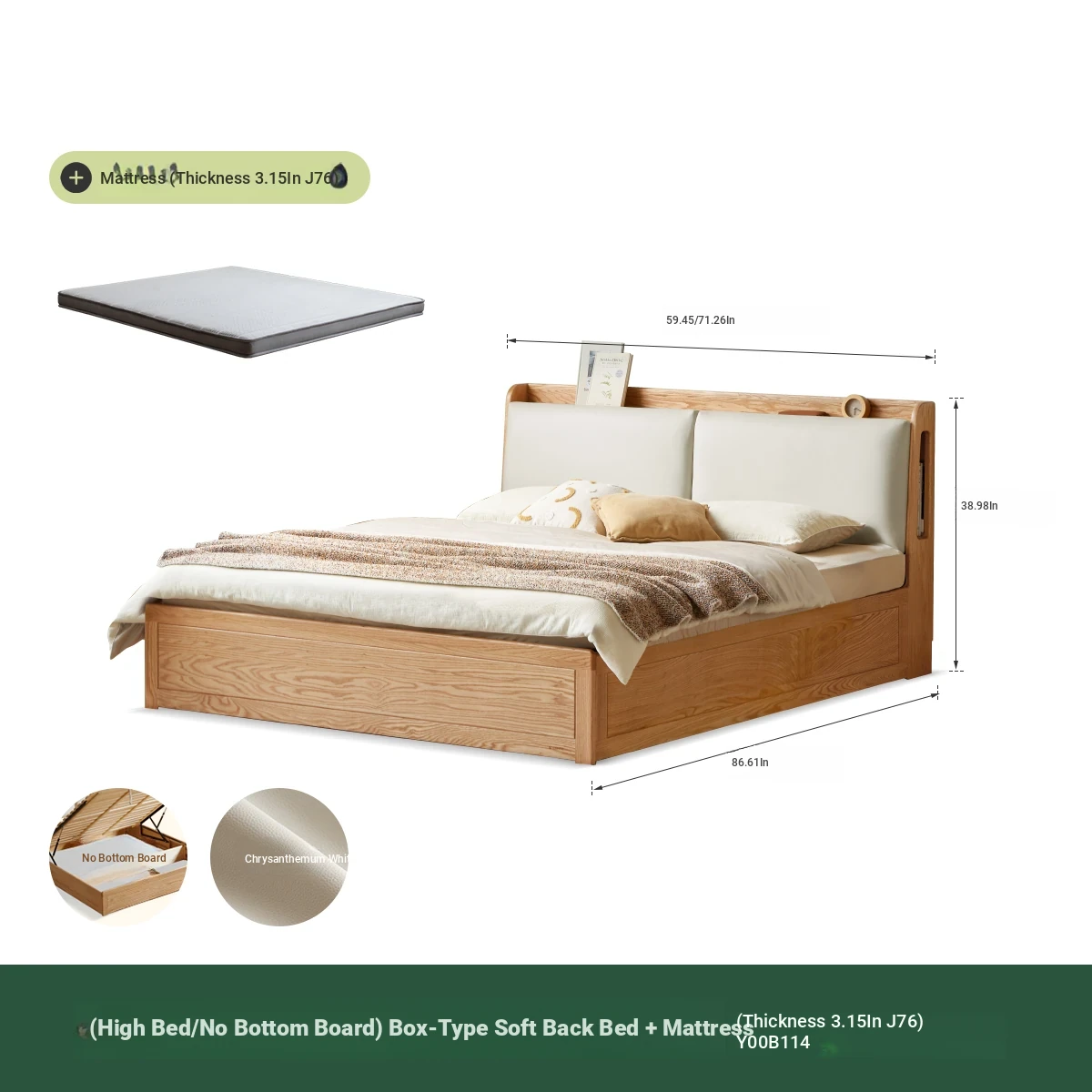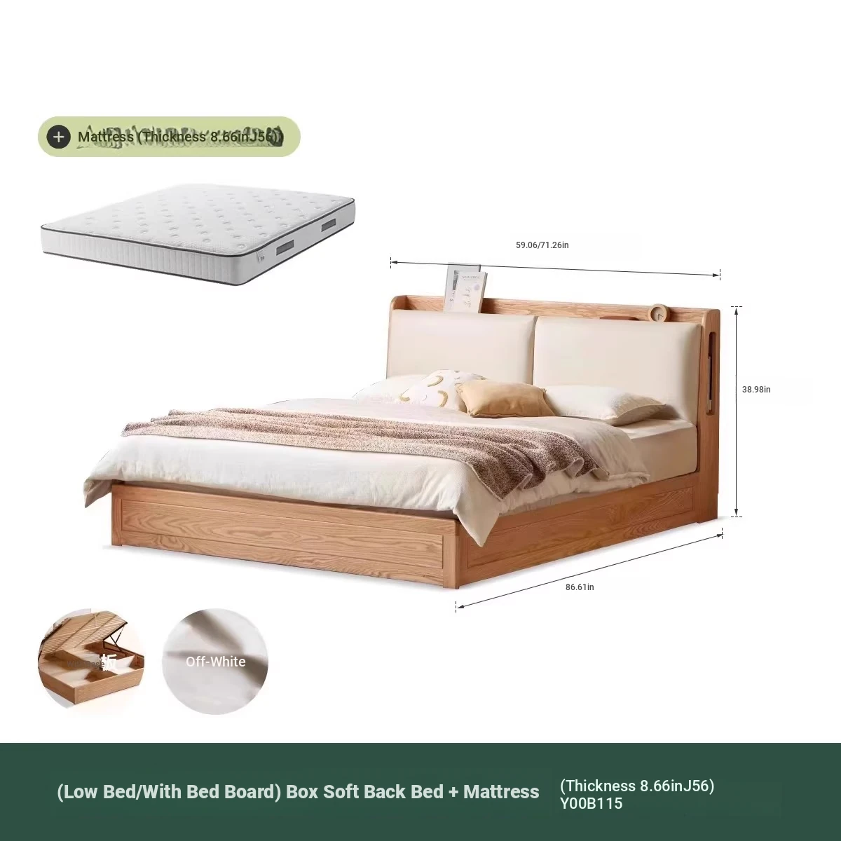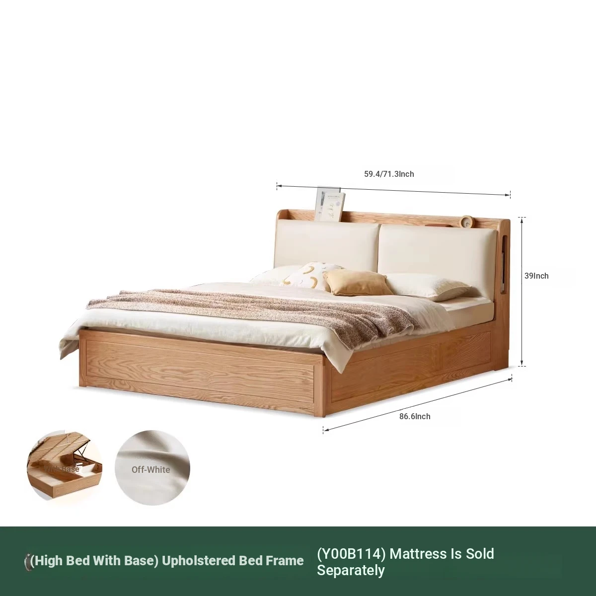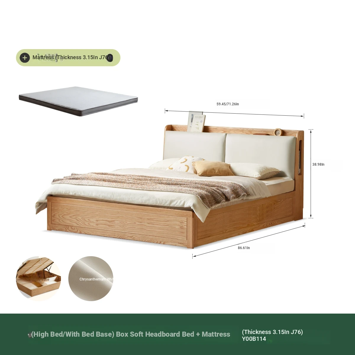 Genji Mu Yu Solid Wood Multifunctional Storage Bed with Tech Fabric Headboard – Featuring Oak Twin Bed Design for Stylish and Practical Bedroom Organization
