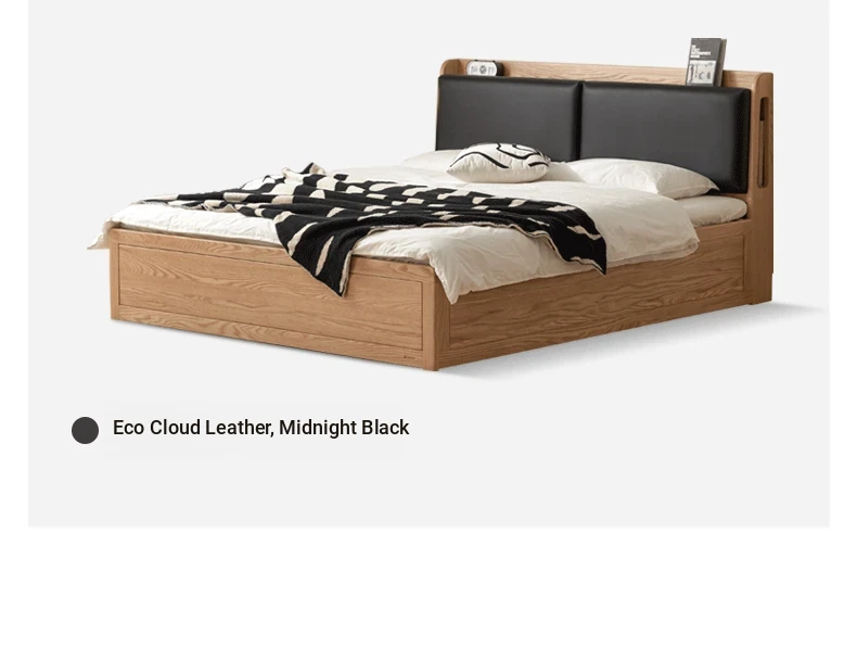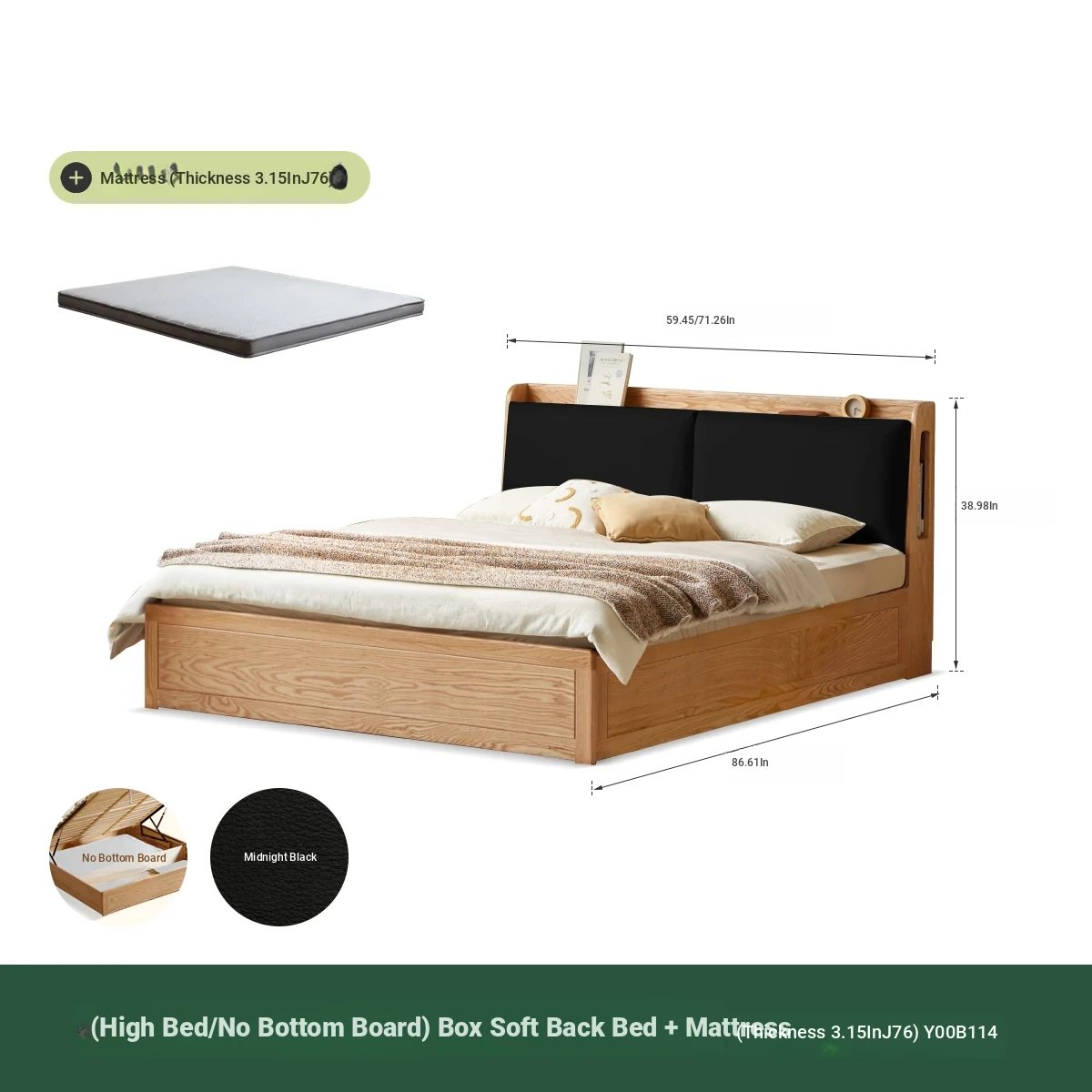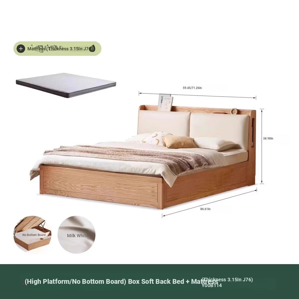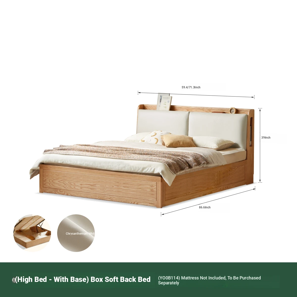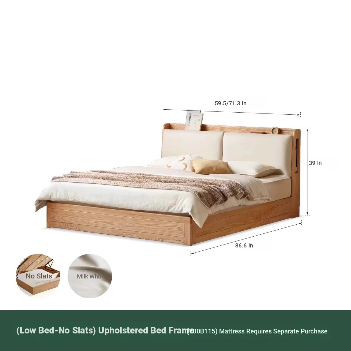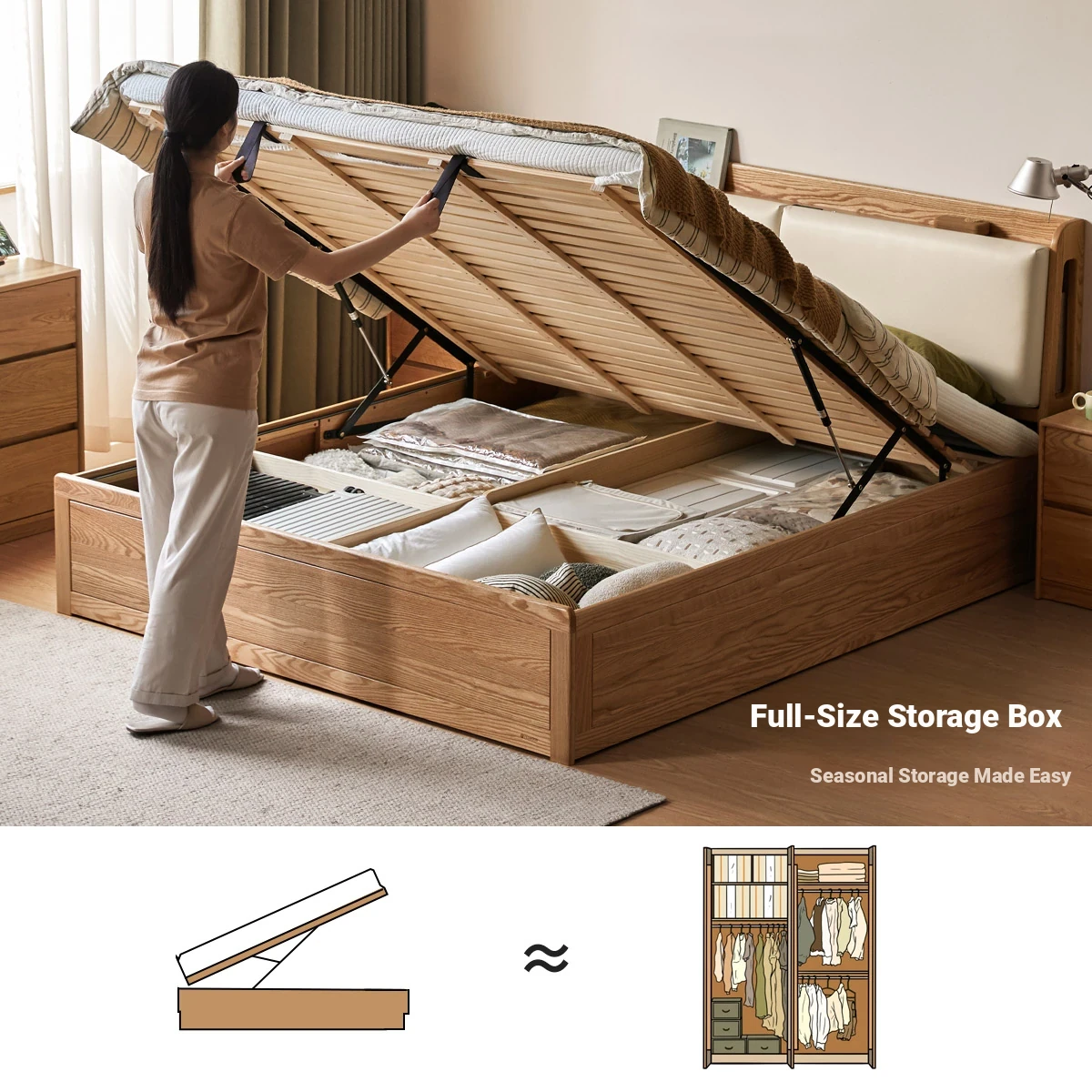 Genji Mu Yu Solid Wood Multifunctional Storage Bed with Tech Fabric Headboard – Featuring Oak Twin Bed Design for Stylish and Practical Bedroom Organization