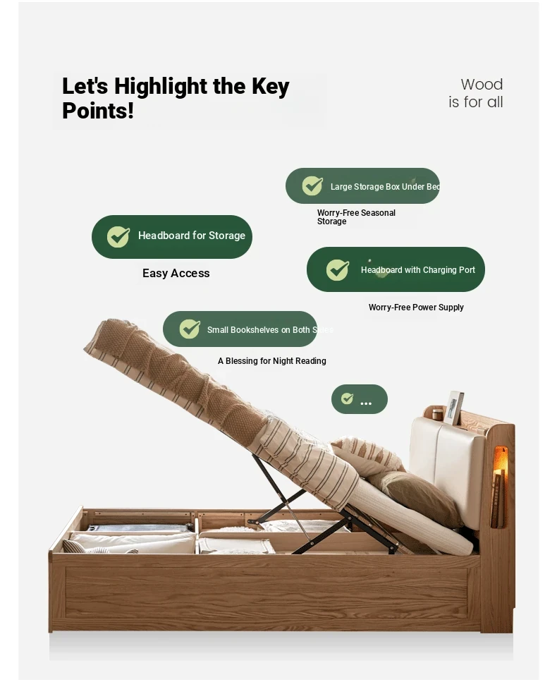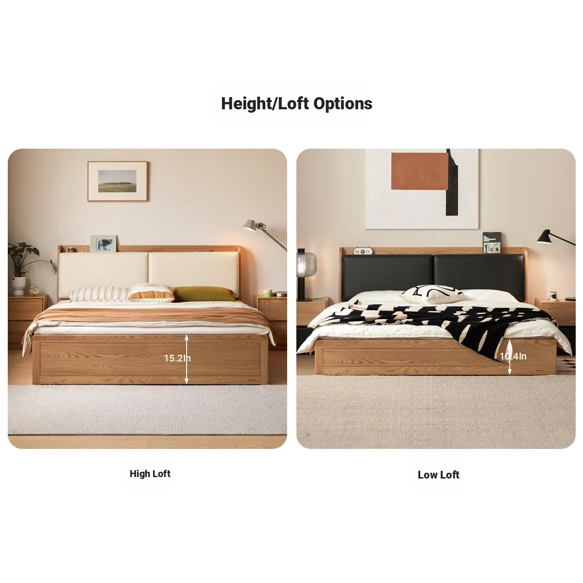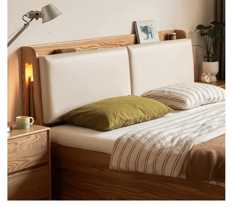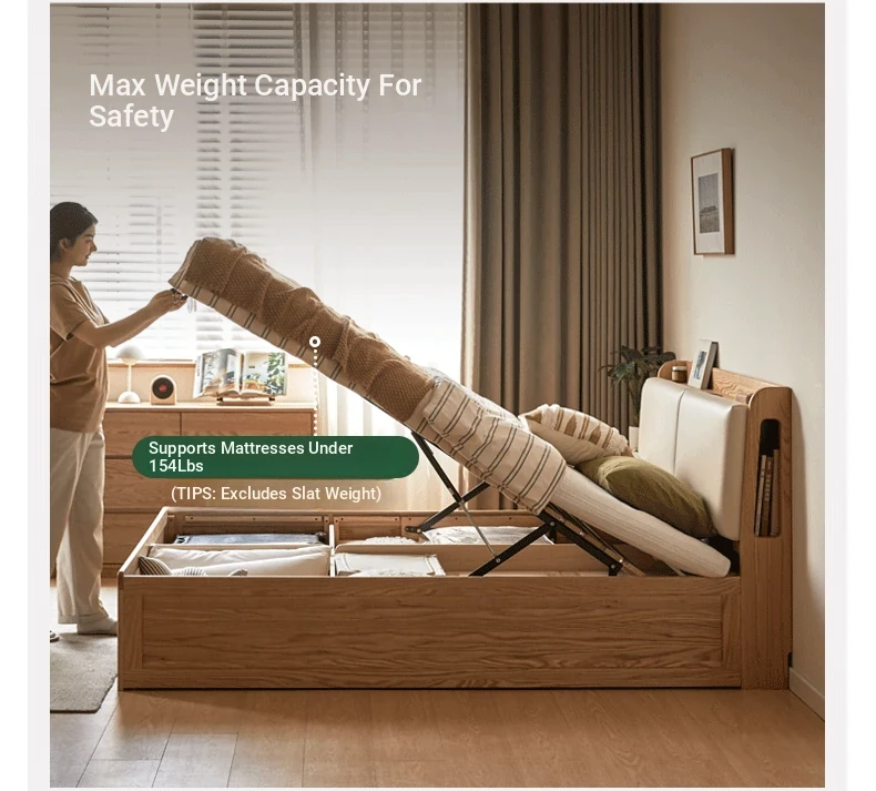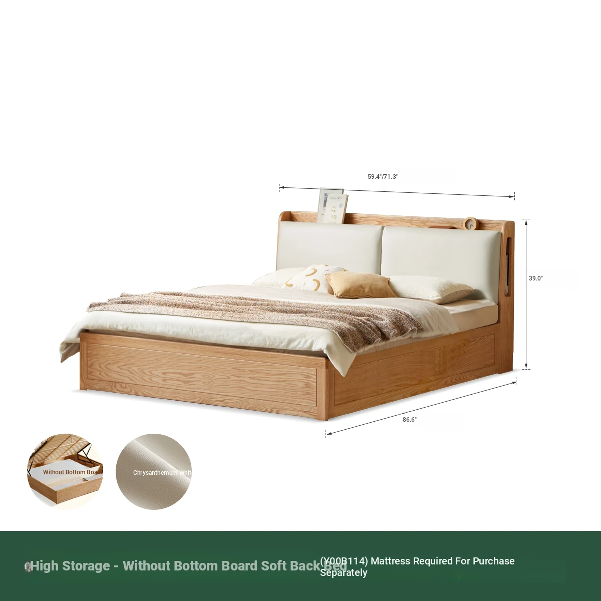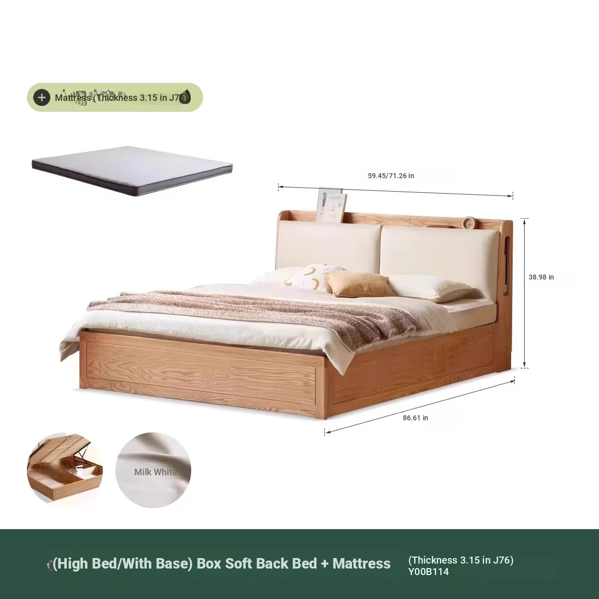 Genji Mu Yu Solid Wood Multifunctional Storage Bed with Tech Fabric Headboard – Featuring Oak Twin Bed Design for Stylish and Practical Bedroom Organization