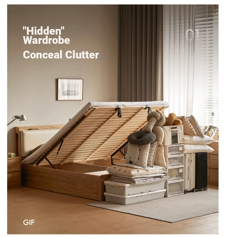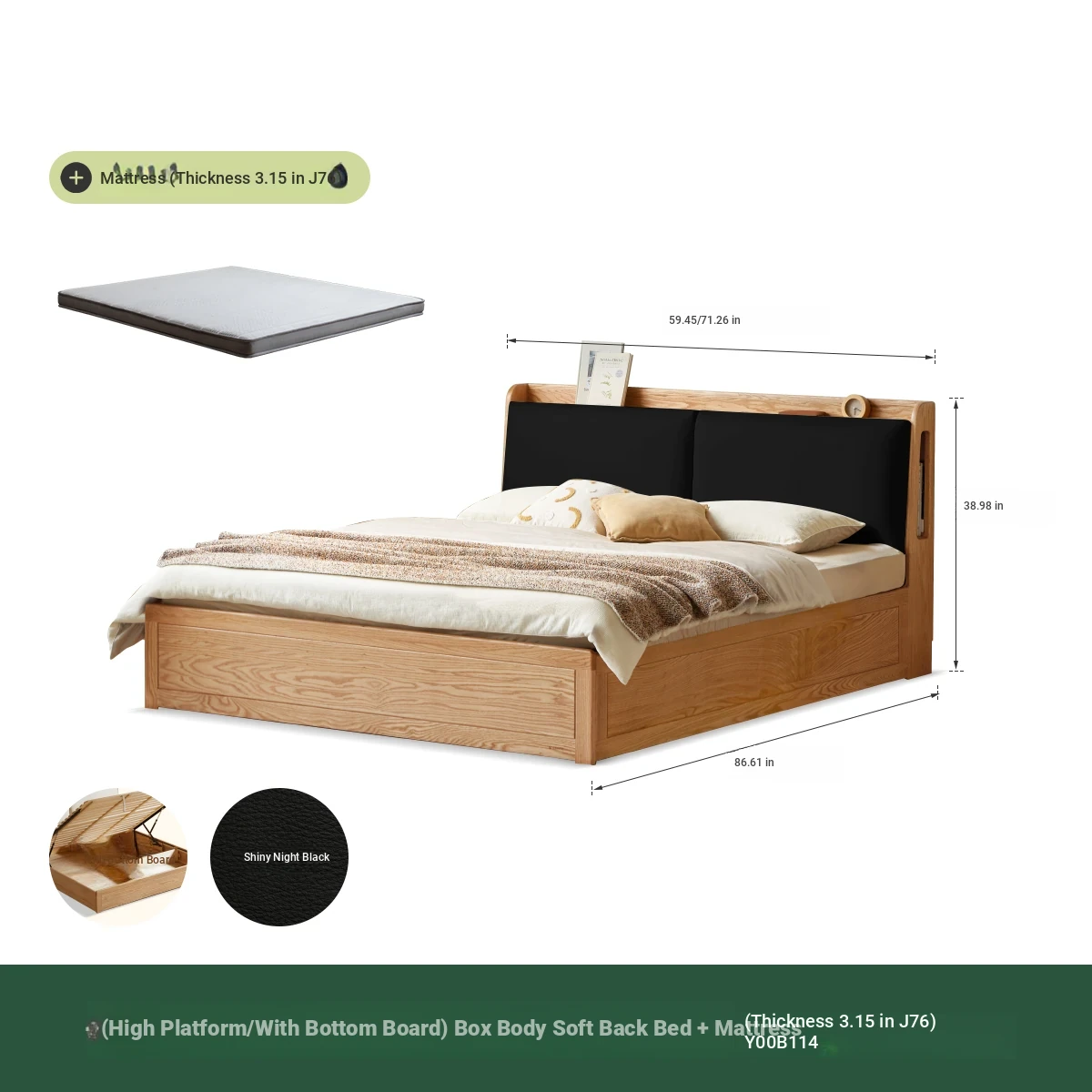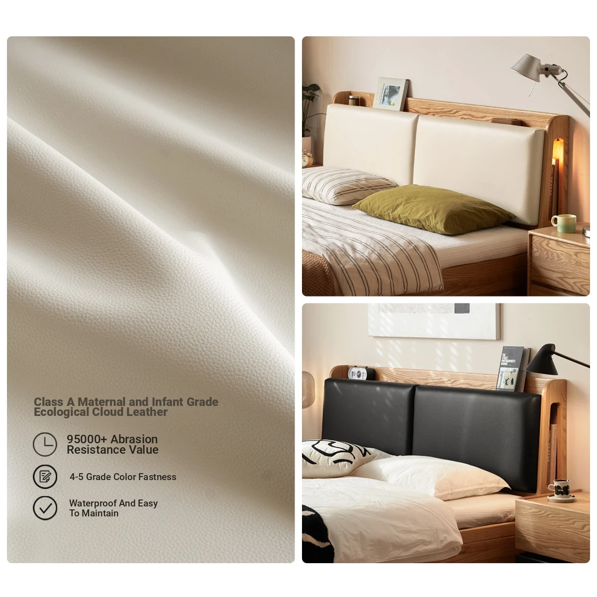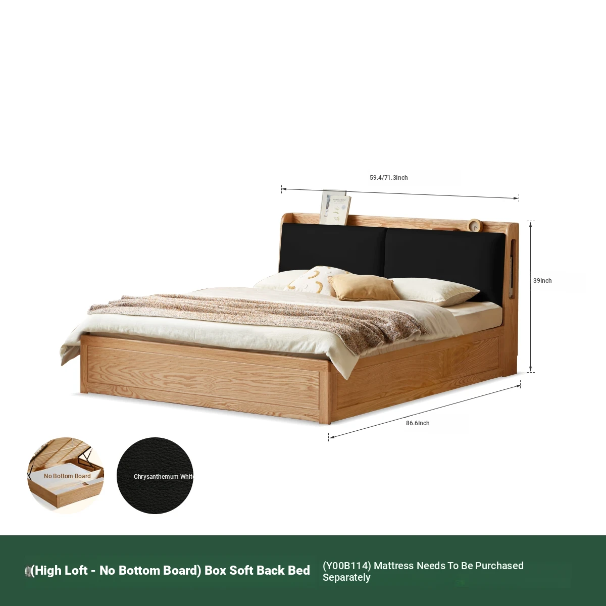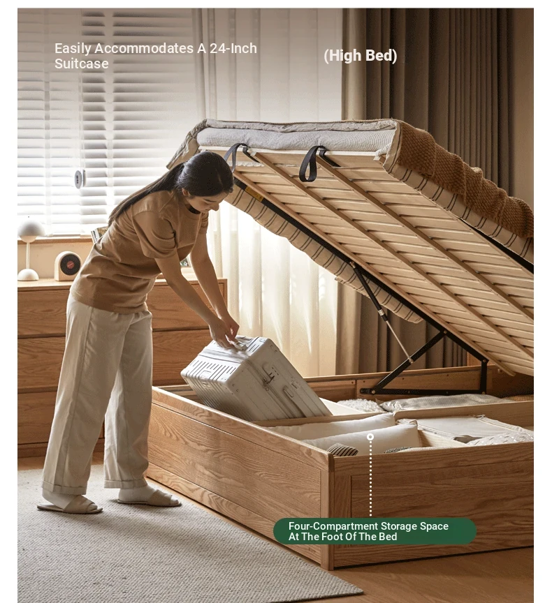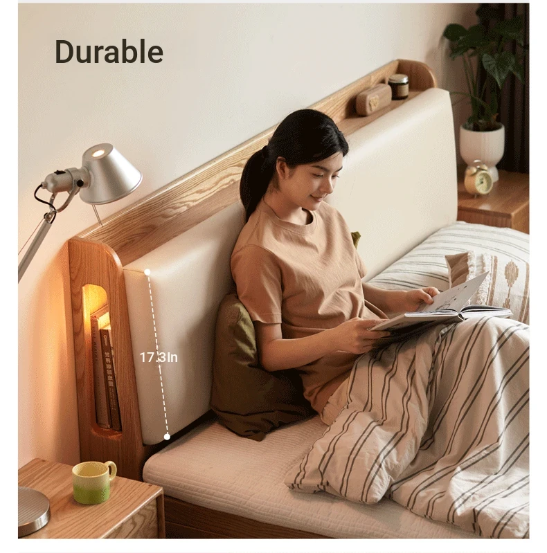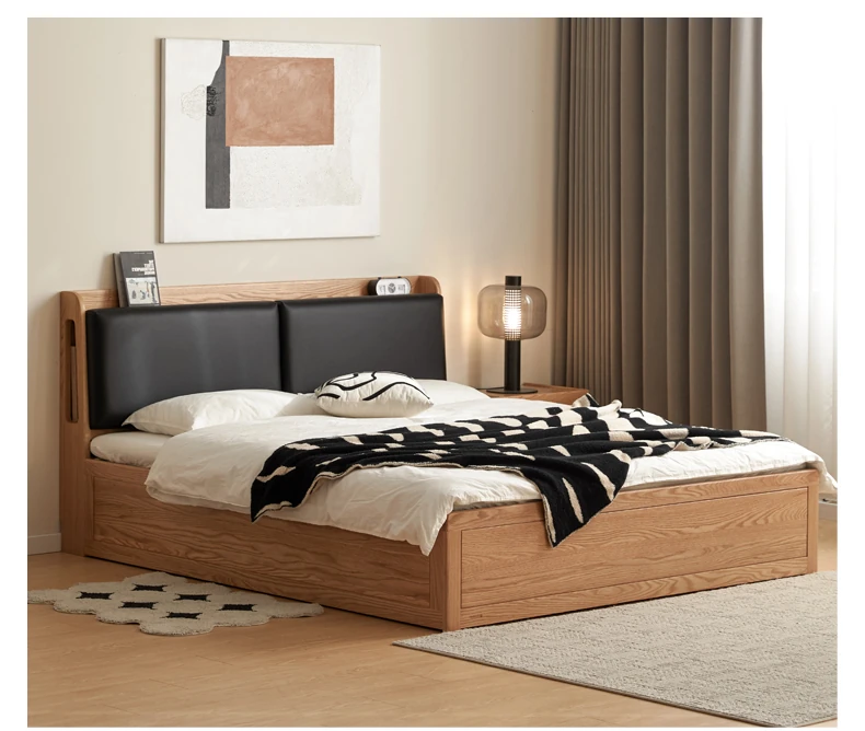 Genji Mu Yu Solid Wood Multifunctional Storage Bed with Tech Fabric Headboard – Featuring Oak Twin Bed Design for Stylish and Practical Bedroom Organization