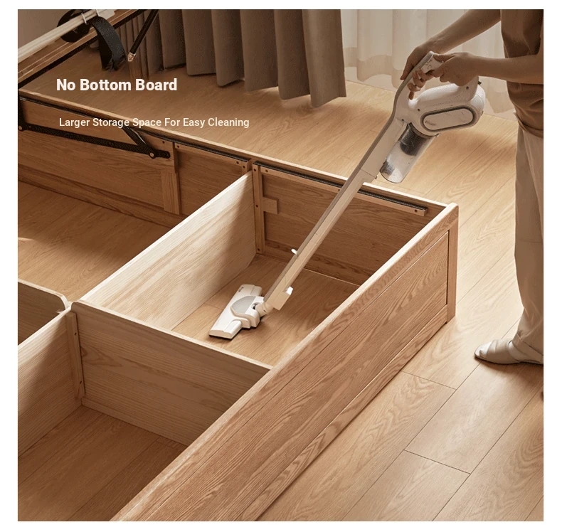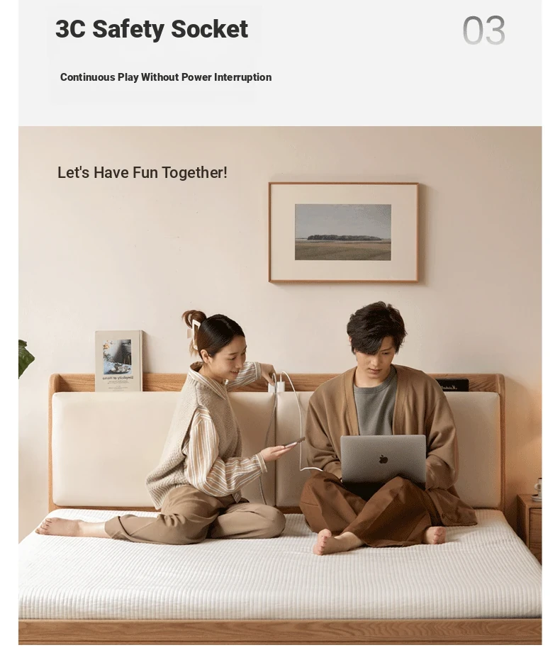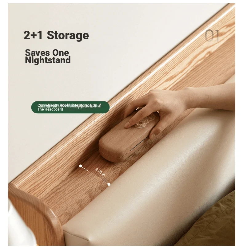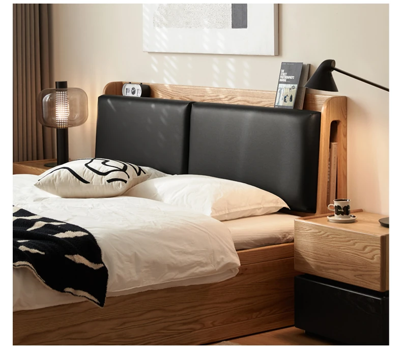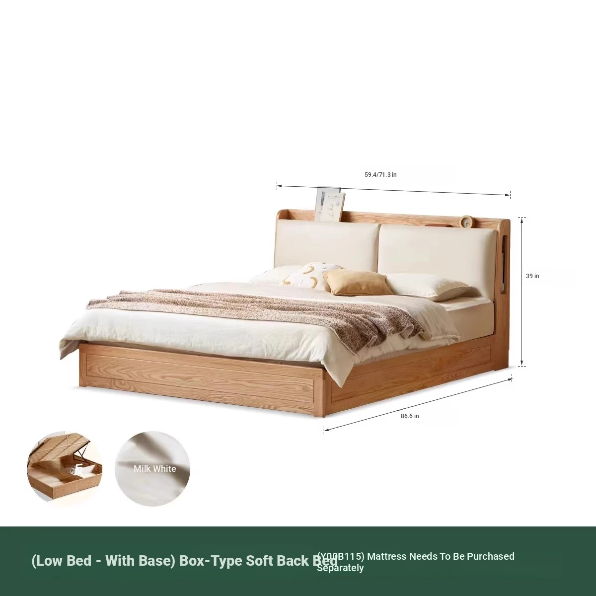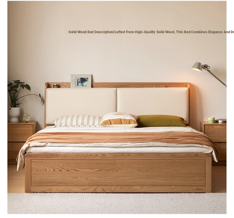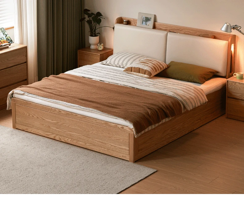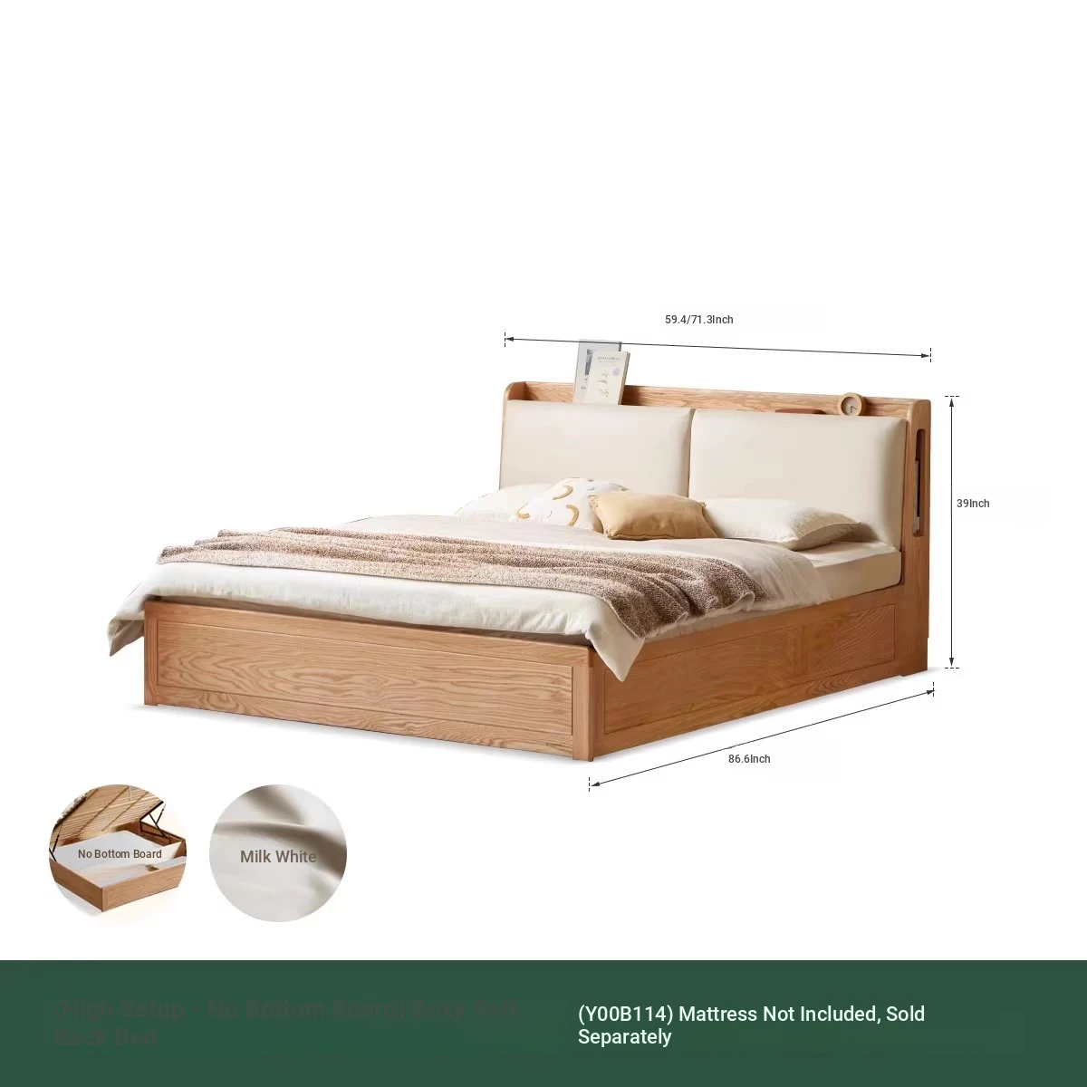 Genji Mu Yu Solid Wood Multifunctional Storage Bed with Tech Fabric Headboard – Featuring Oak Twin Bed Design for Stylish and Practical Bedroom Organization
