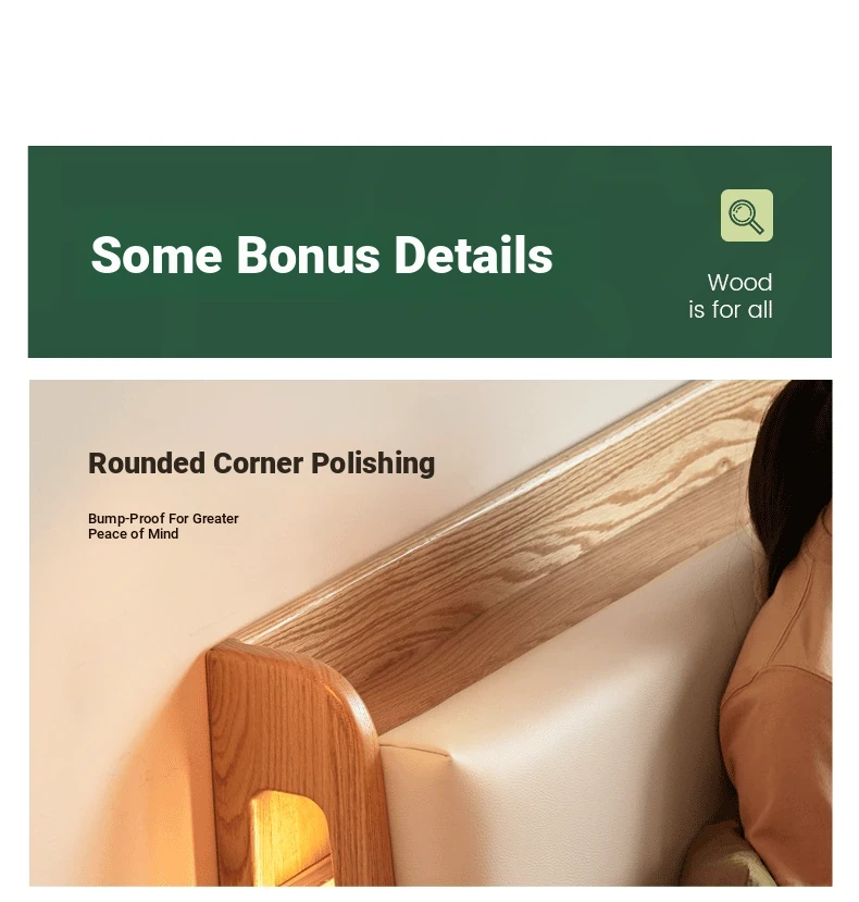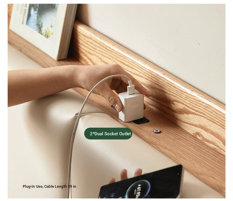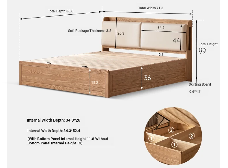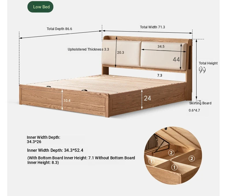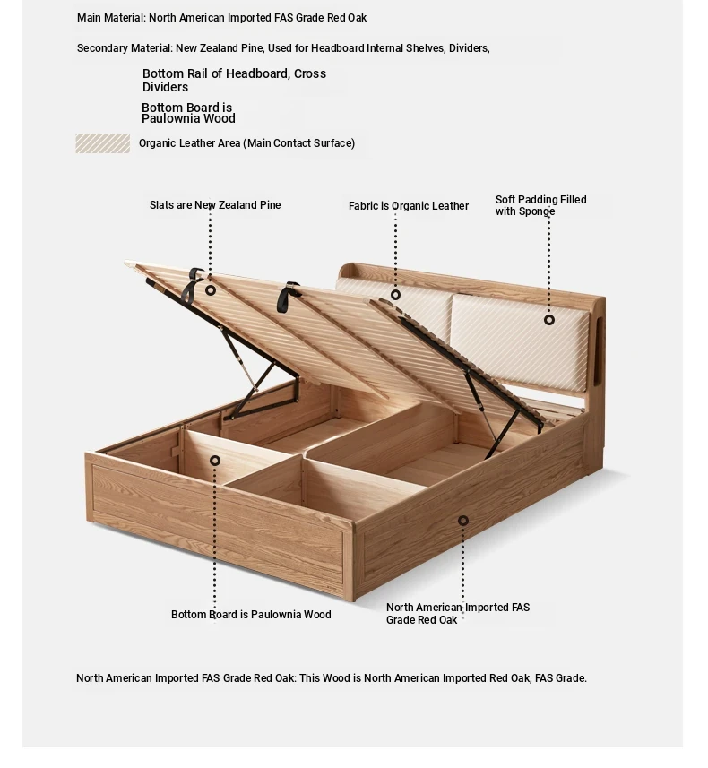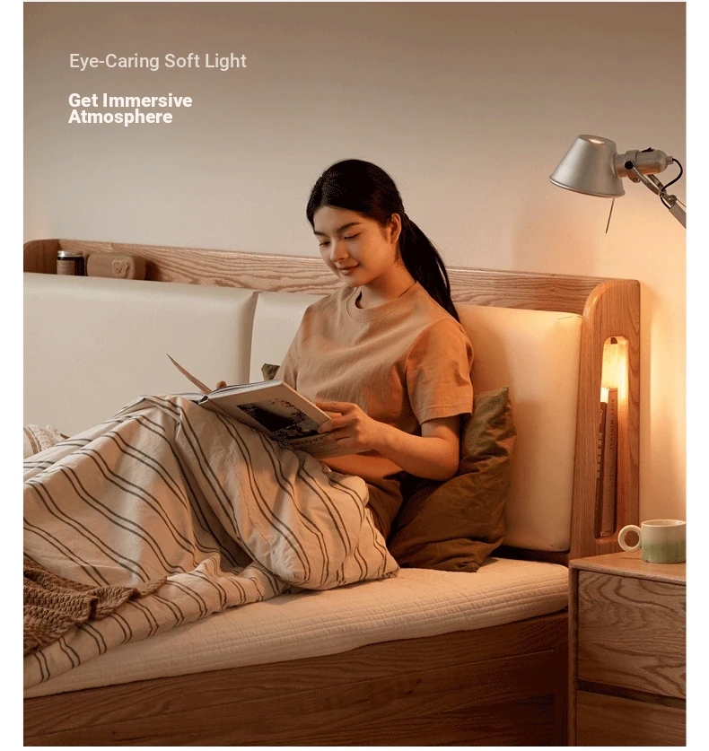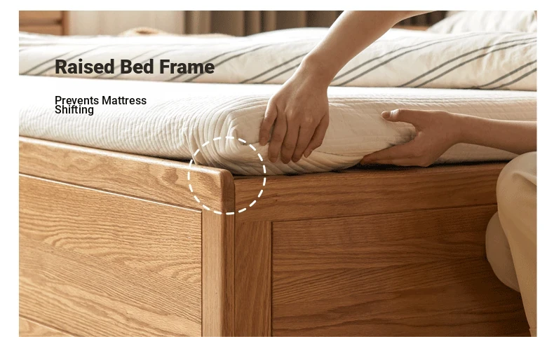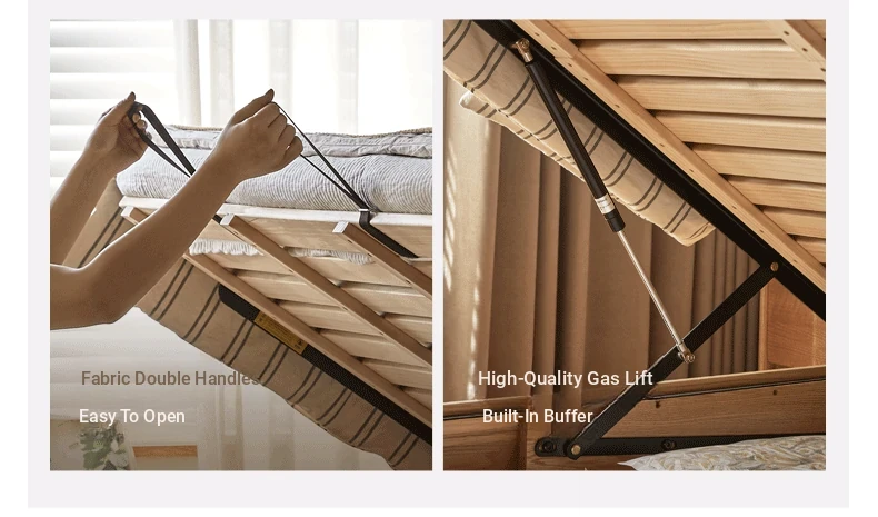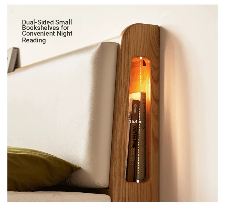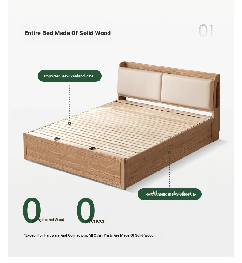 Genji Mu Yu Solid Wood Multifunctional Storage Bed with Tech Fabric Headboard – Featuring Oak Twin Bed Design for Stylish and Practical Bedroom Organization