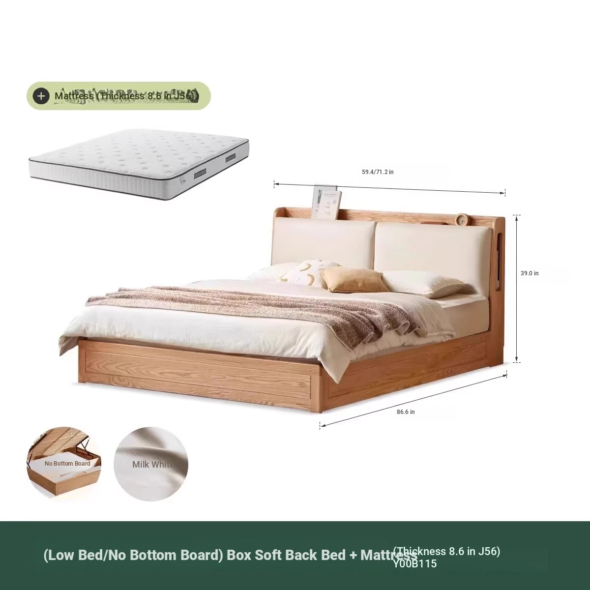 (8)(low paving-milk white-with bottom plate) box body soft bed + mattress (thick 8.66inJ56 hard H2)Y00B115