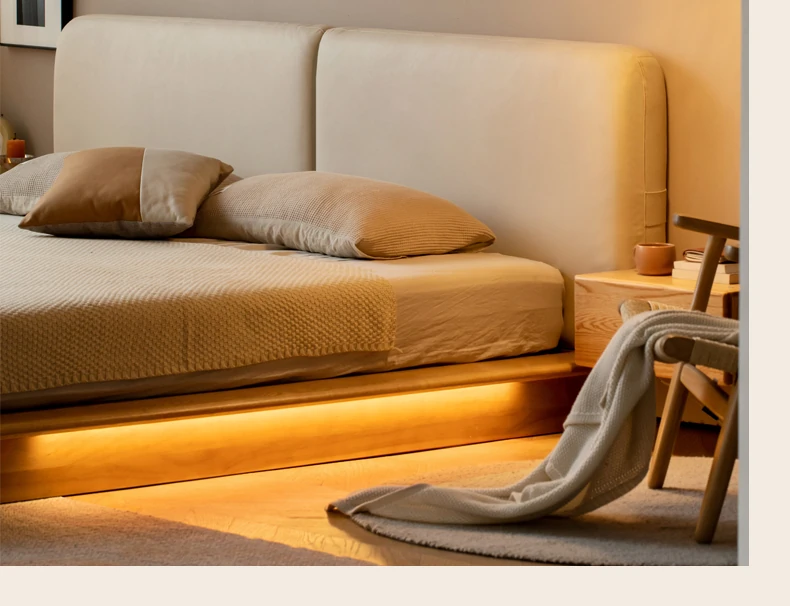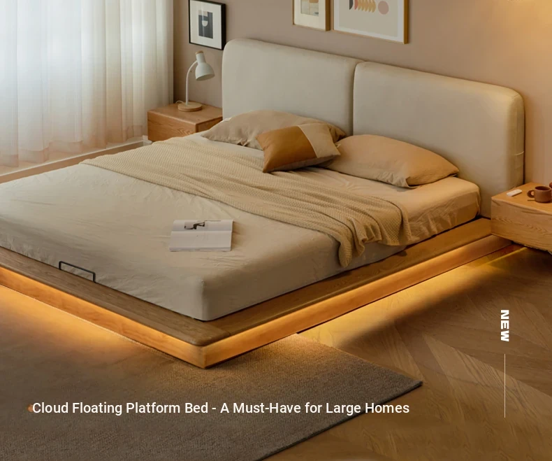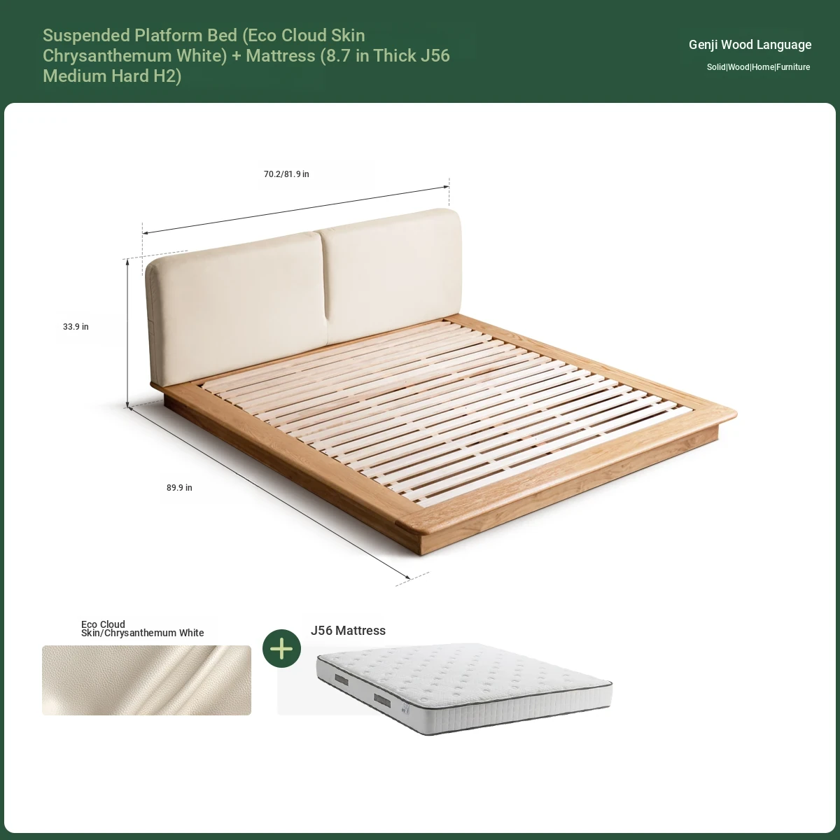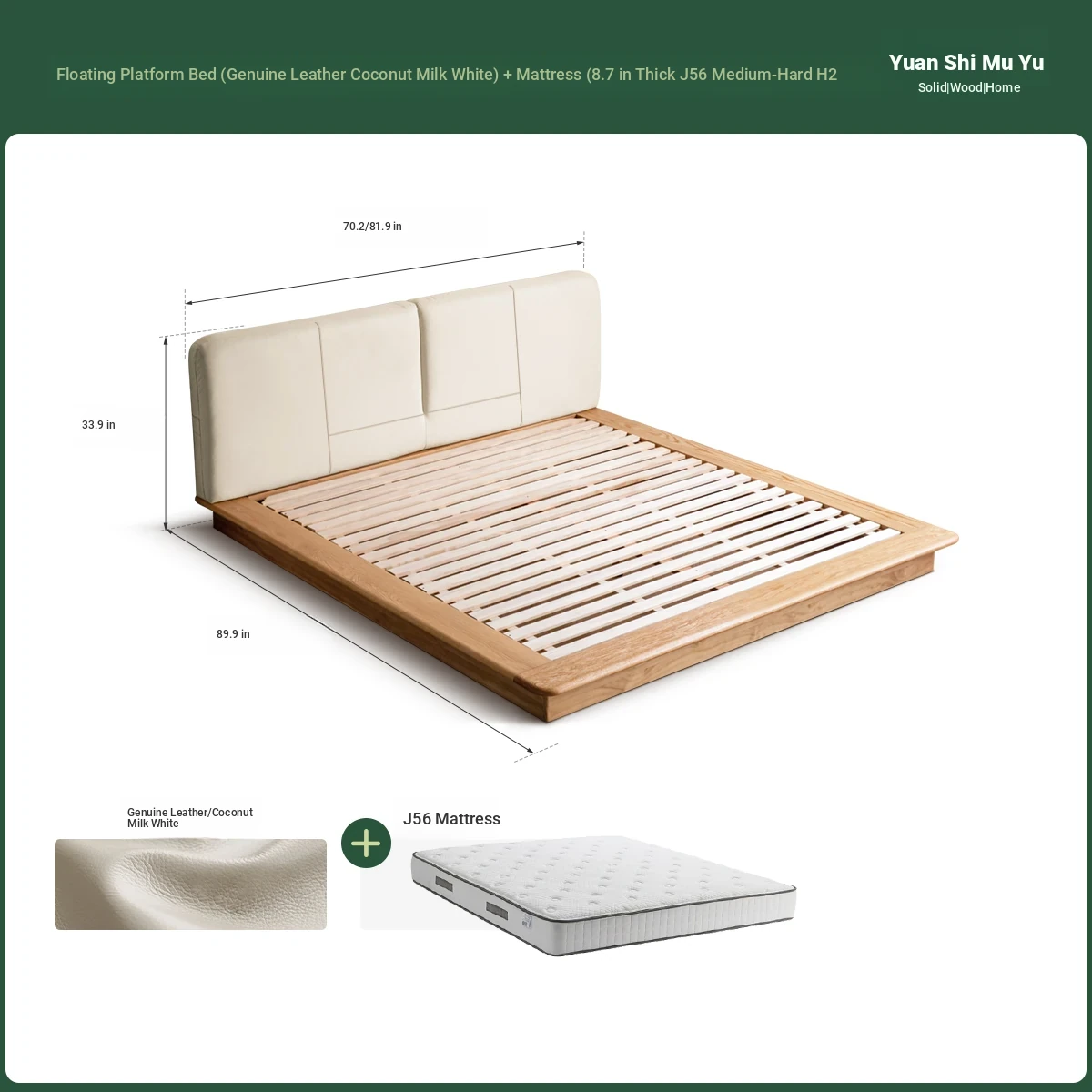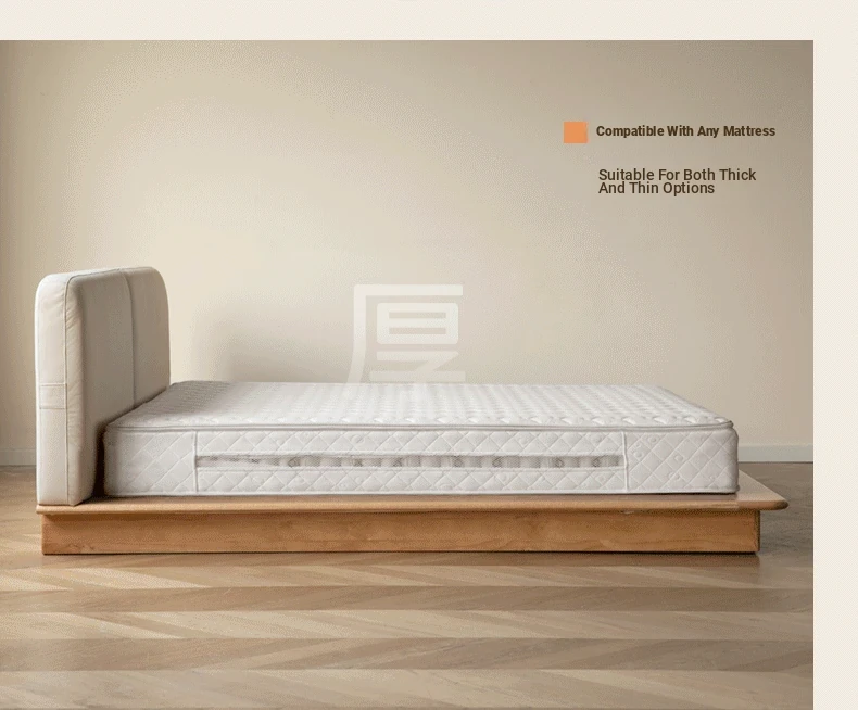 Suspended platform bed (genuine leather coconut milk white) + mattress (8.66in thick J56 hard H2)Y00B136