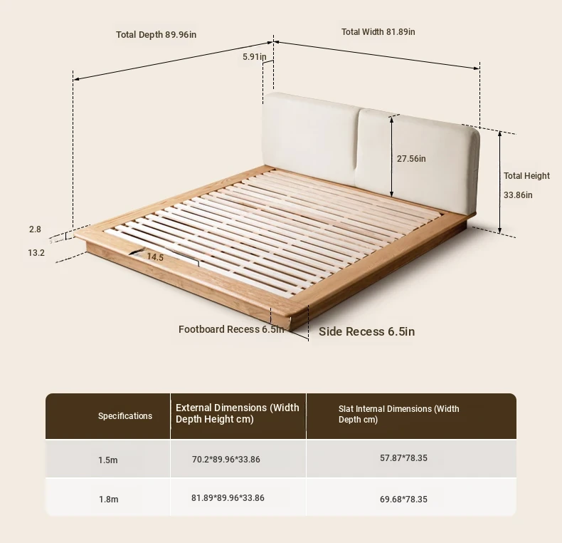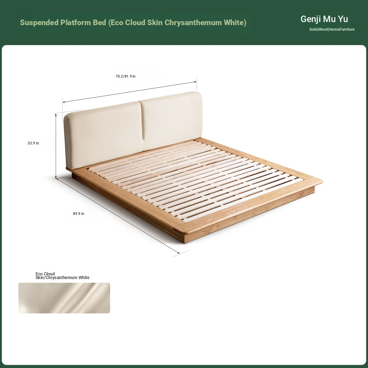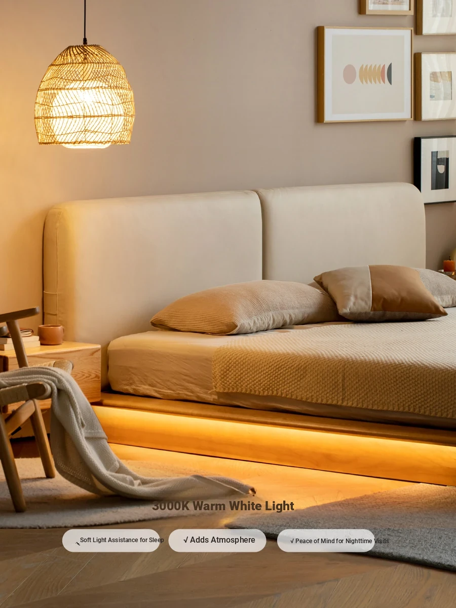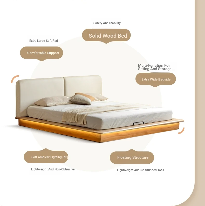 Suspended platform bed (genuine leather coconut milk white) + mattress (8.66in thick J56 hard H2)Y00B136