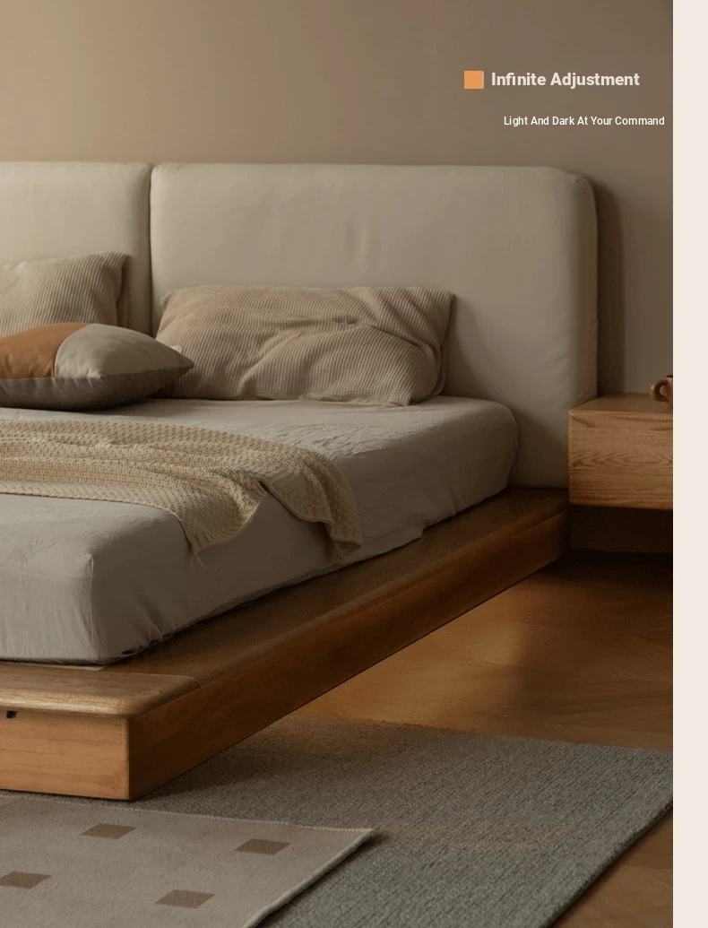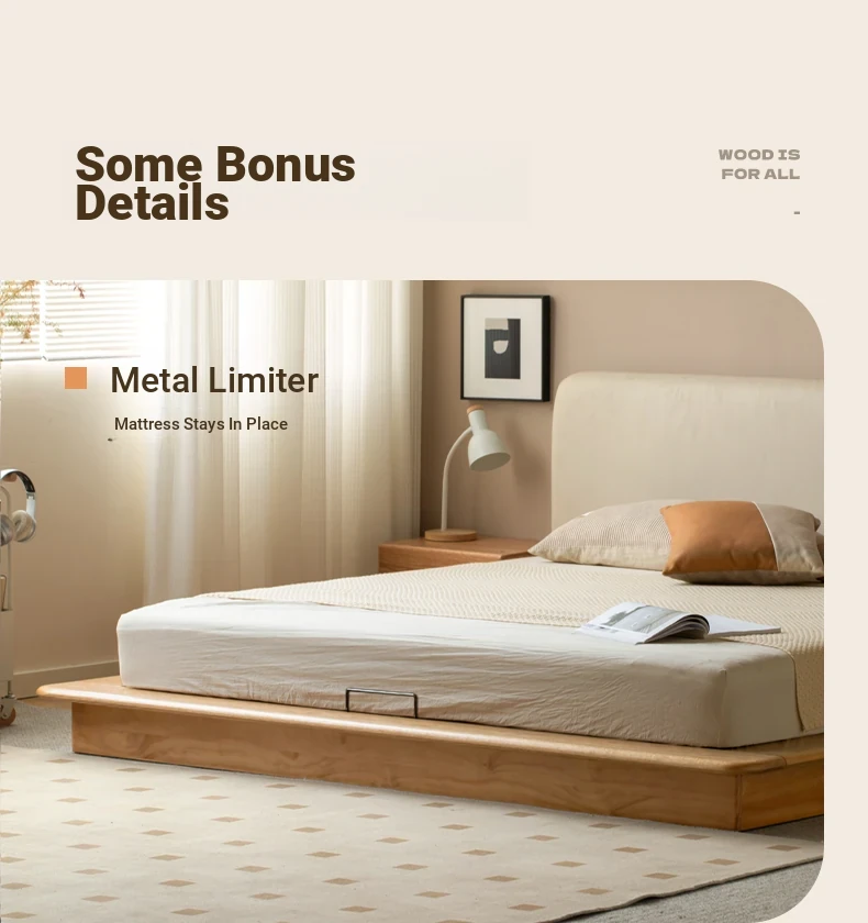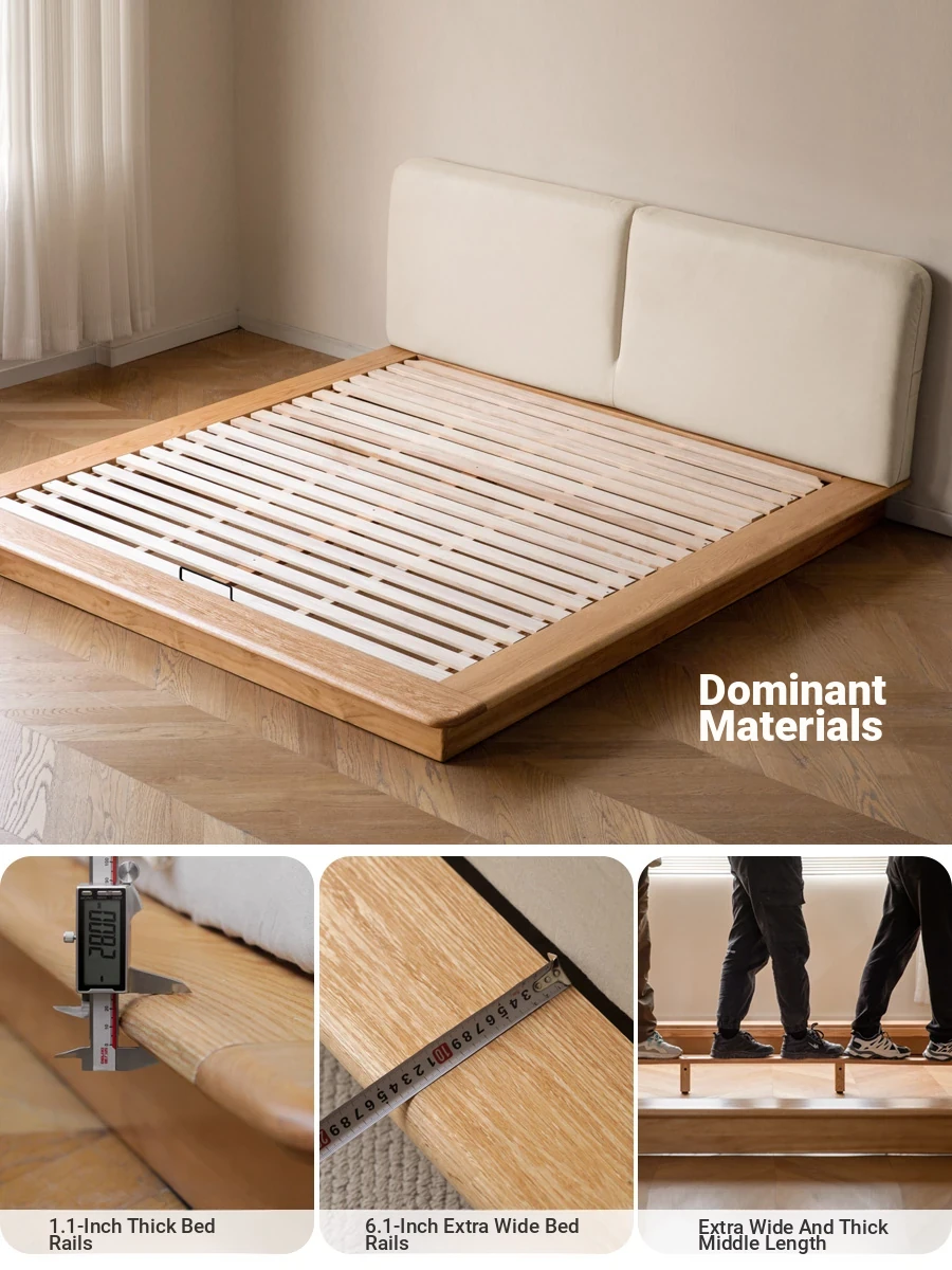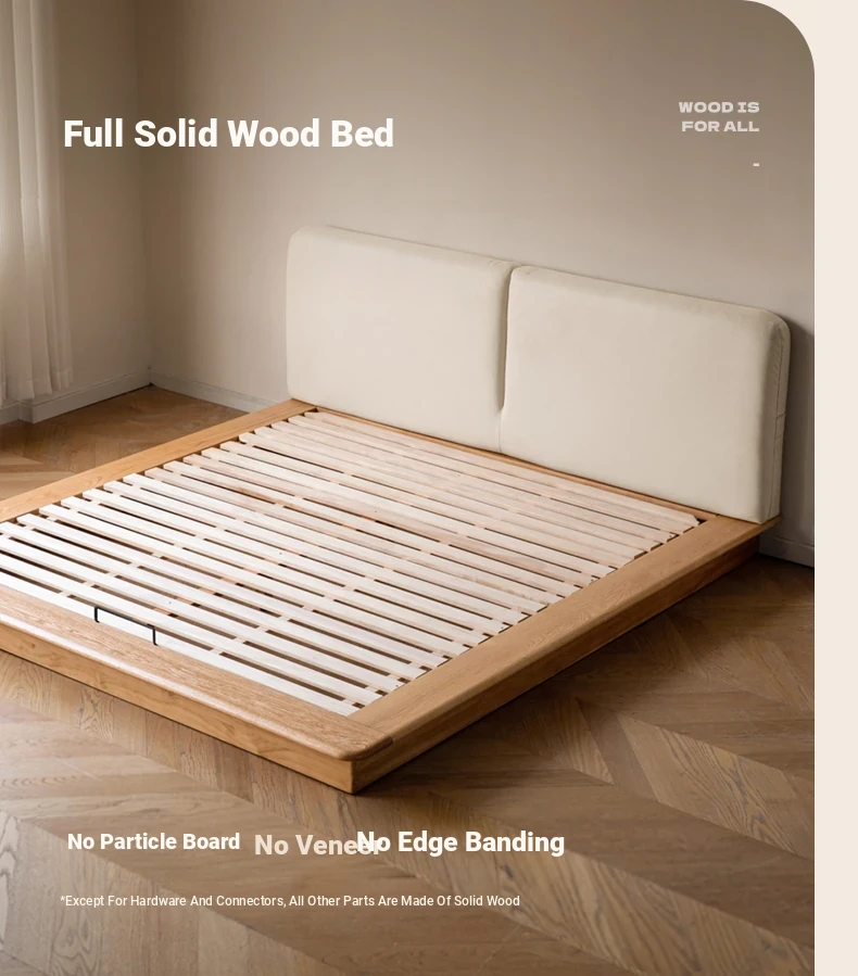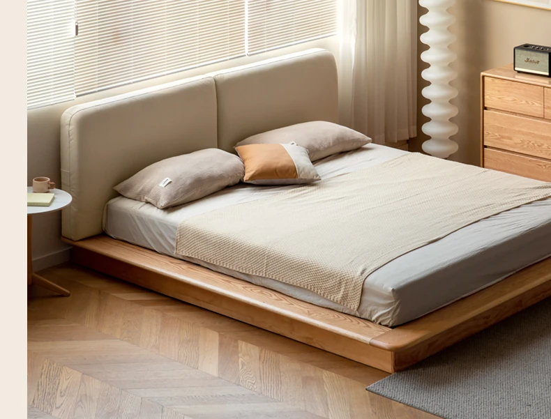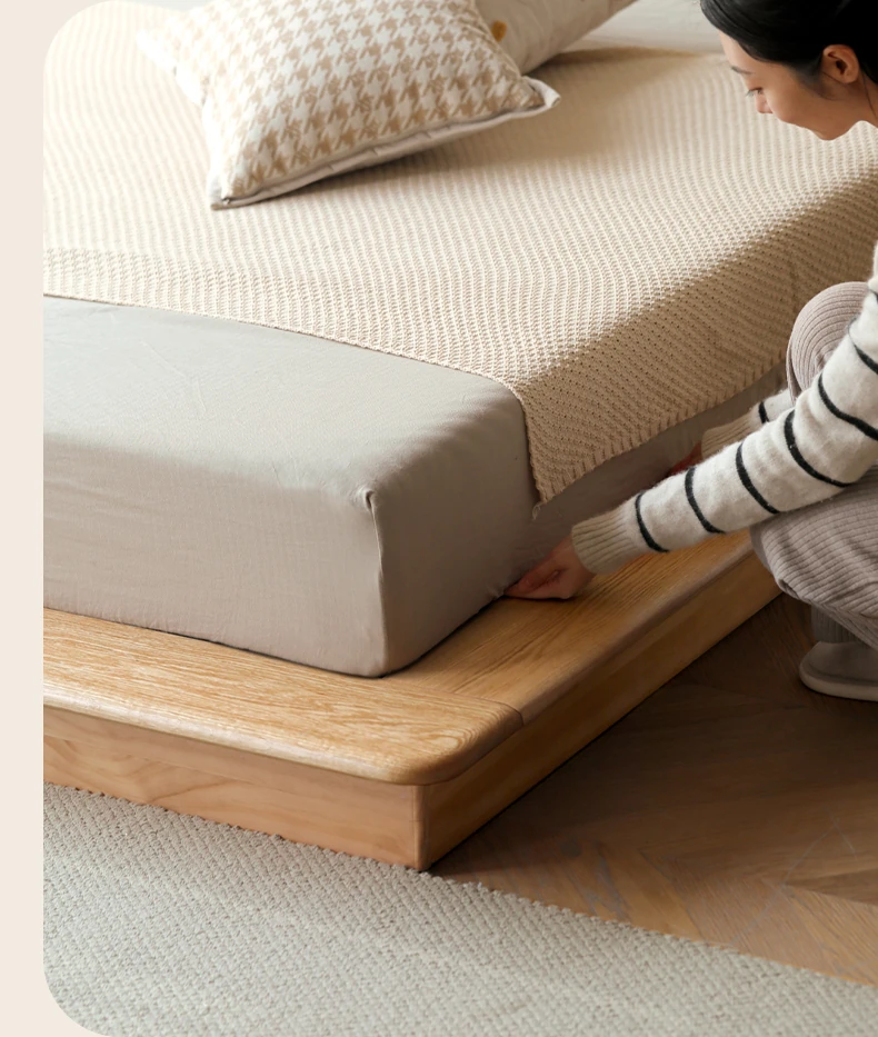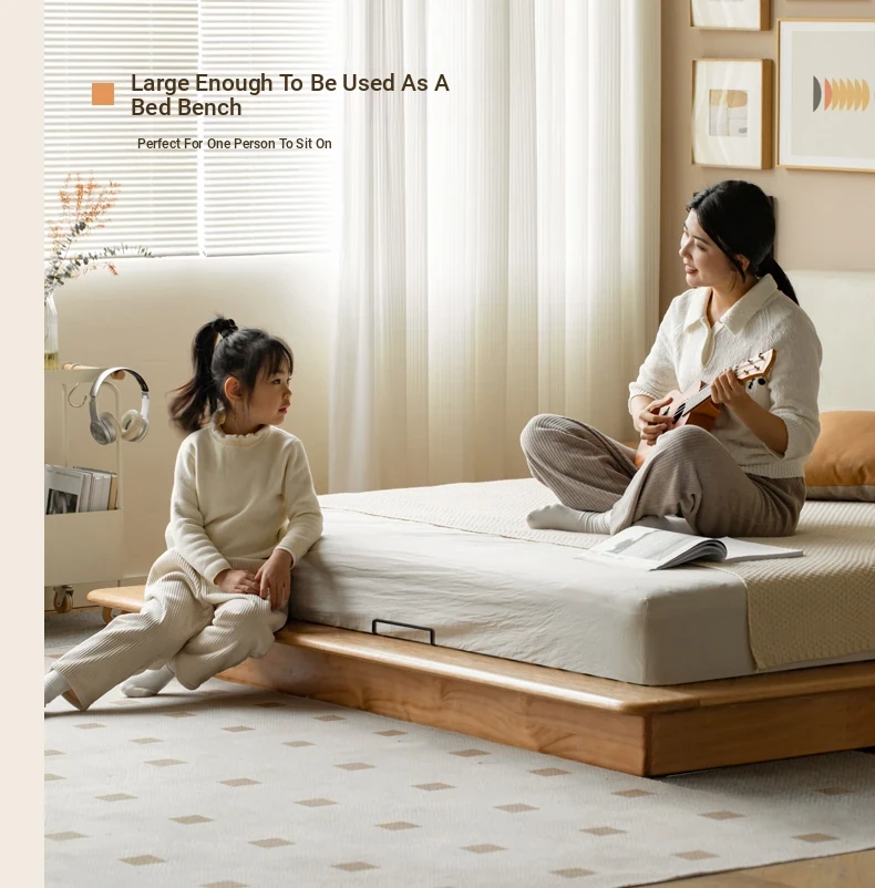 Genji Mu Yu Solid Wood Platform Bed - Japanese-Style Low Bed, Tatami Floor Bed, Minimalist Floating Bed for Couples - Spacious and Elegant Double Bed