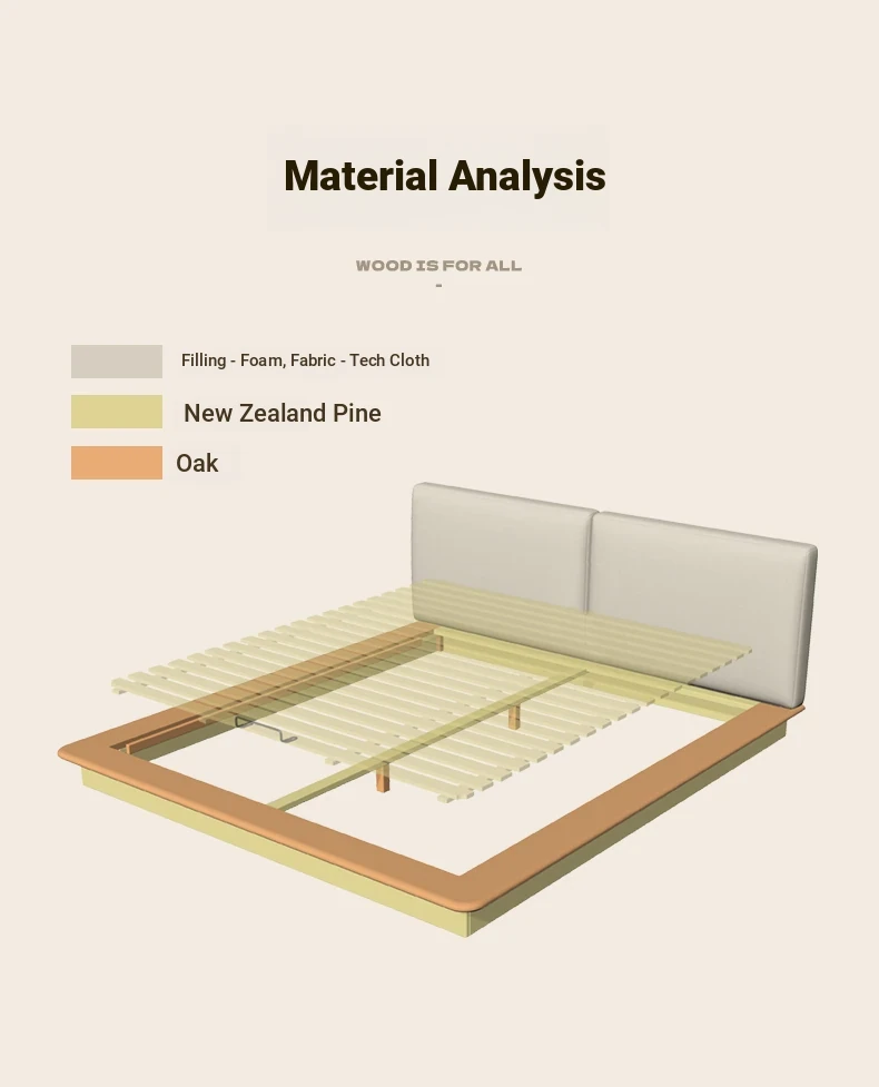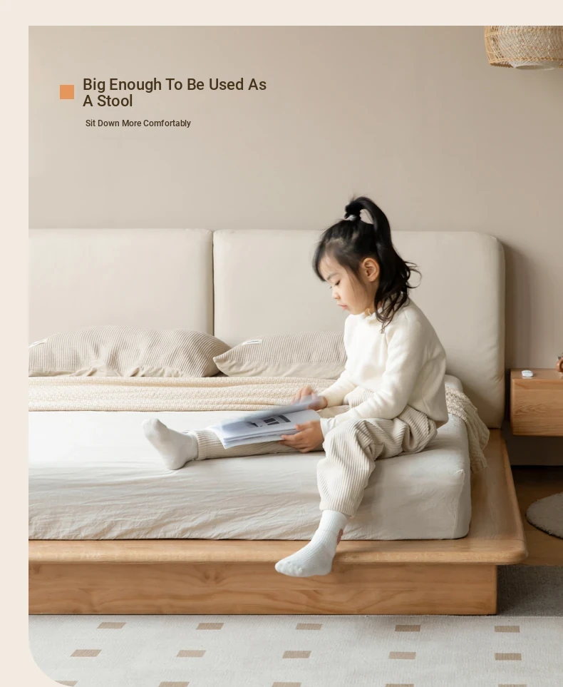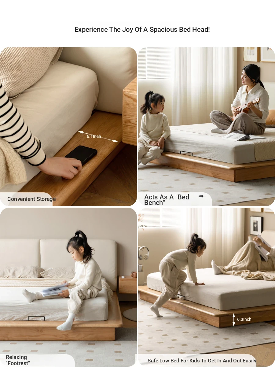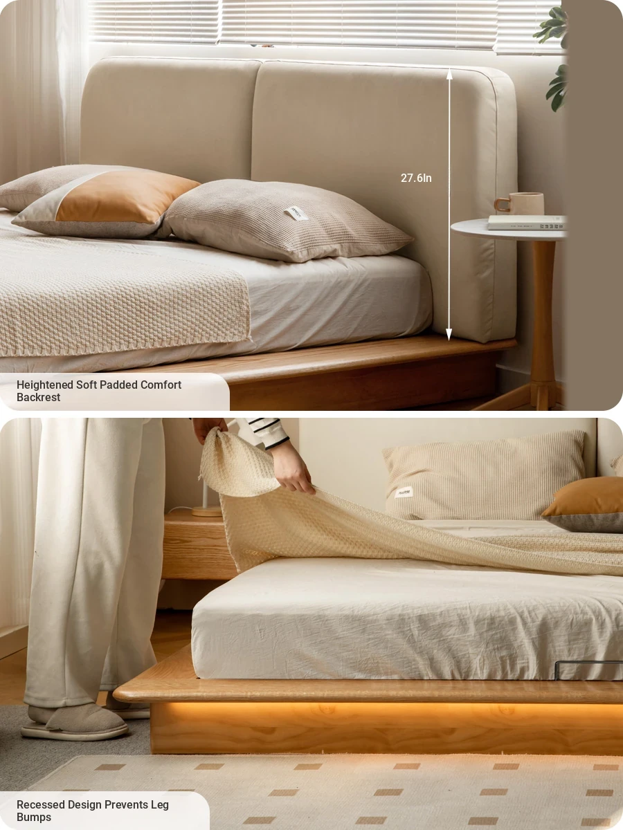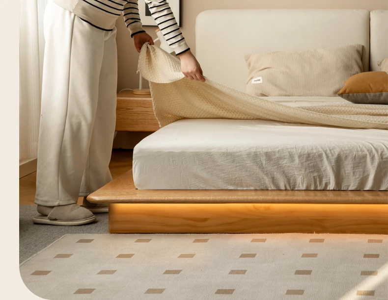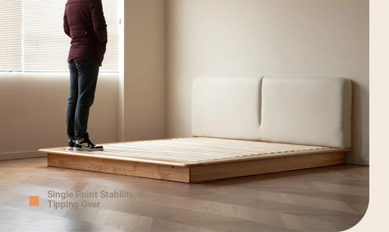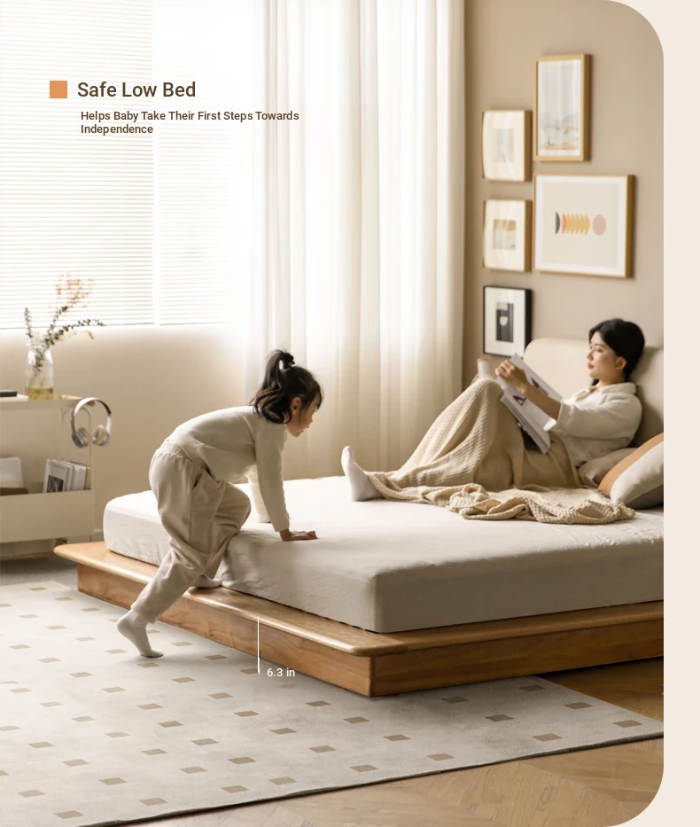 Genji Mu Yu Solid Wood Platform Bed - Japanese-Style Low Bed, Tatami Floor Bed, Minimalist Floating Bed for Couples - Spacious and Elegant Double Bed