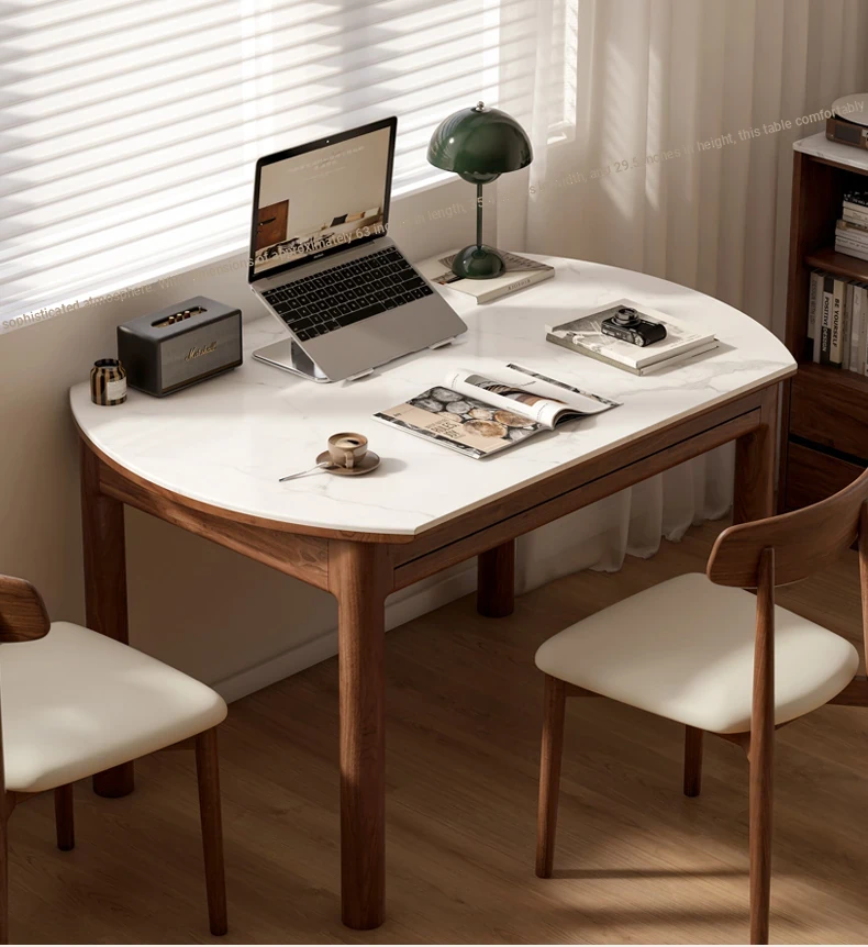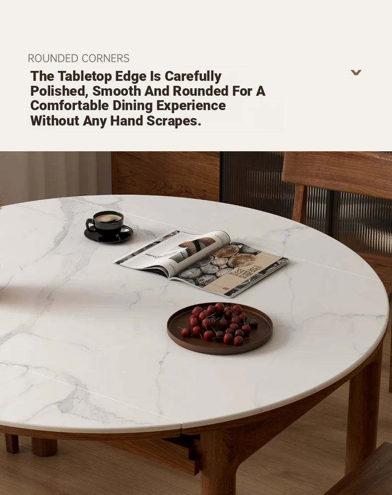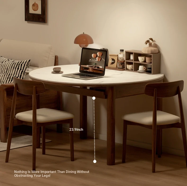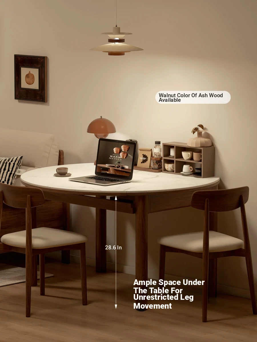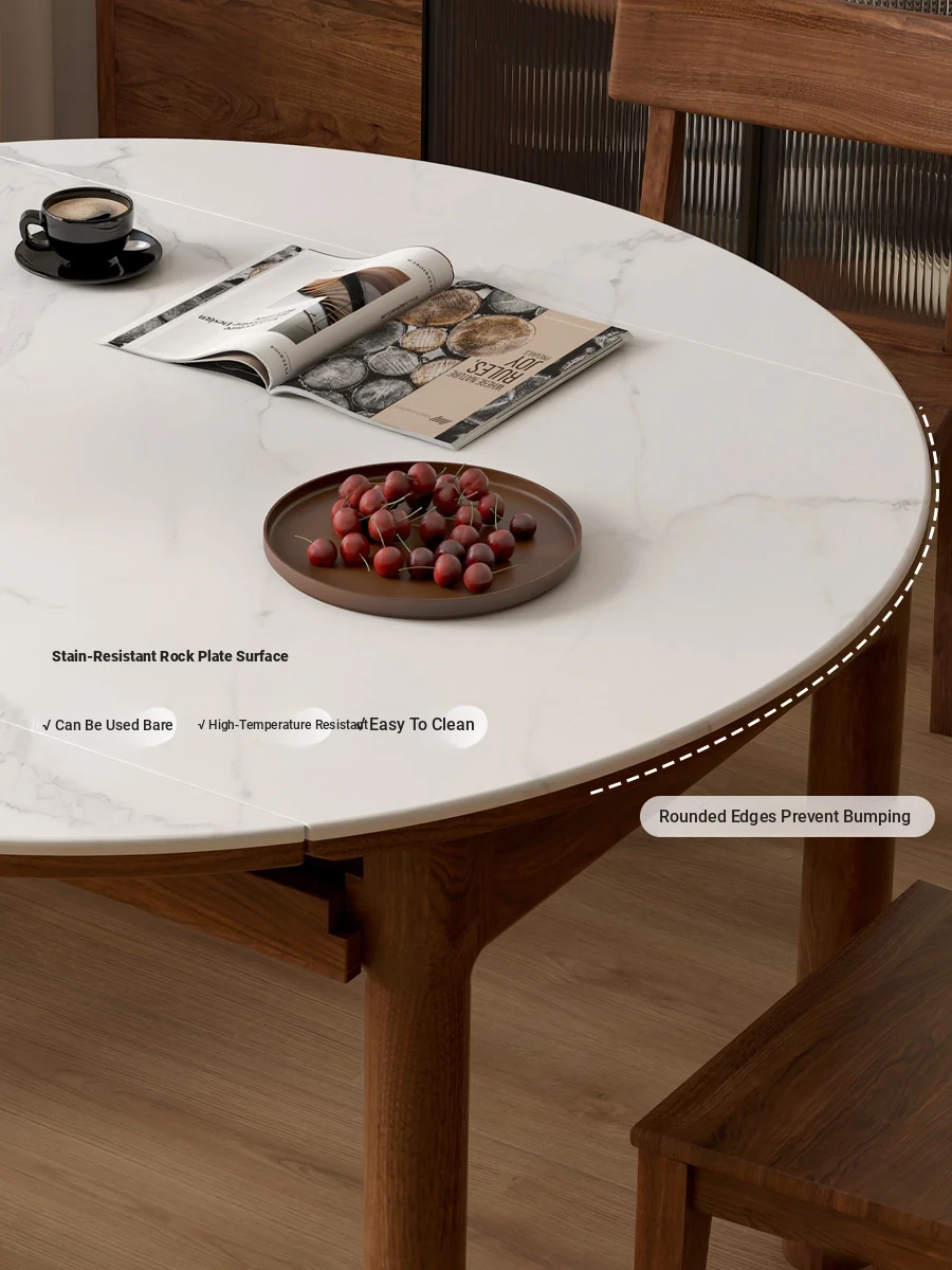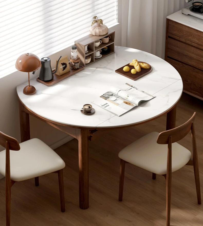 Genji Mu Yu Walnut Foldable Dining Table – Compact & Stylish Rock Slab Table for Small Spaces – Perfect for Home Dining and Restaurants, Easily Extensible for Versatile Use