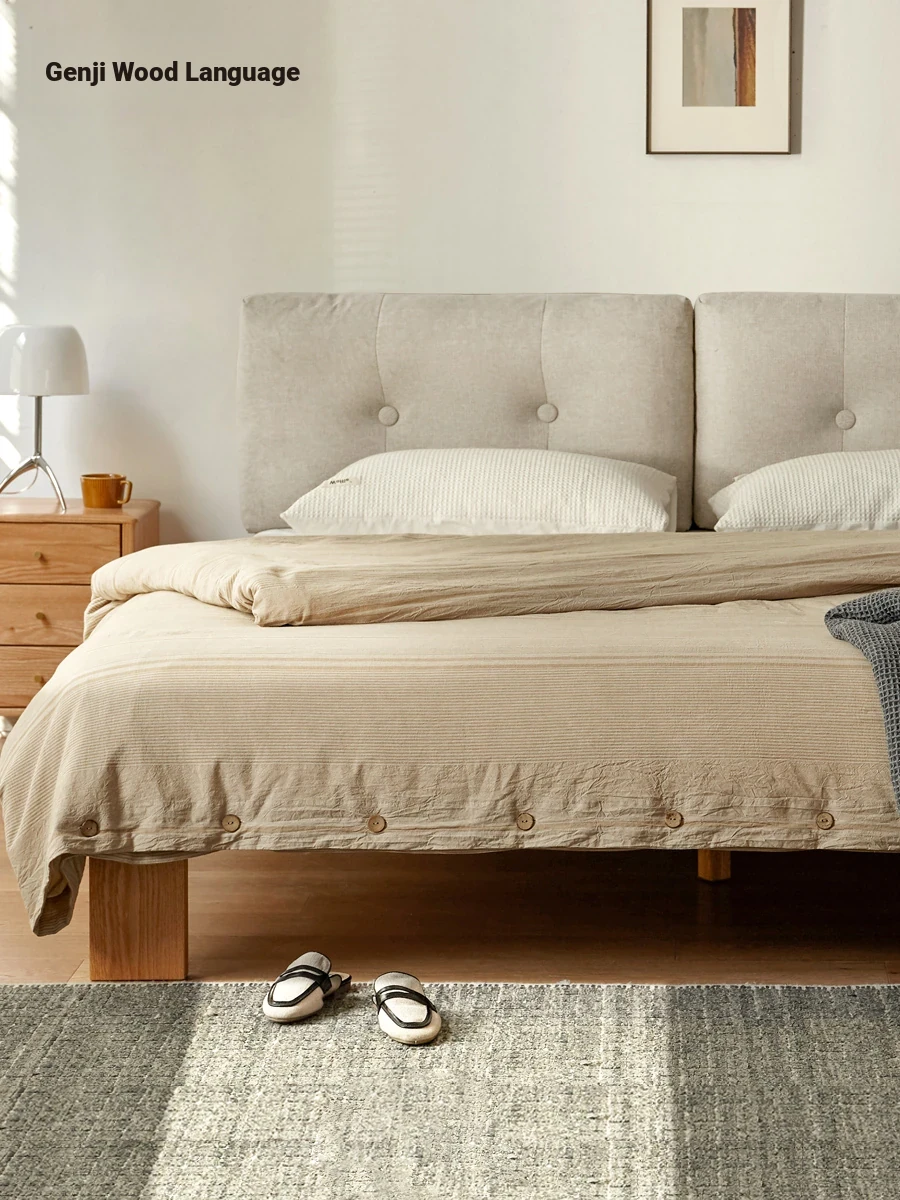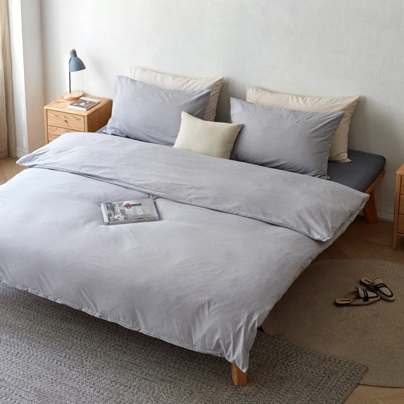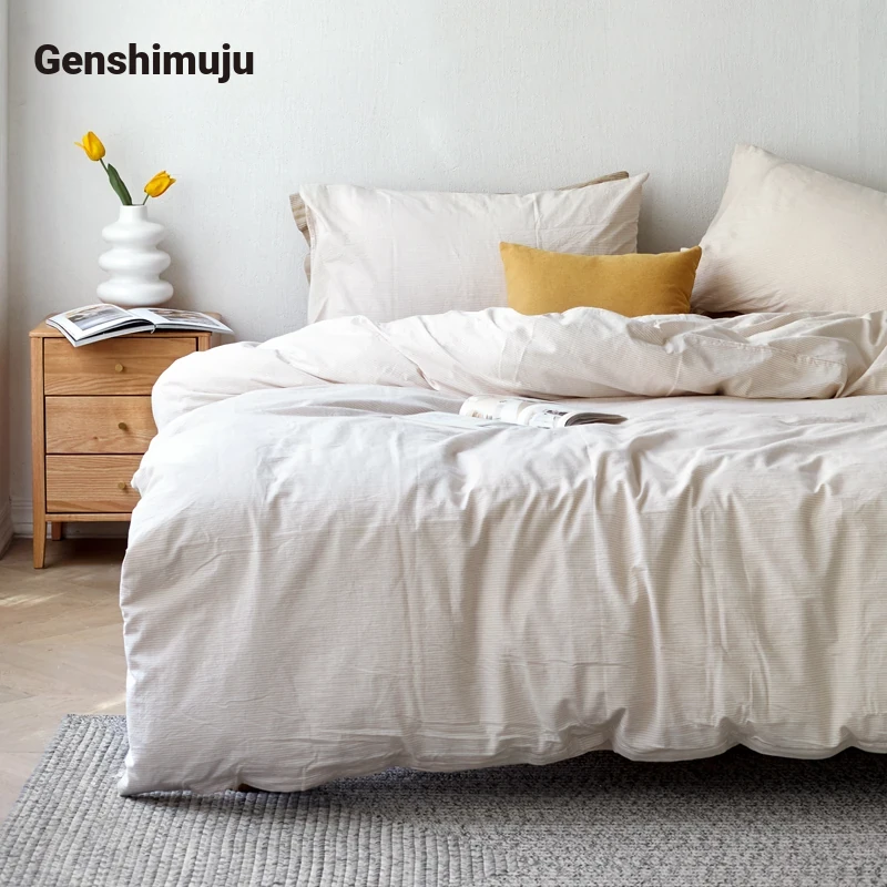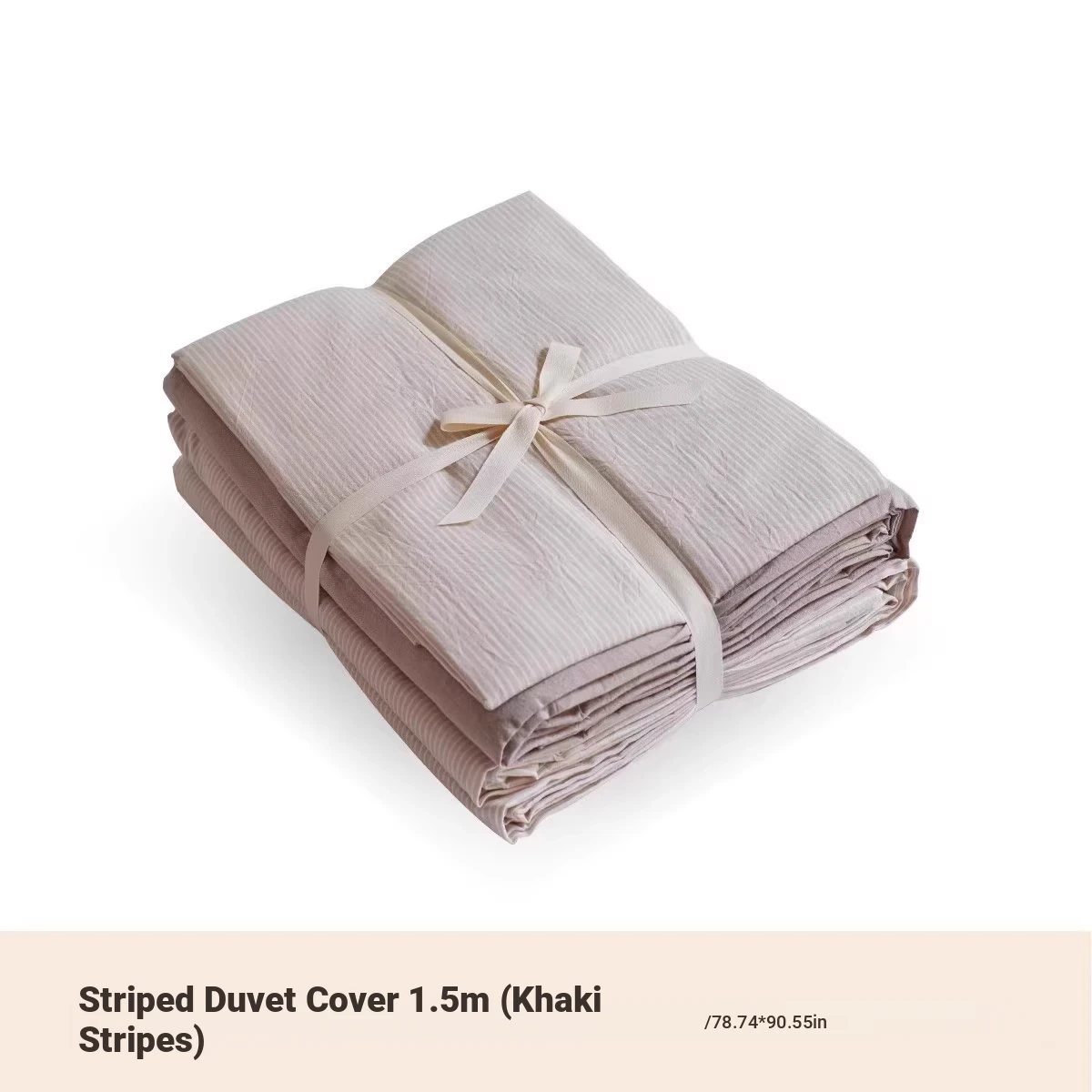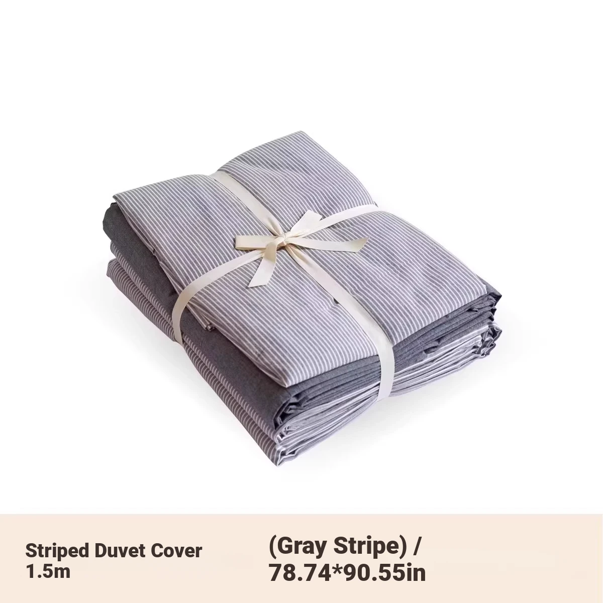 Genji Muyu Pure Cotton Duvet Cover - Minimalist Striped Design for Double Beds (1.5m/1.8m) - Perfect Bedding for Spring and Autumn - Elevate Your Bedroom with Style and Comfort!