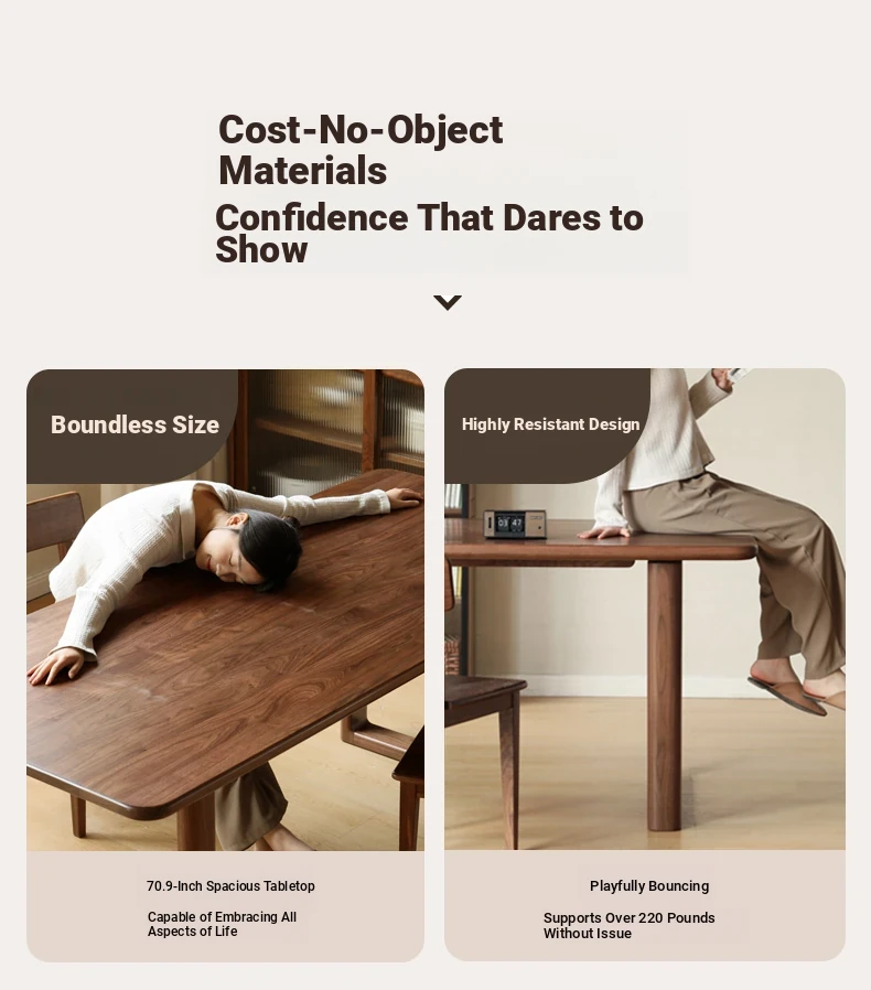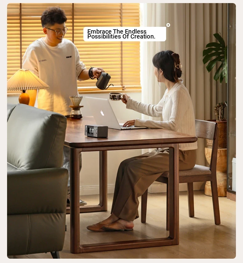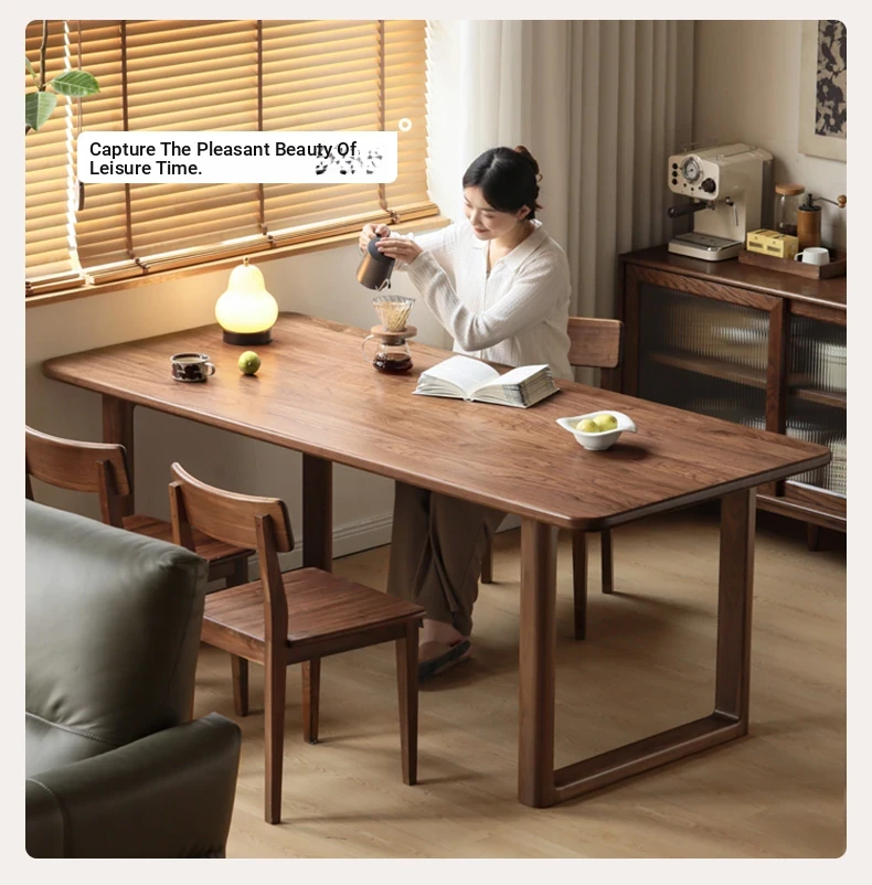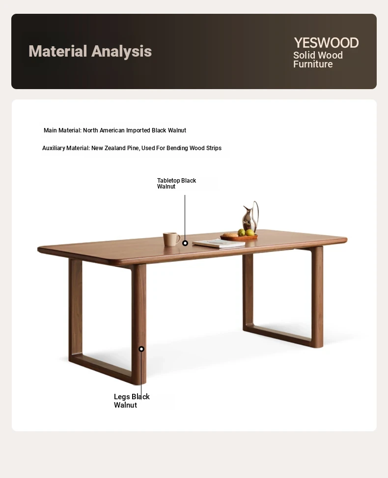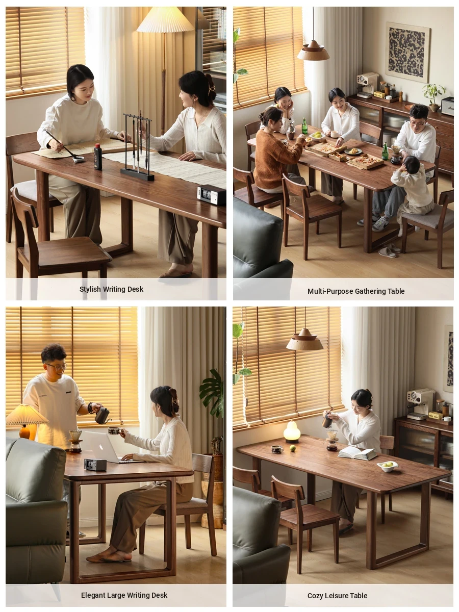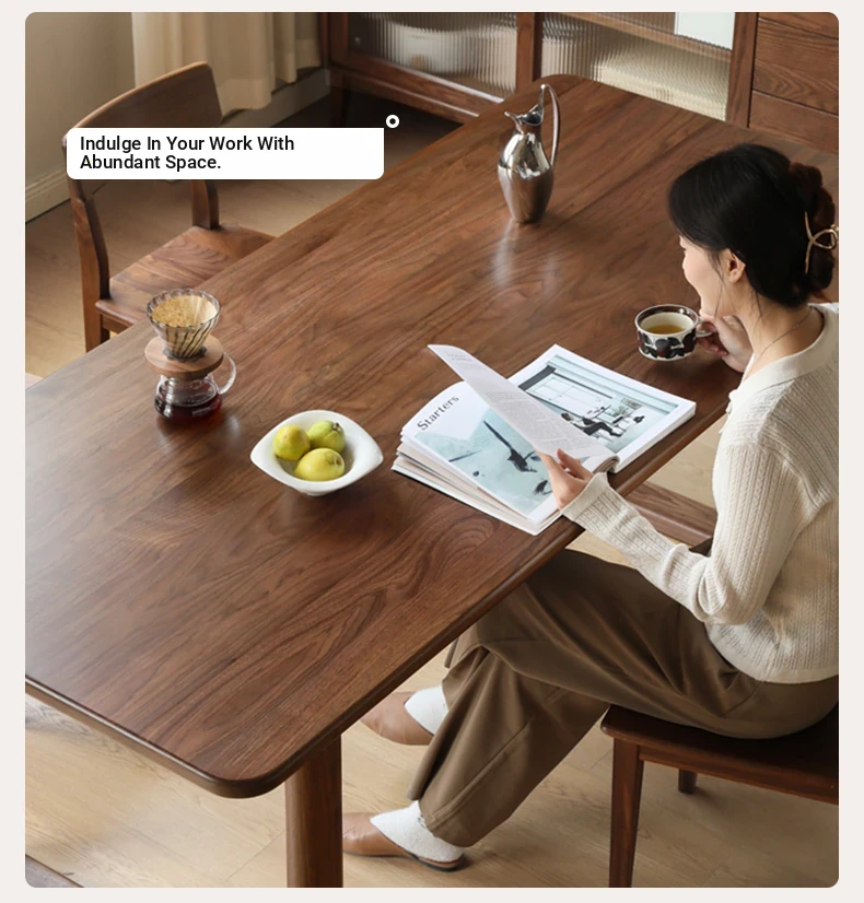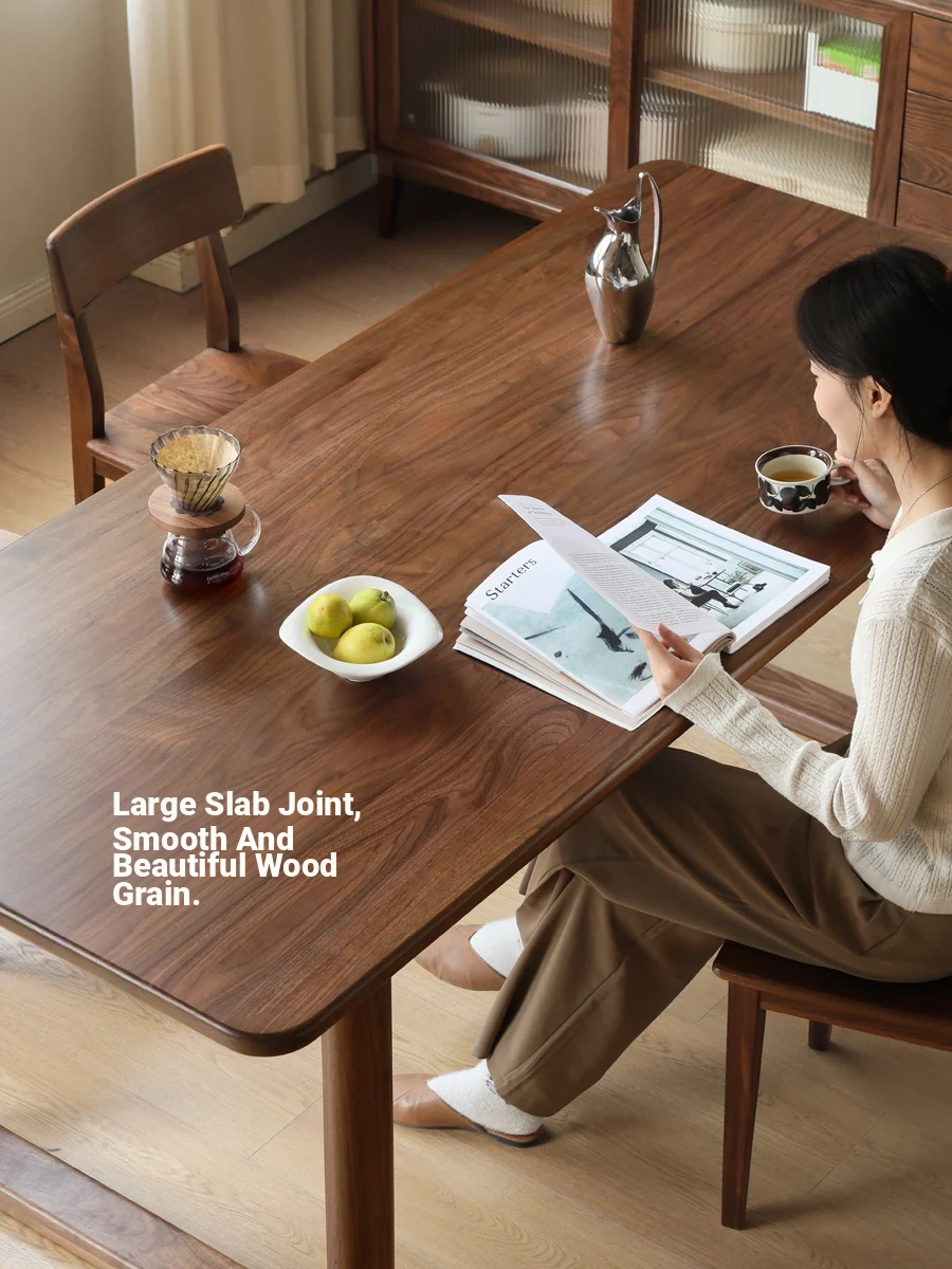 Genji MuYu Solid Wood Large Dining Table - Black Walnut Dining Table for Home, Perfect for Meals and Wall-Mounted Office Use - Elegant and Durable Craftsmanship