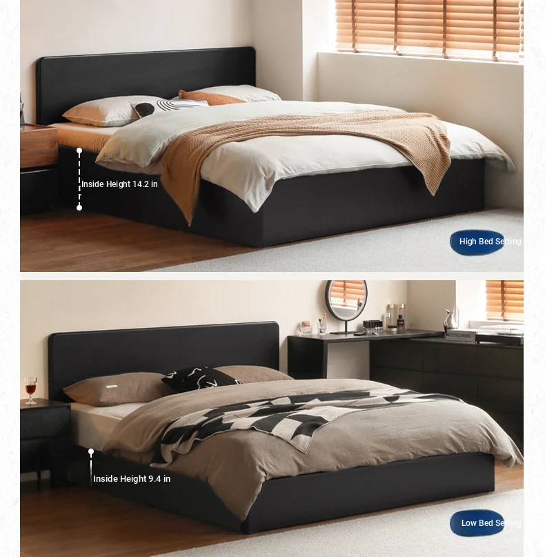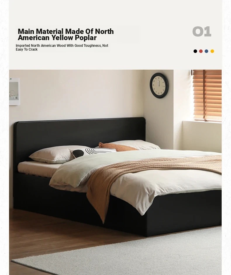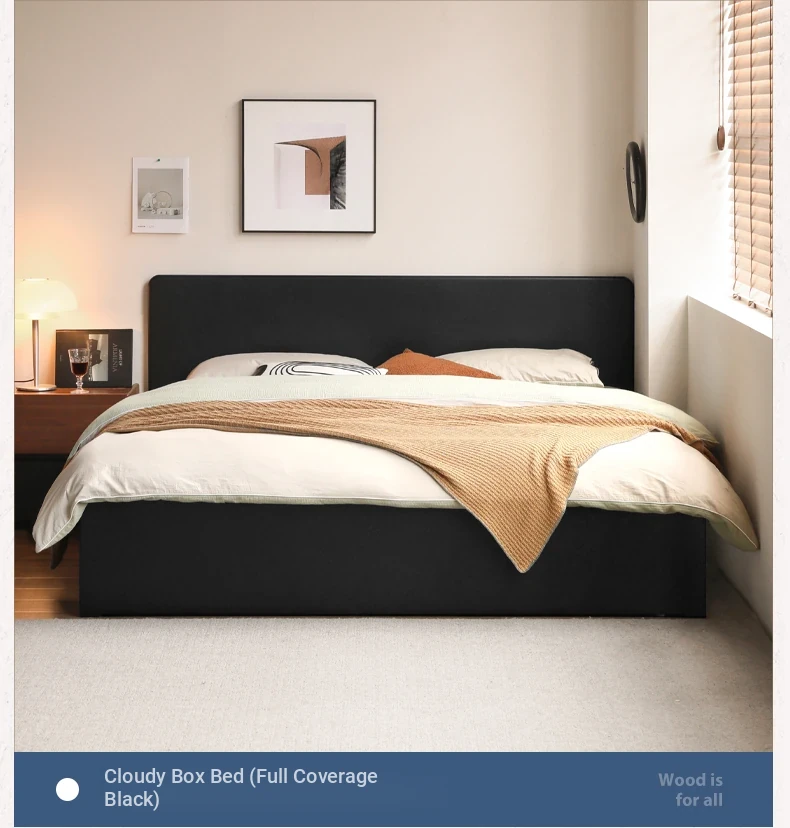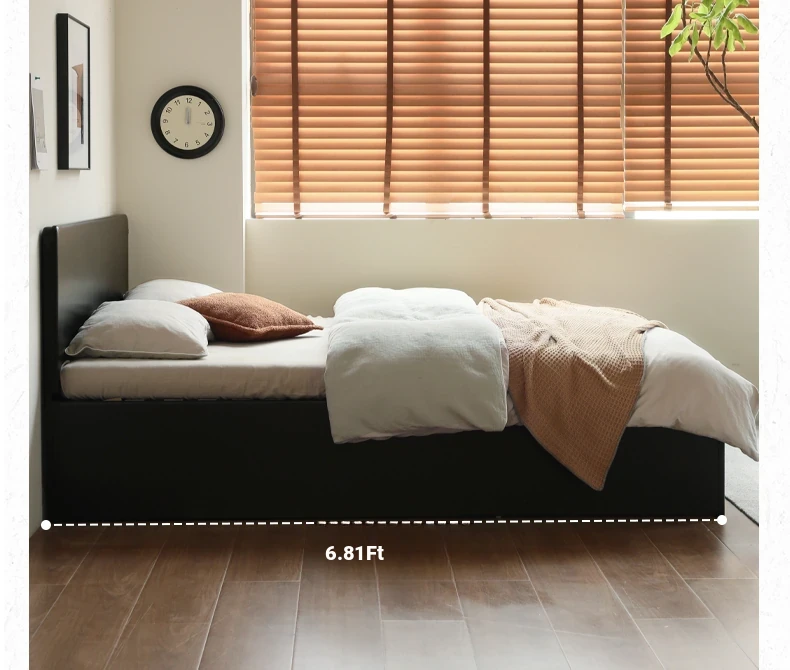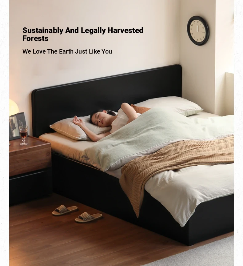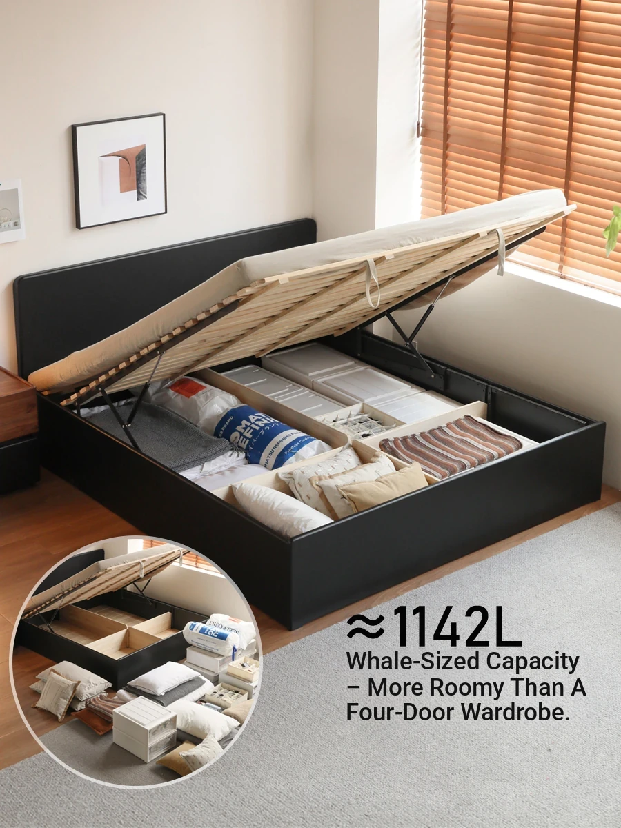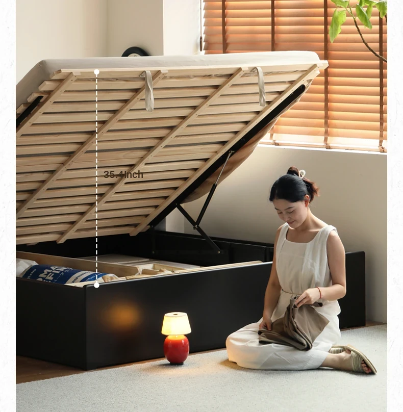 Genji Wood Minimalist Solid Wood Storage Bed - Stylish Black Full-Opening High Box Design for Small Spaces - Perfect Bedroom Furniture for Compact Homes