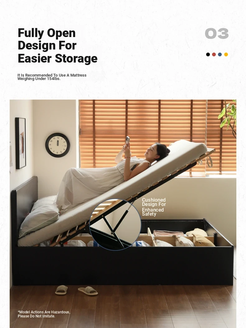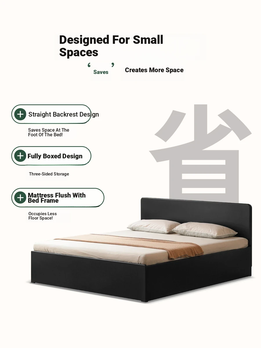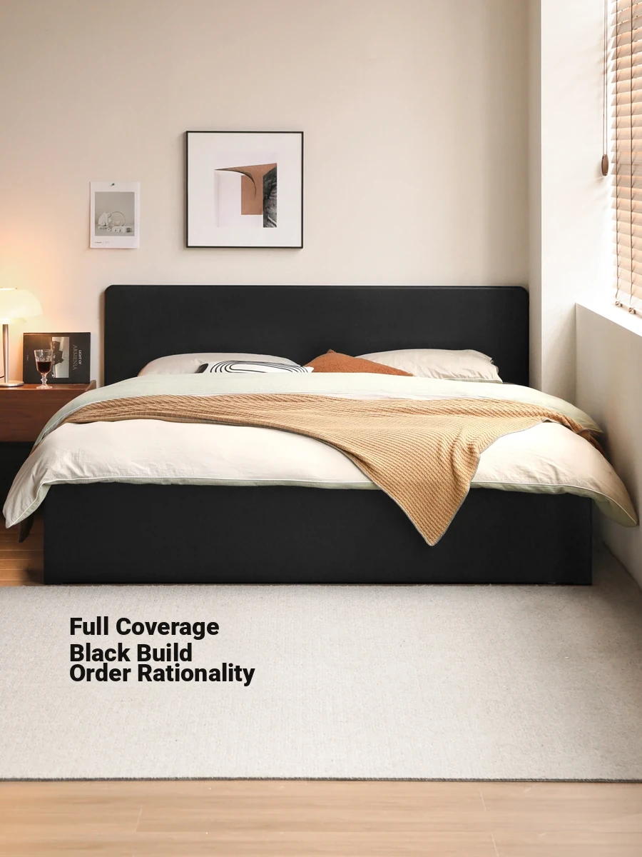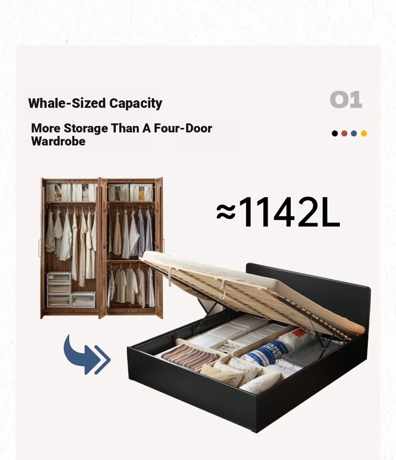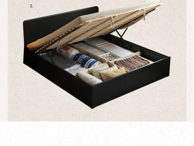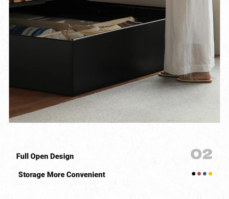 Genji Wood Minimalist Solid Wood Storage Bed - Stylish Black Full-Opening High Box Design for Small Spaces - Perfect Bedroom Furniture for Compact Homes