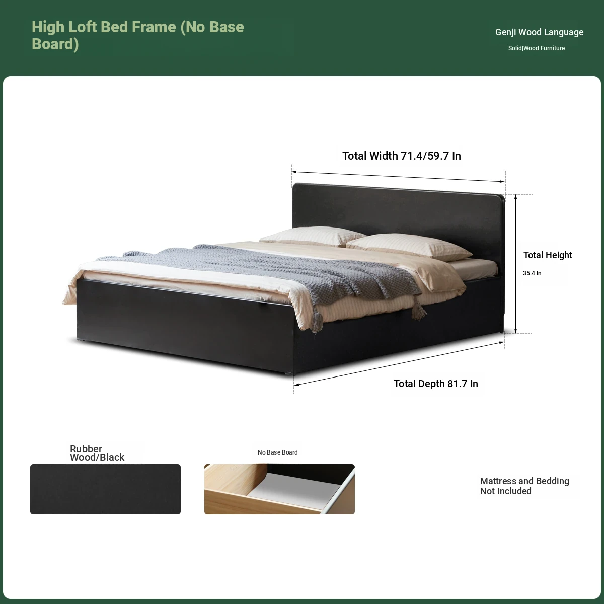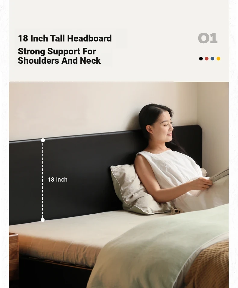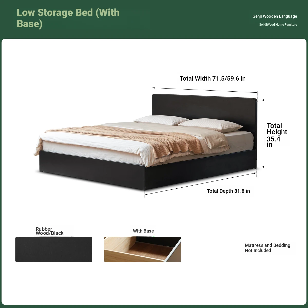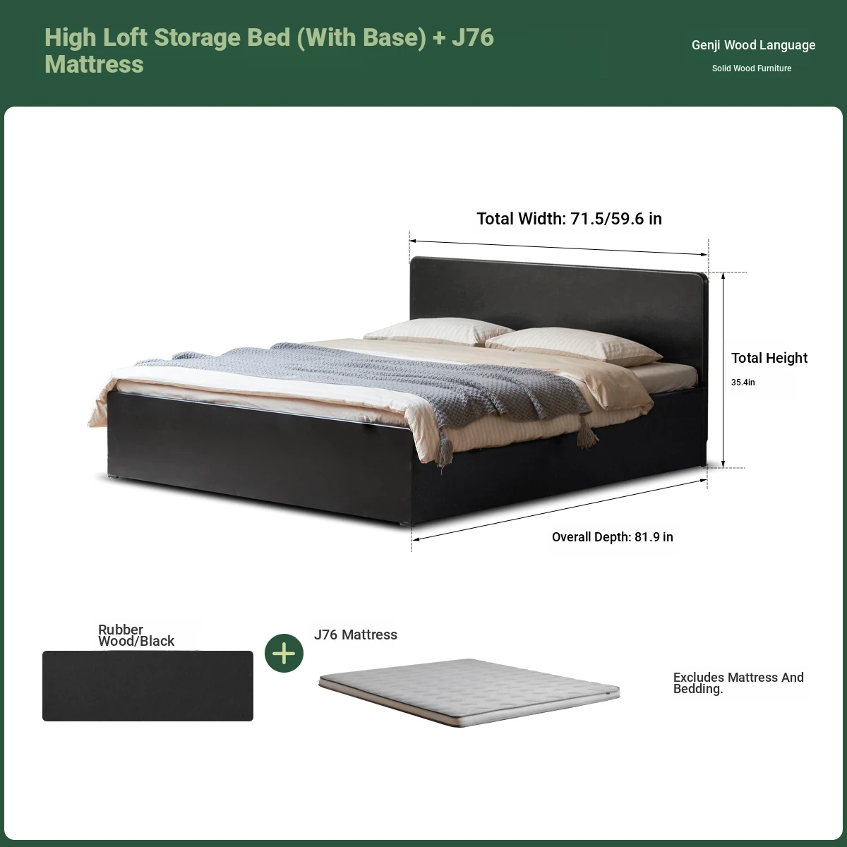 Genji Wood Minimalist Solid Wood Storage Bed - Stylish Black Full-Opening High Box Design for Small Spaces - Perfect Bedroom Furniture for Compact Homes