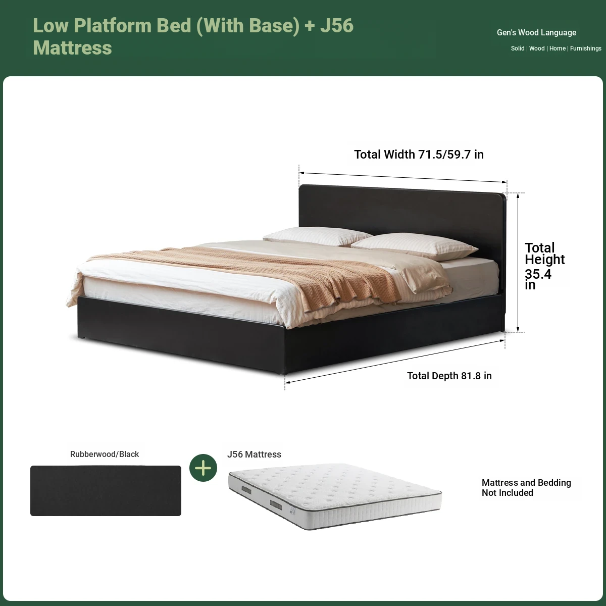 (15)(rubber wood-low paving-no floor) box bed + mattress (8.66in thick J56 hard H2)X308B04