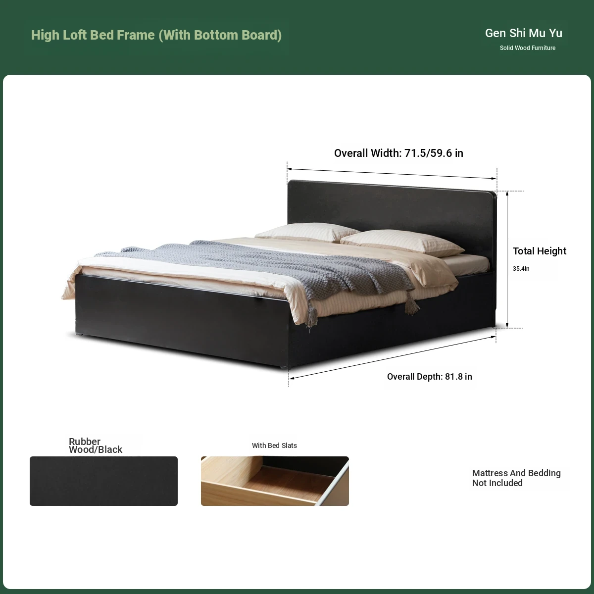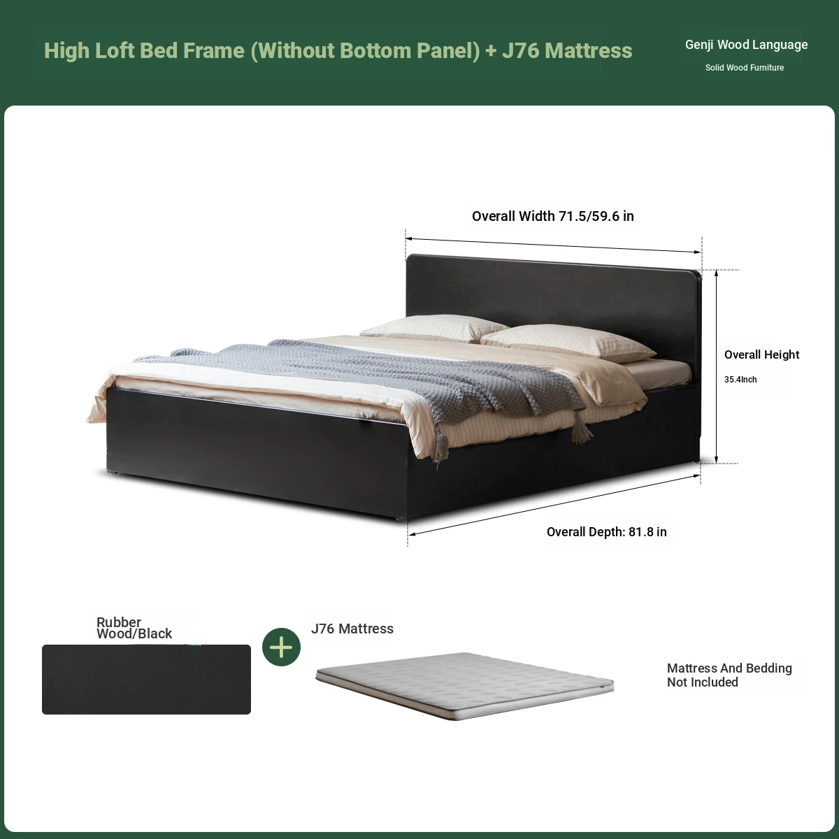(13)(rubber wood-high paving-bottom plate) box bed + mattress (3.15in thick J76 hard H2)X308B03