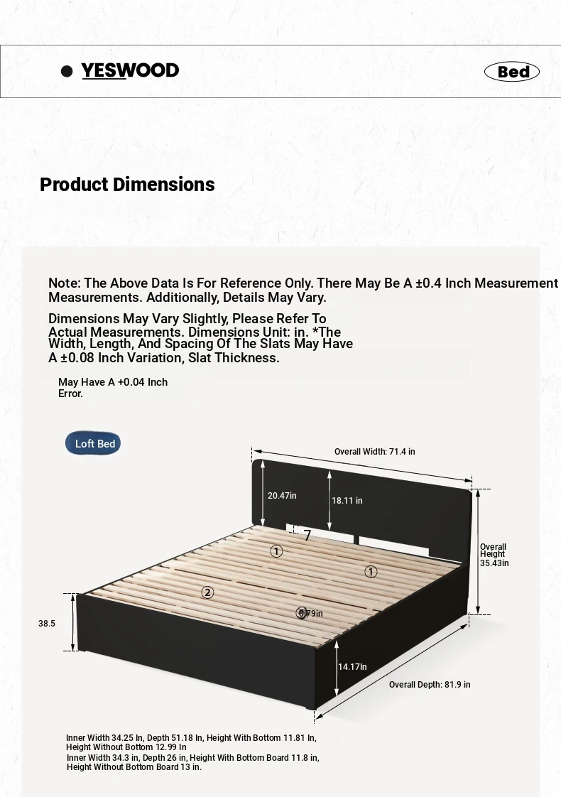 (5)(Liriodendron chinense-high paving-no floor) box bed + mattress (3.15in thick J76 hard H2)X271B03