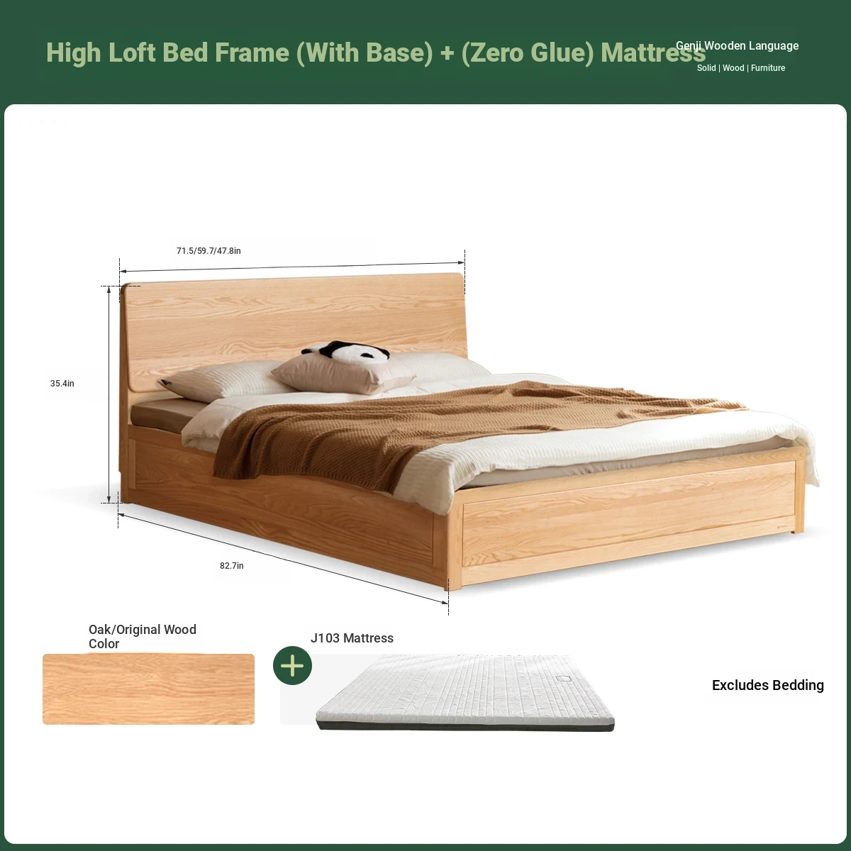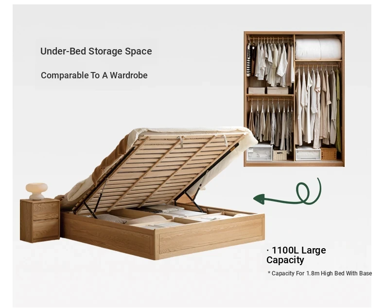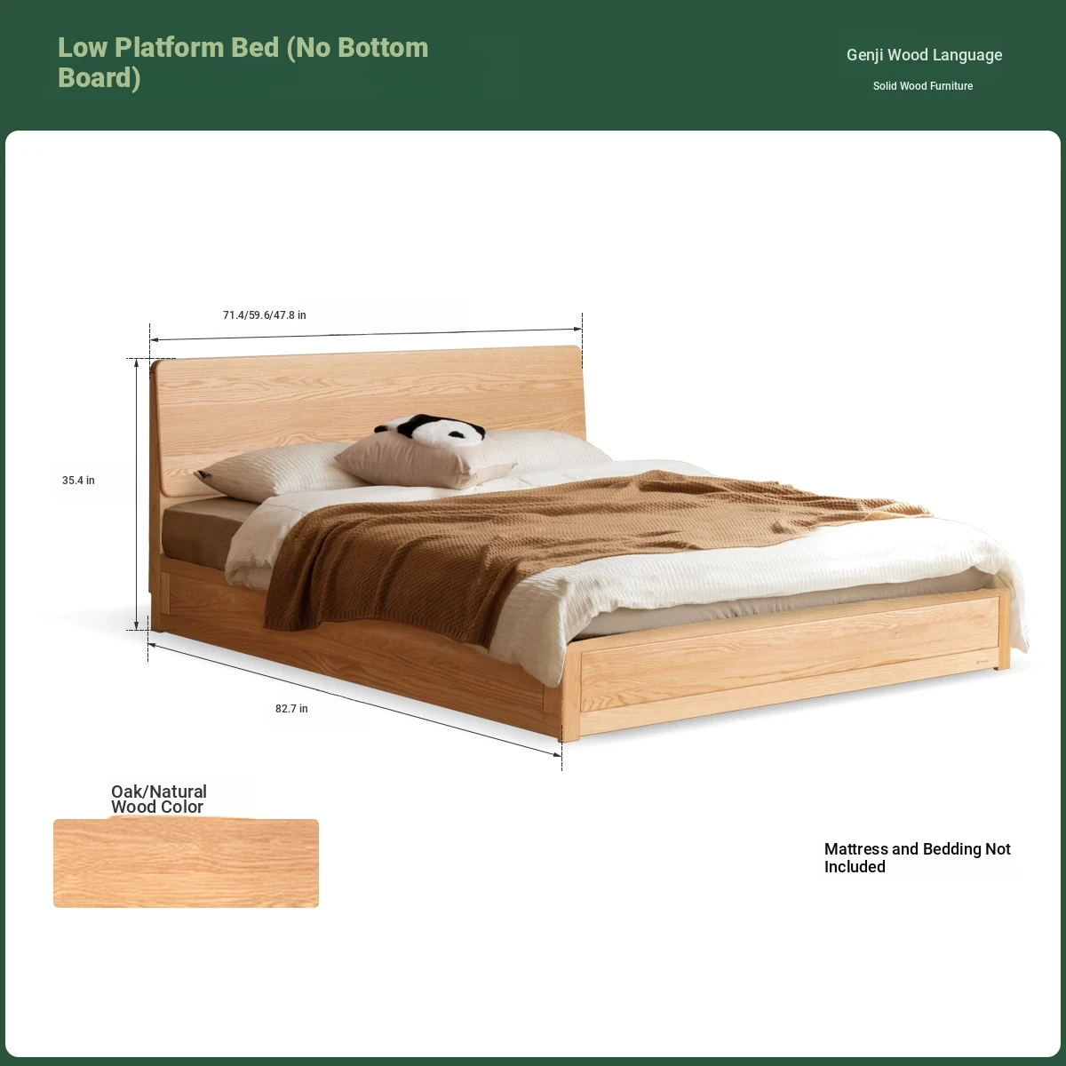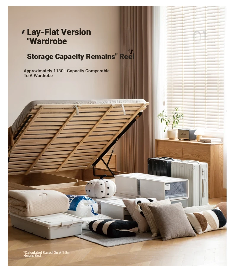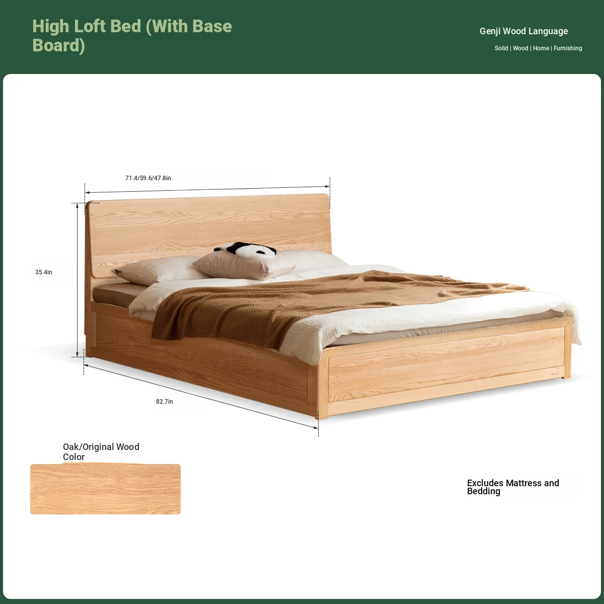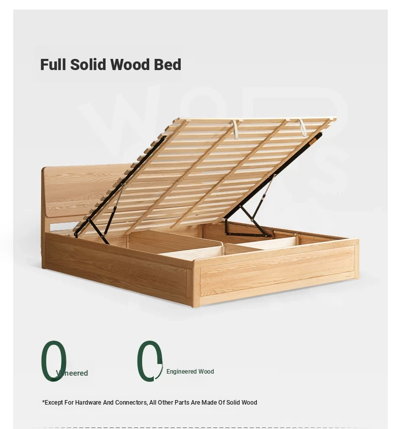 Genji Wood Simple Solid Wood Bed - Minimalist Design for Bedrooms, Double-Sized Natural Oak Storage Bed with Gas Lift Mechanism, Perfect for Home Use